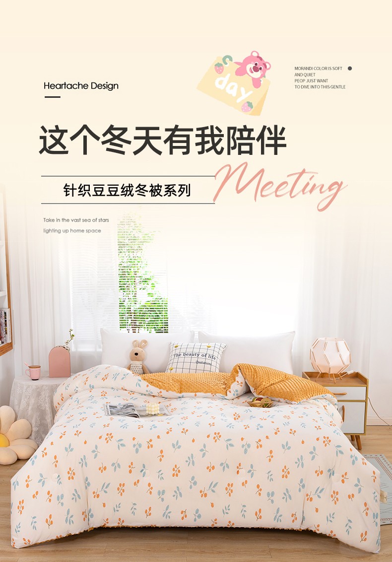 • 91家纺网 家纺一手货源 找家纺 天瑜家纺 2023新款针织豆豆绒冬被 小金果