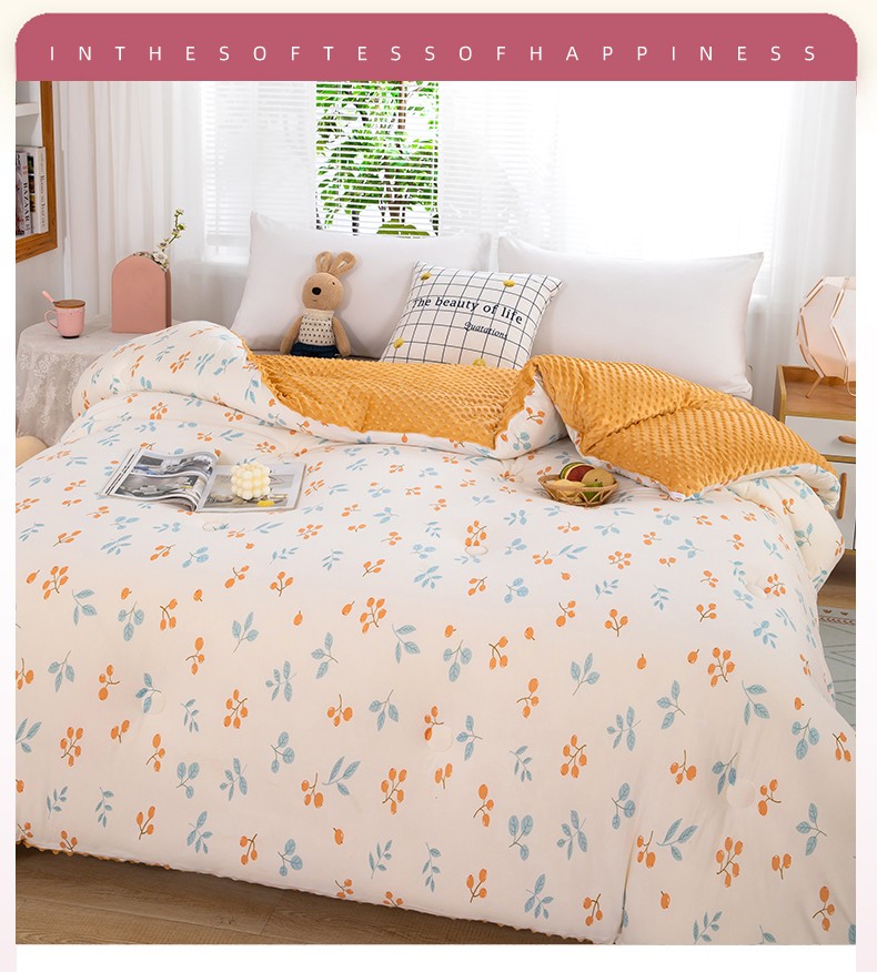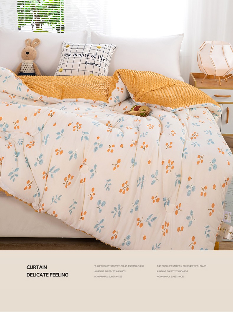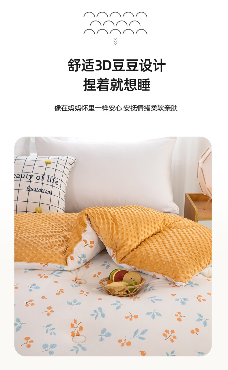 天瑜家纺 2023新款针织豆豆绒冬被 小金果