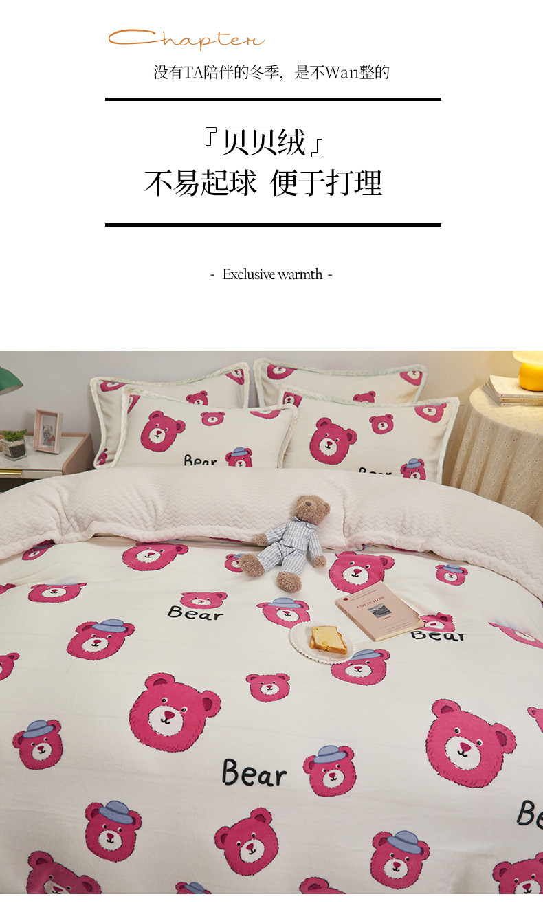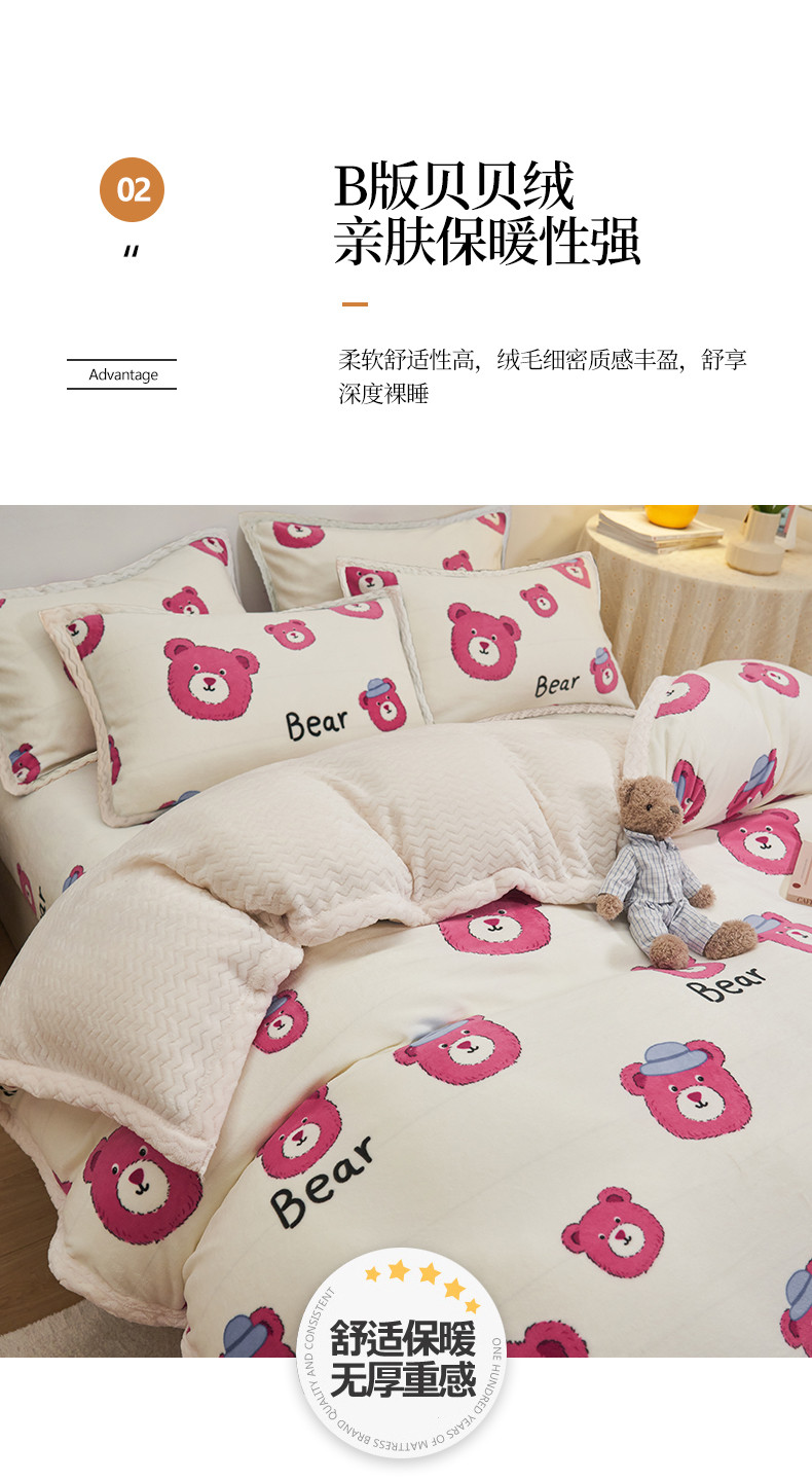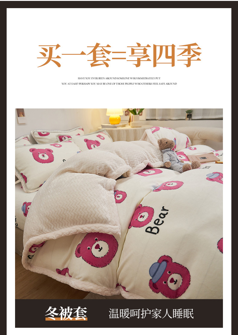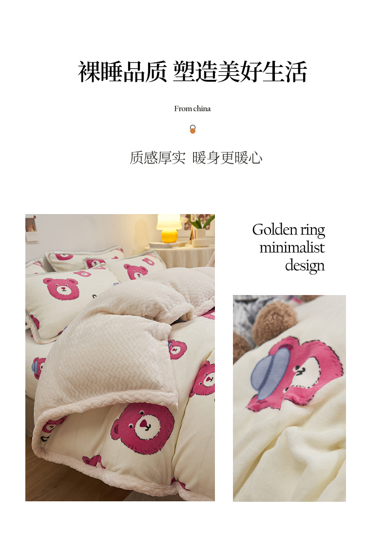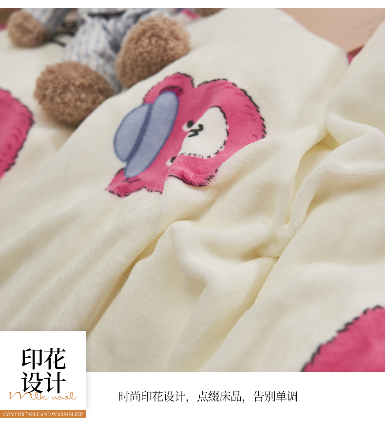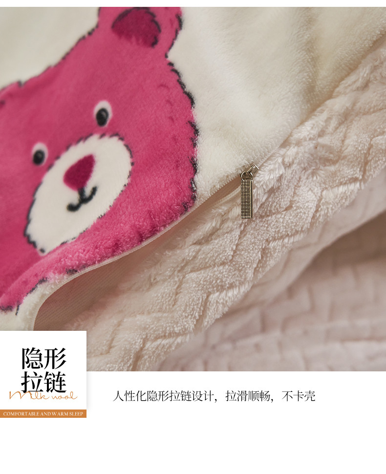 商品名称:全季家居 2023新款纯色印花抗静电大包边牛奶绒贝贝绒单被套 粉熊派