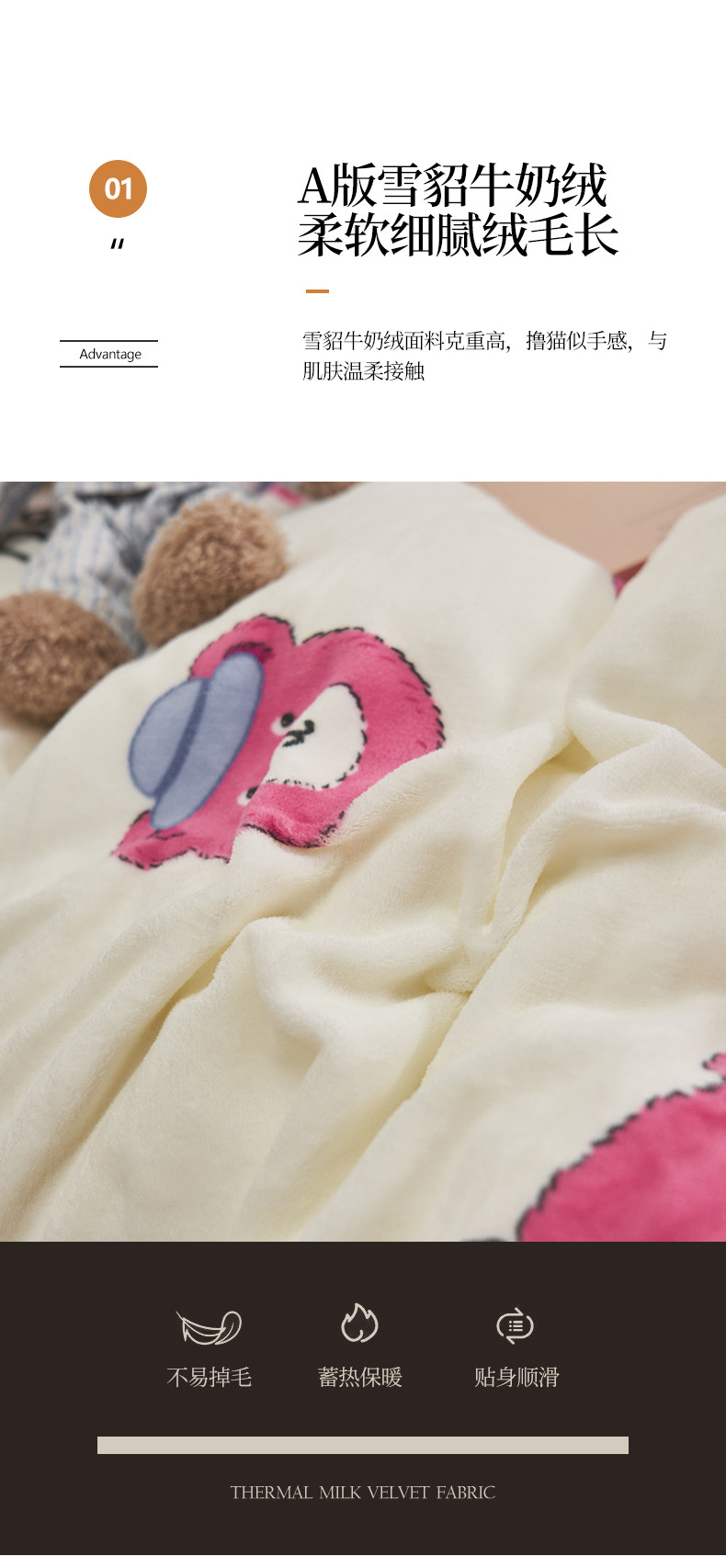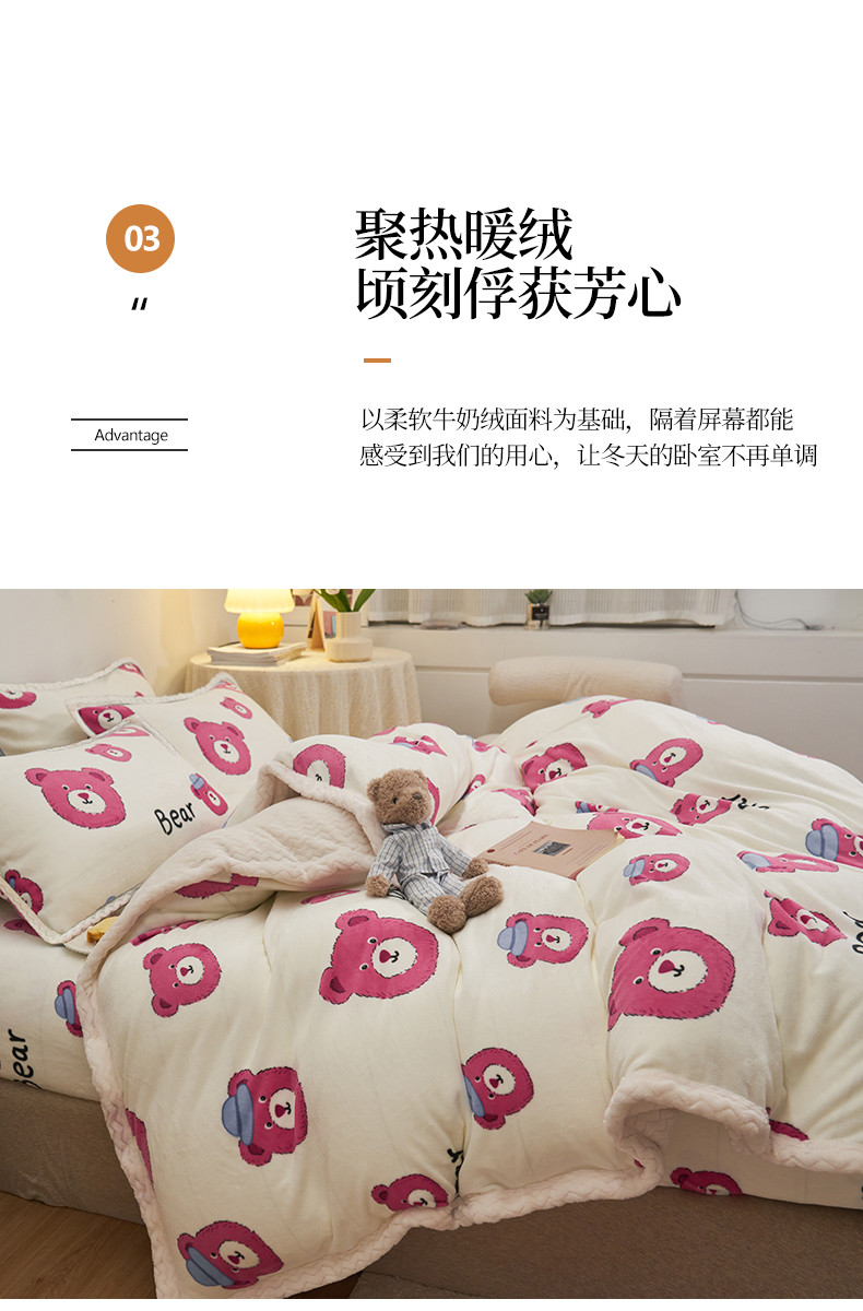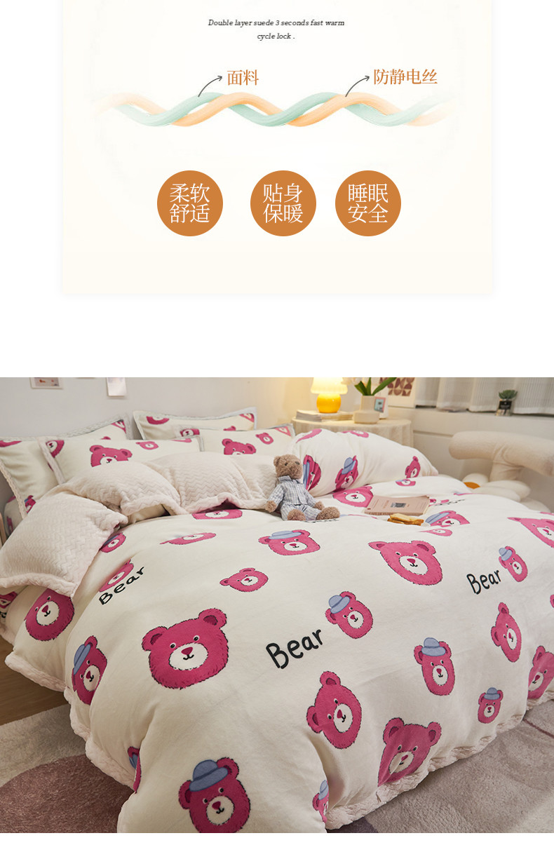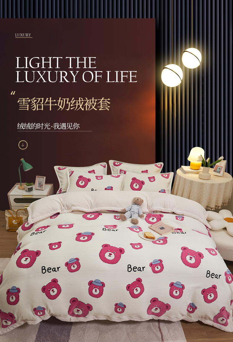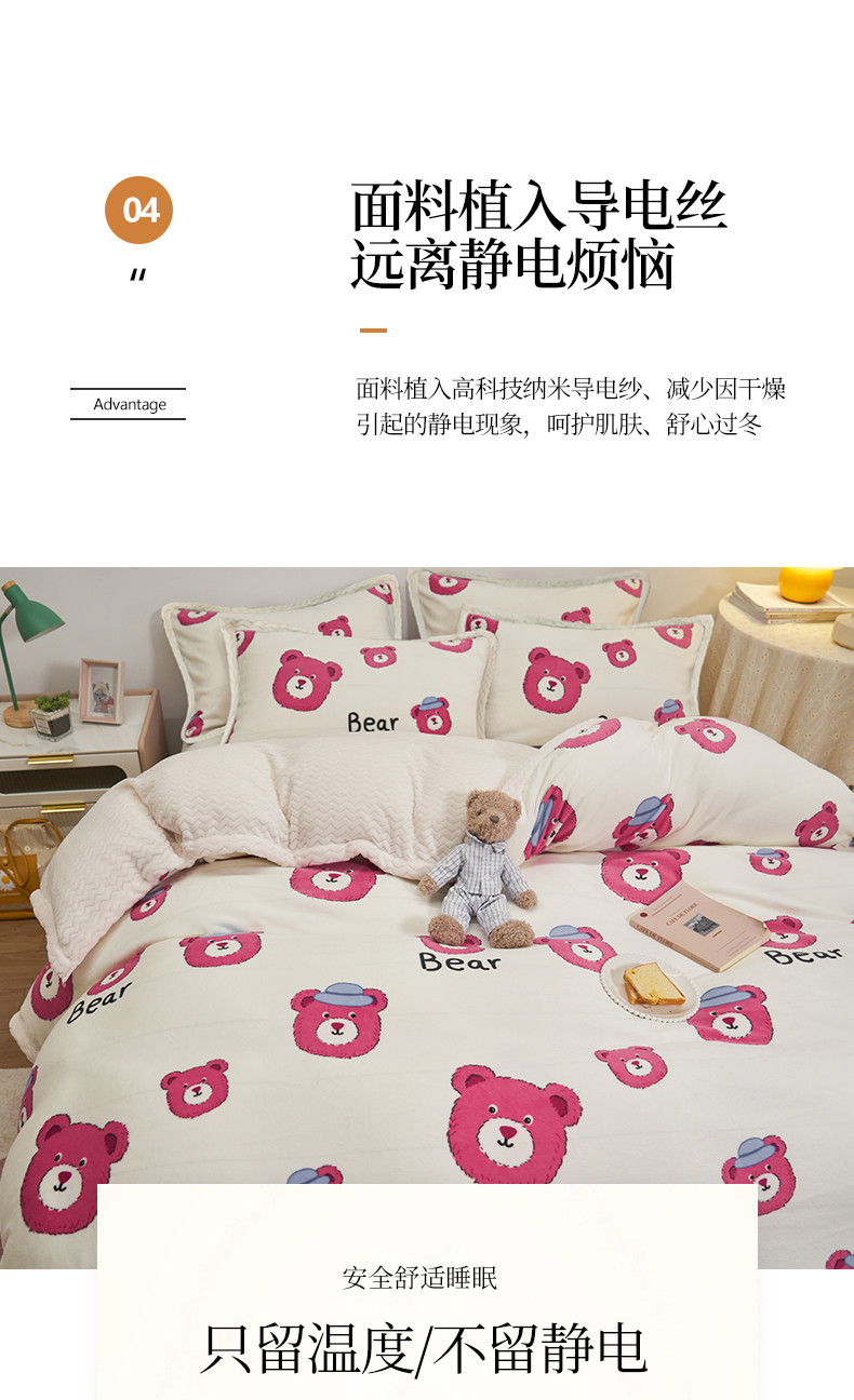 商品名称:全季家居 2023新款纯色印花抗静电大包边牛奶绒贝贝绒单被套 粉熊派