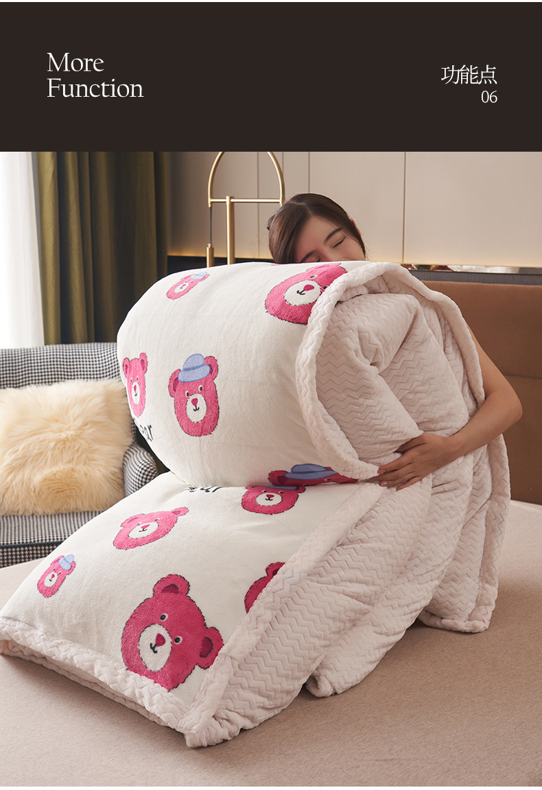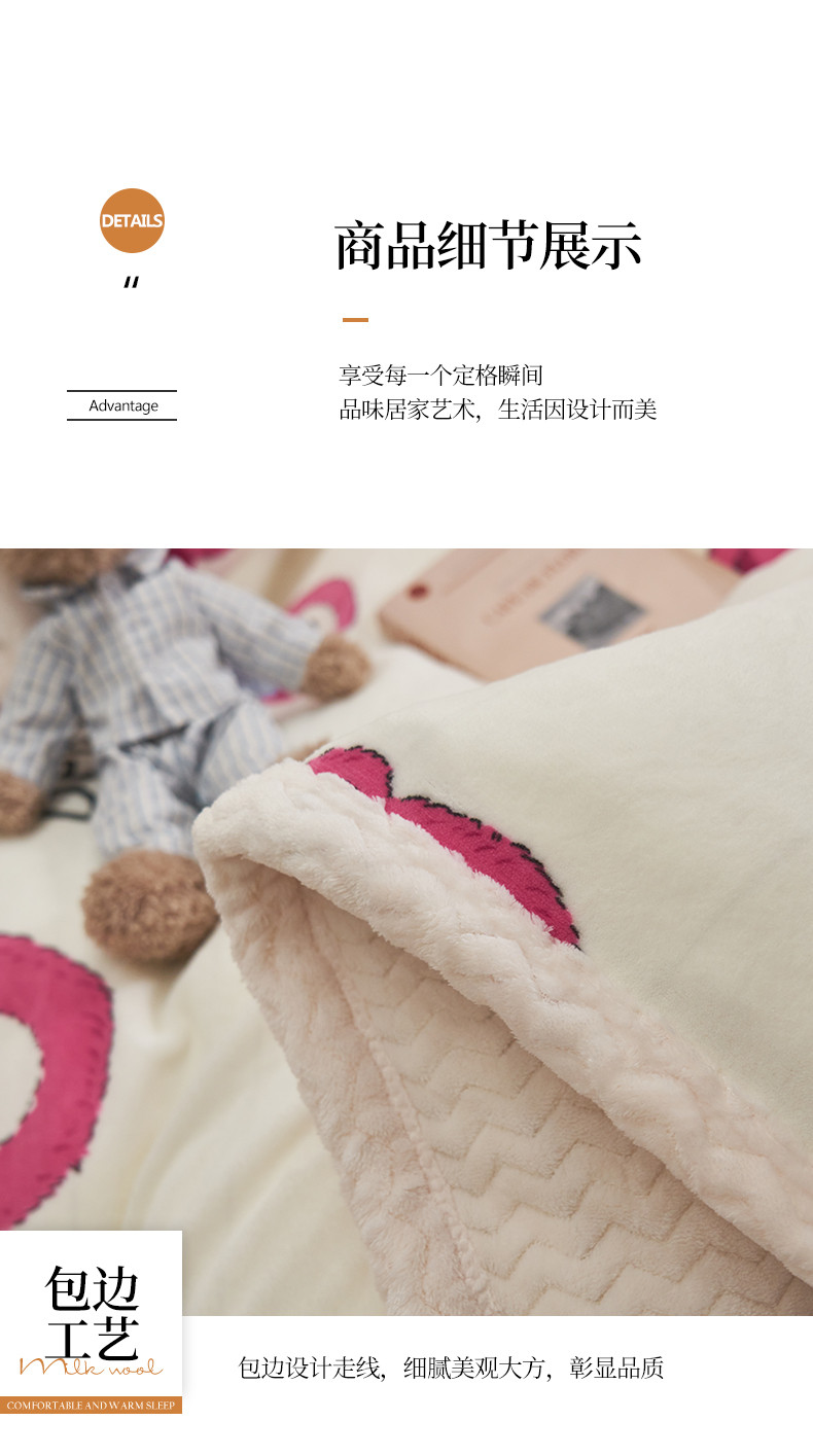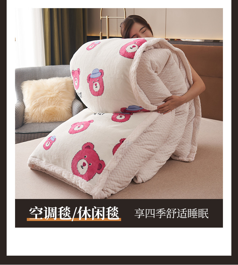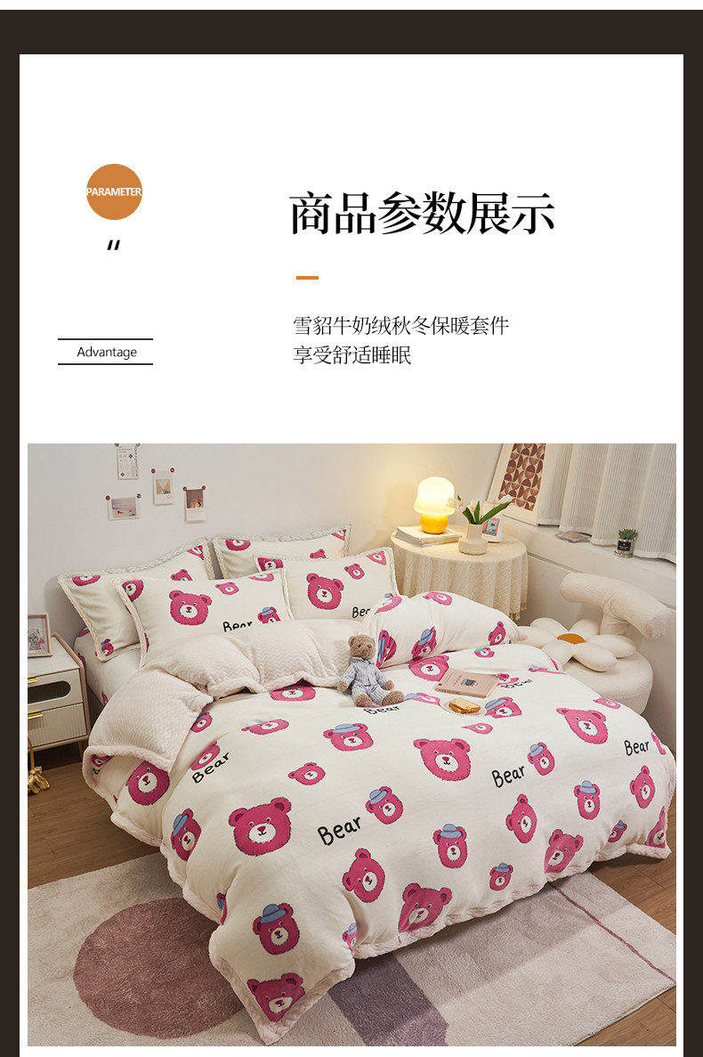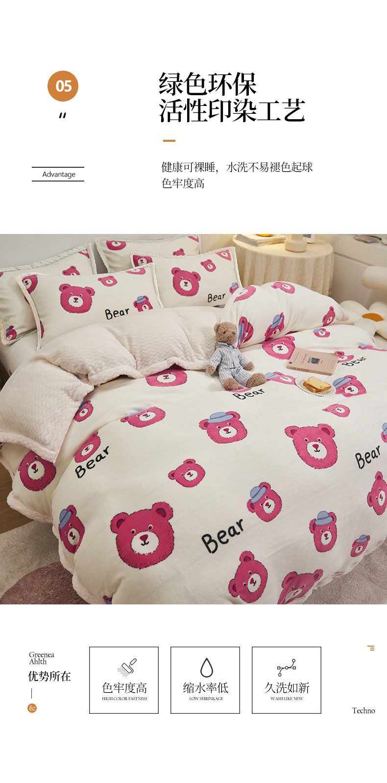 商品名称:全季家居 2023新款纯色印花抗静电大包边牛奶绒贝贝绒单被套 粉熊派