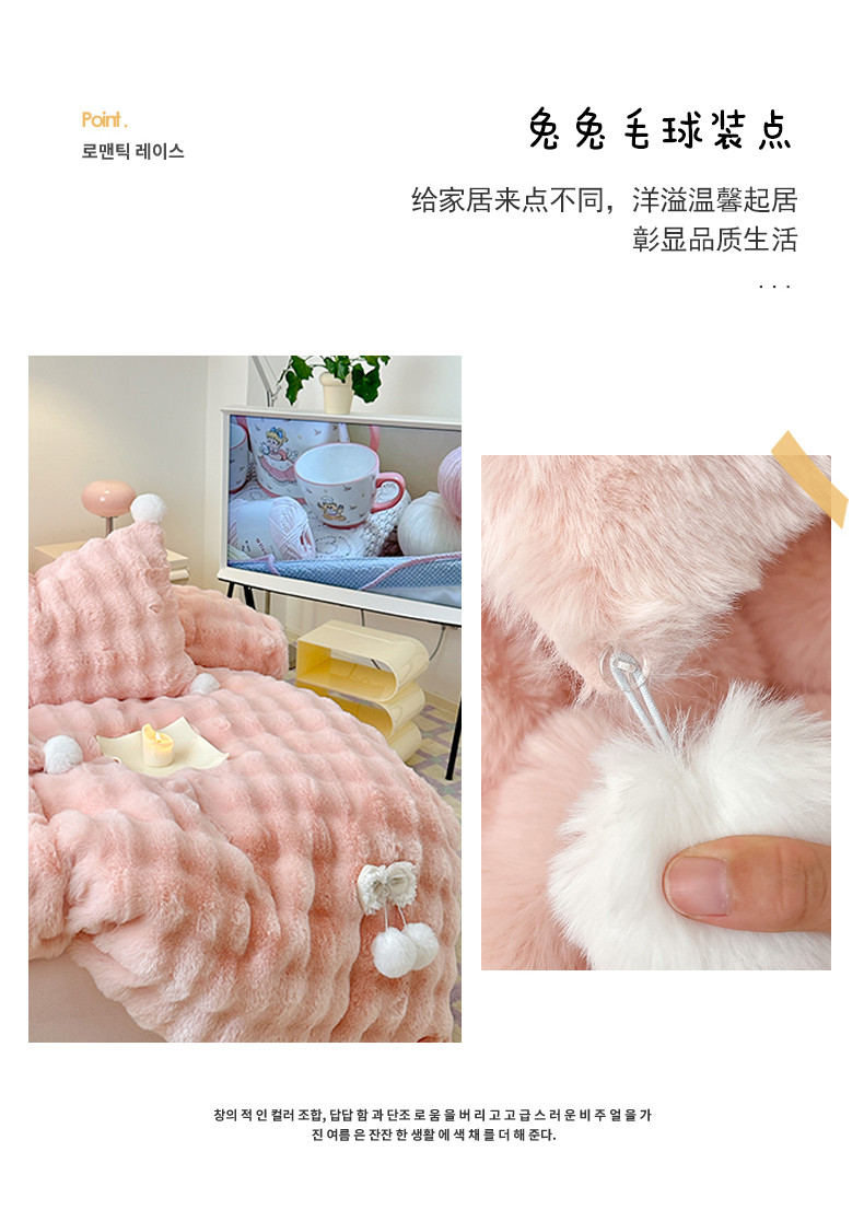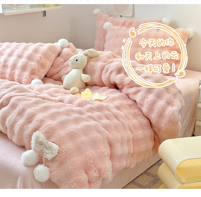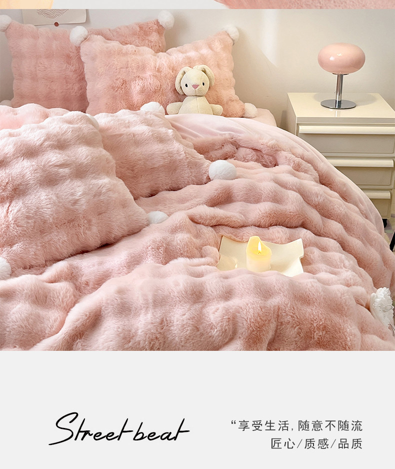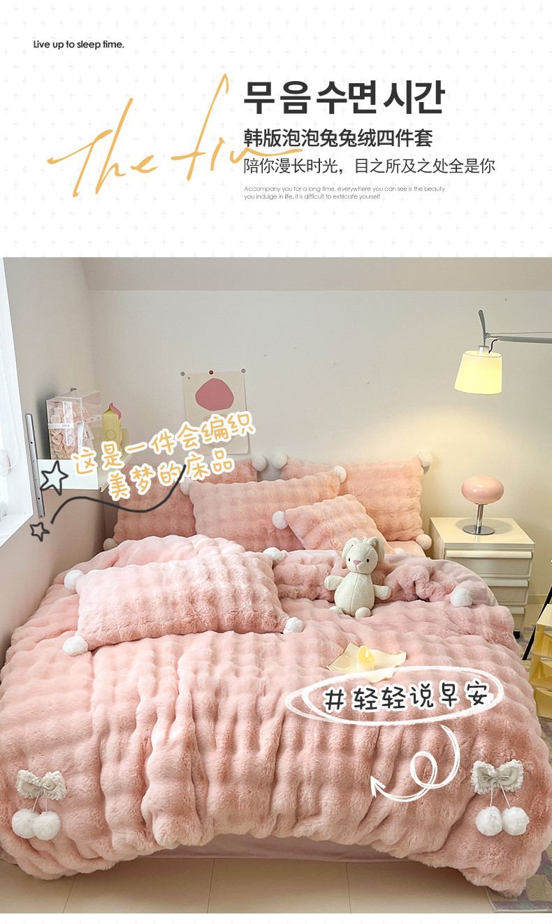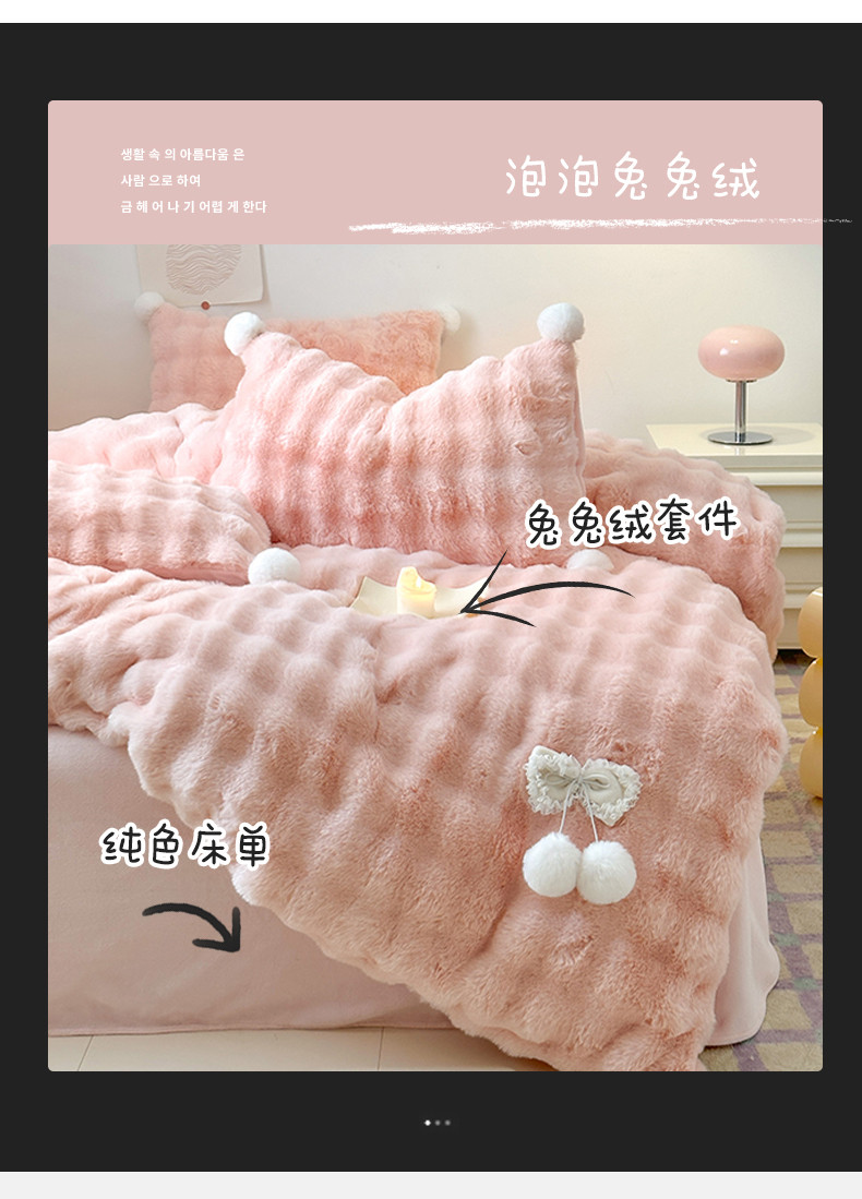 当前位置: 91家纺网 > 商品网购 > 床品套件 > 四件套 > 兔毛绒四件套 > 婳庭家居 2023新款泡泡糖兔绒系列四件套 泡泡糖-粉