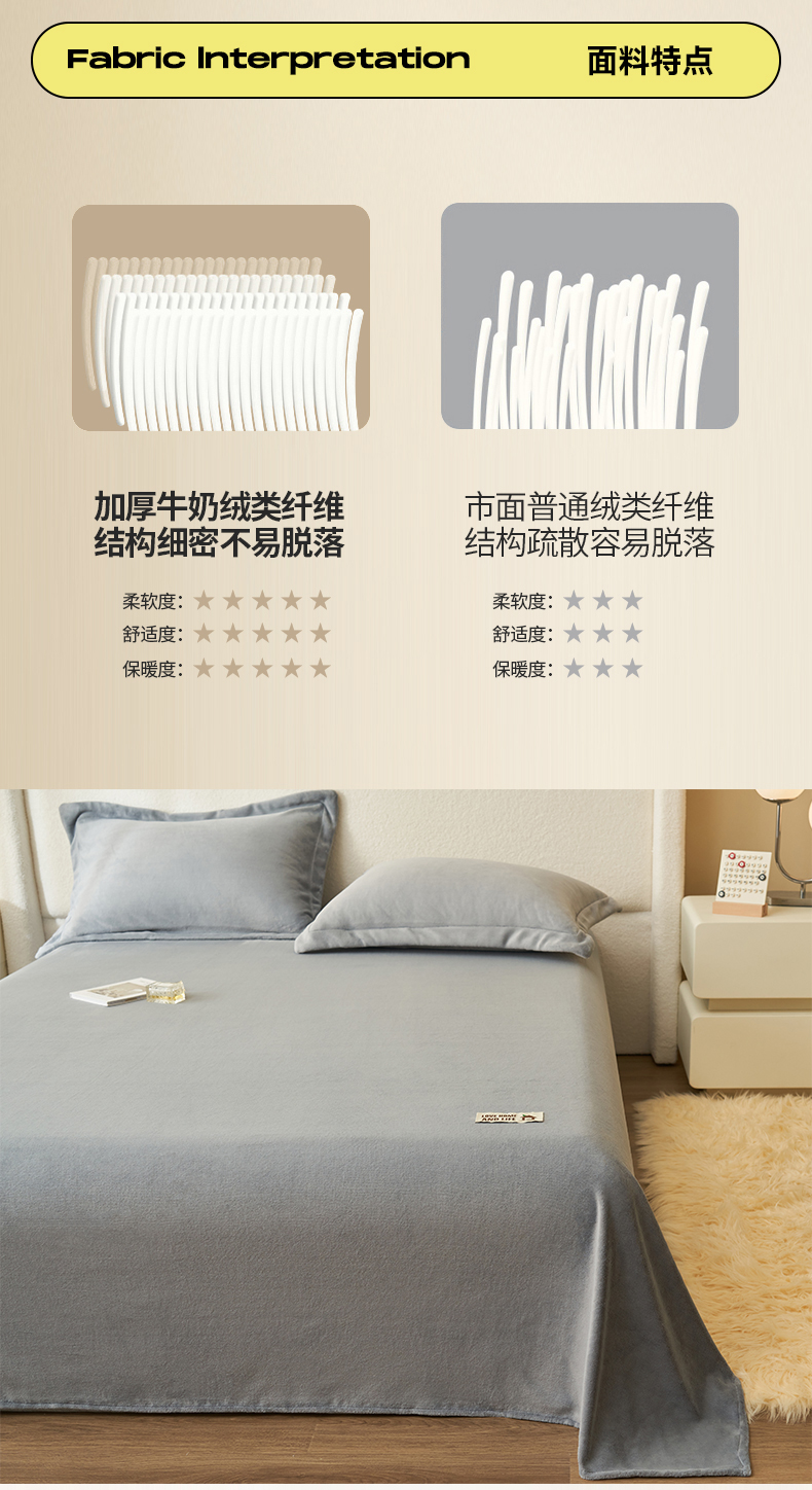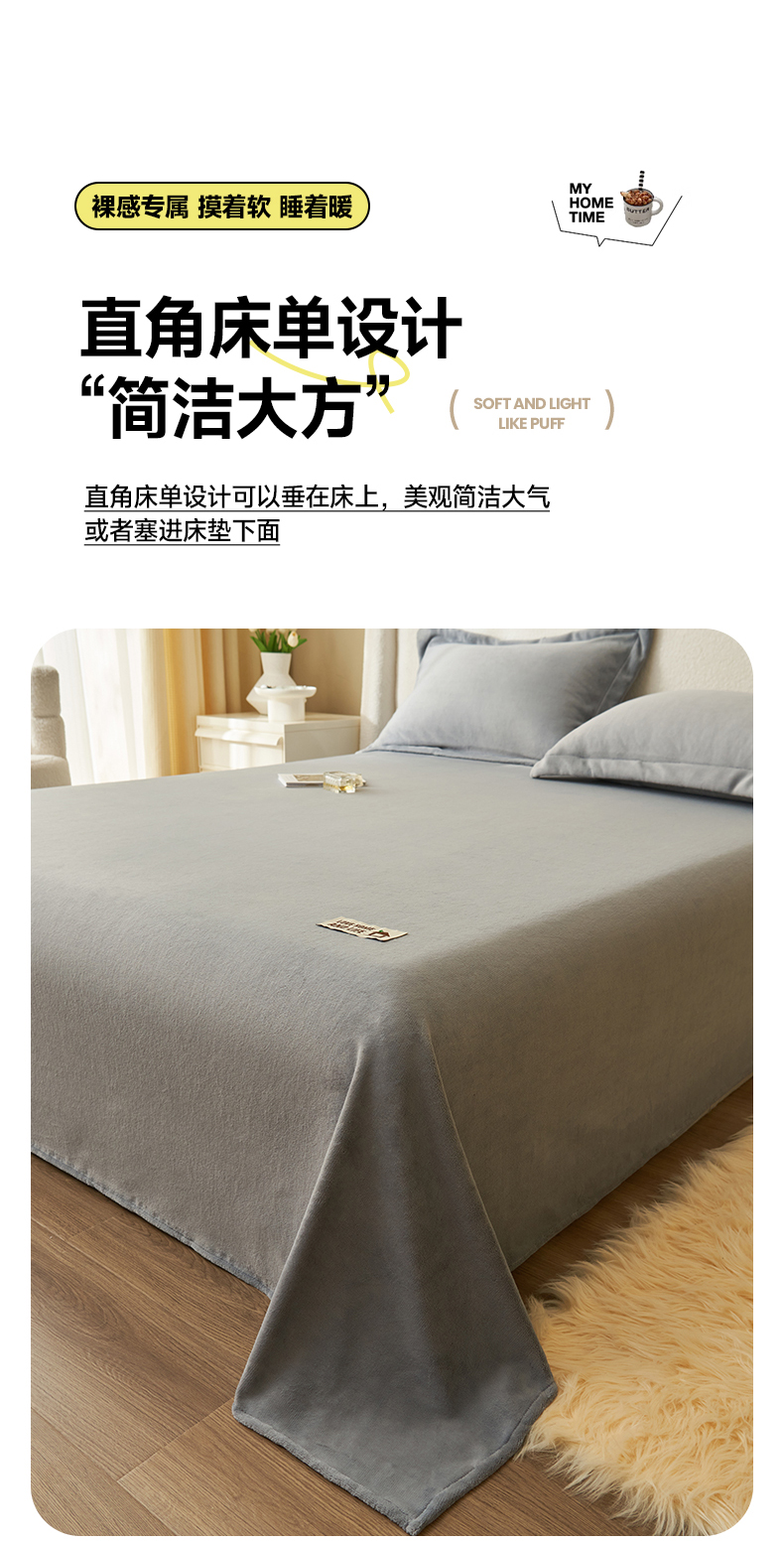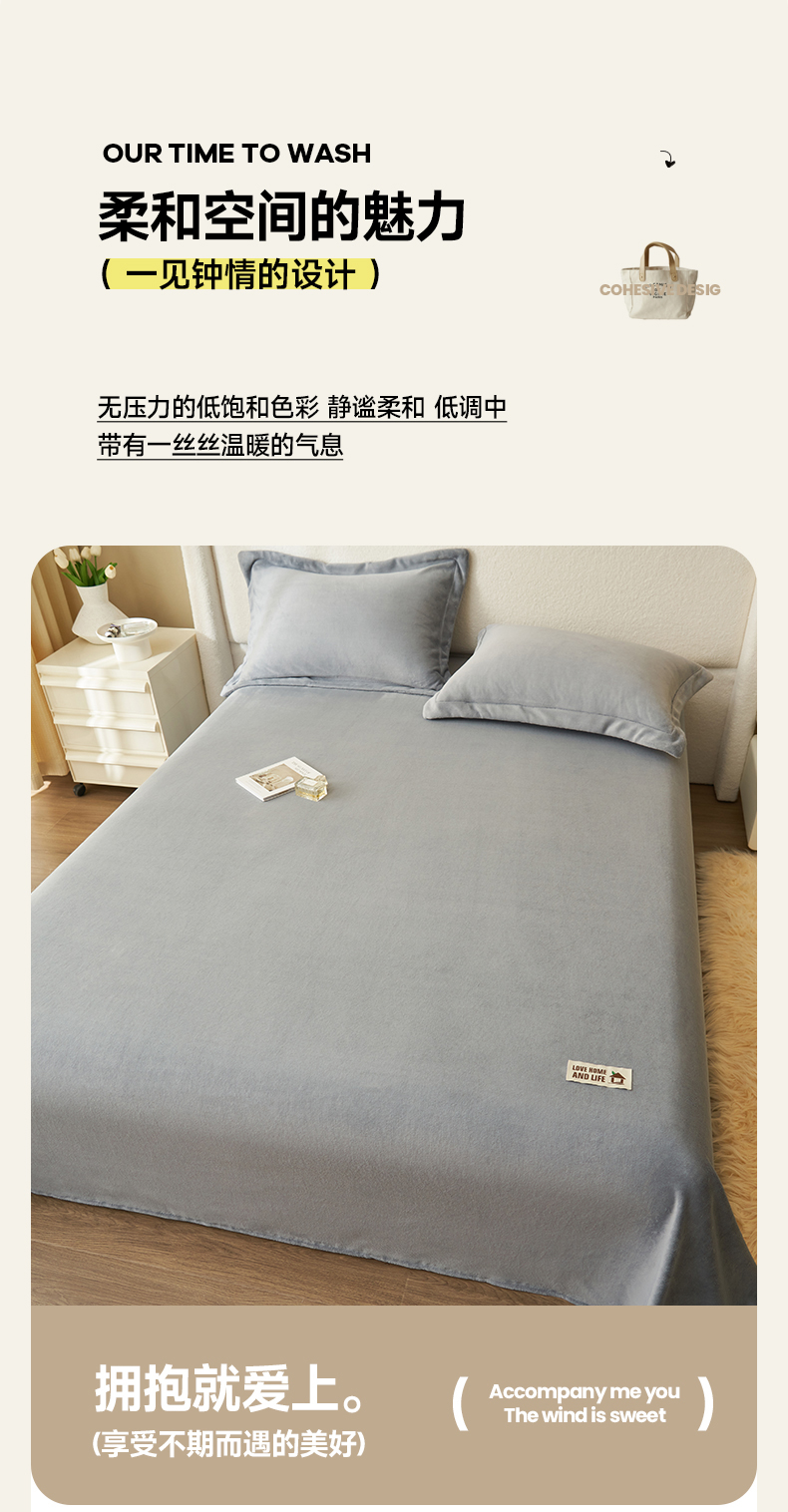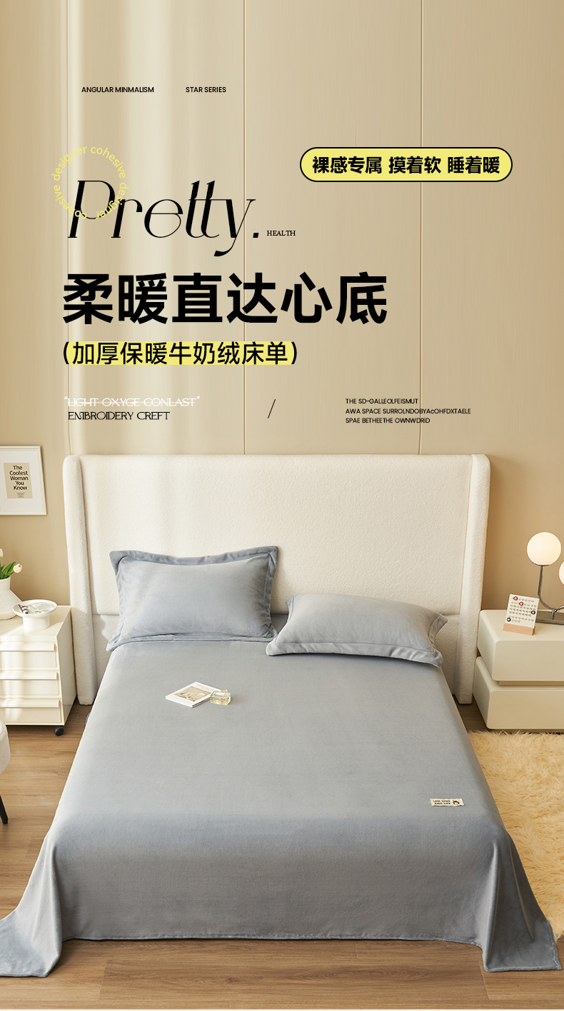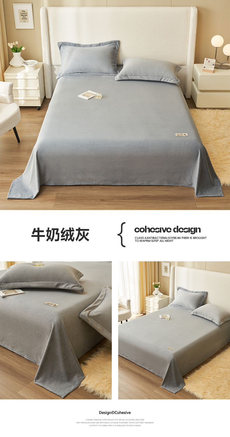 • 91家纺网 家纺一手货源 找家纺 艾佳 2025新款高克重加厚保暖牛奶绒床单 牛奶绒灰