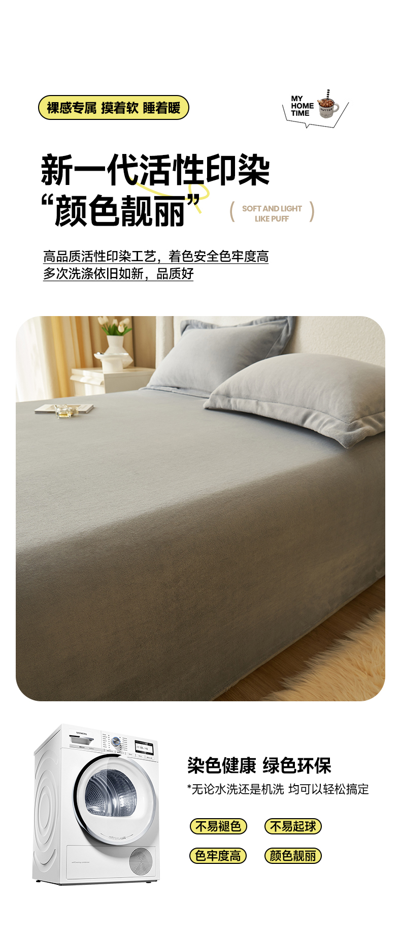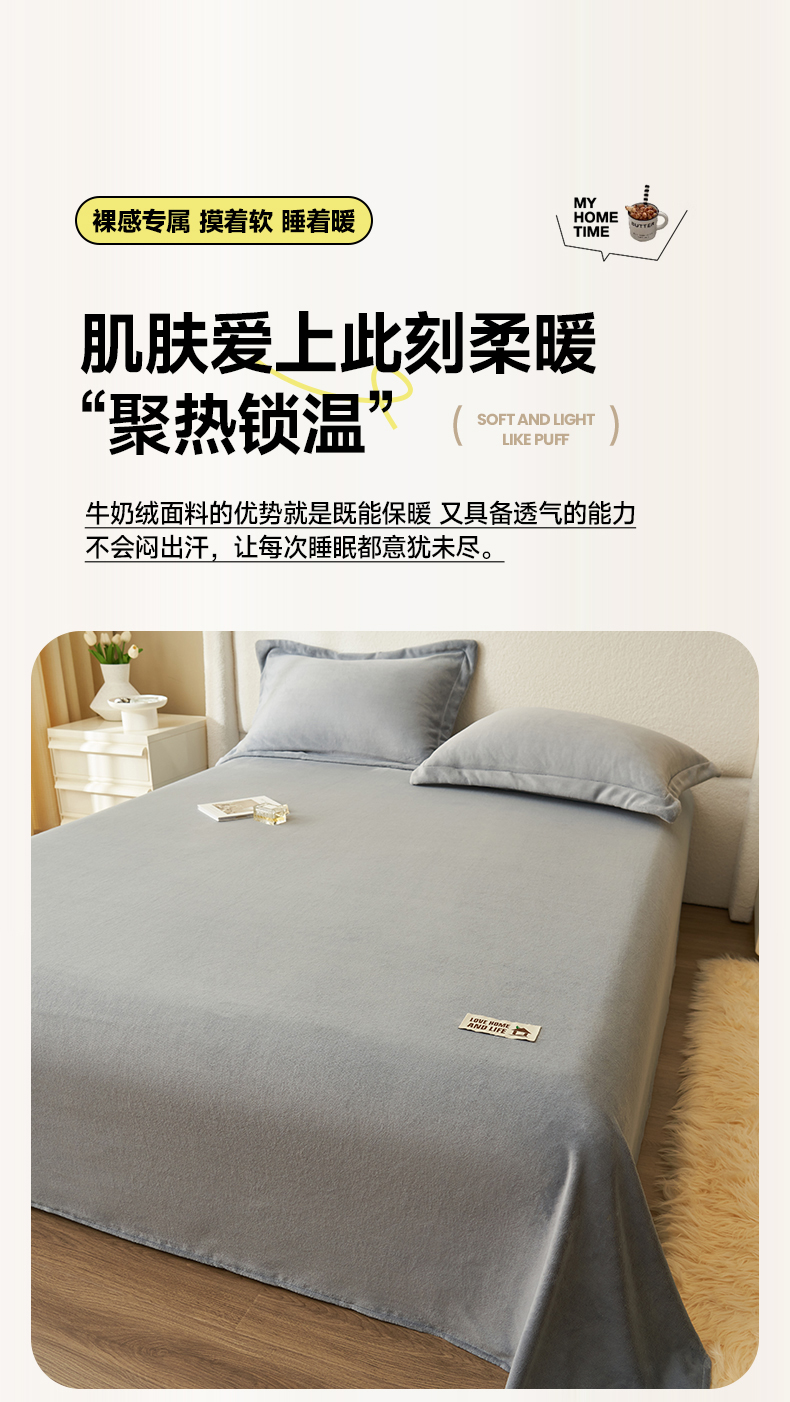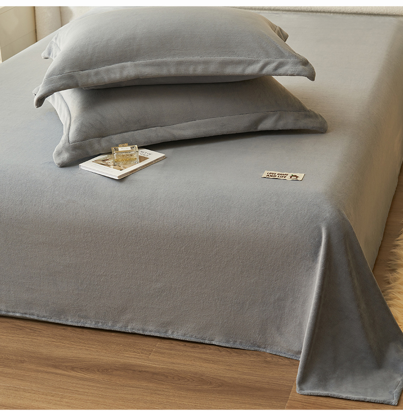 艾佳 2025新款高克重加厚保暖牛奶绒床单 牛奶绒灰