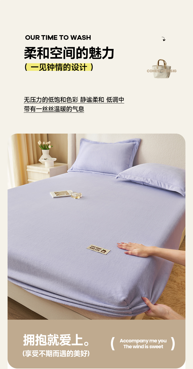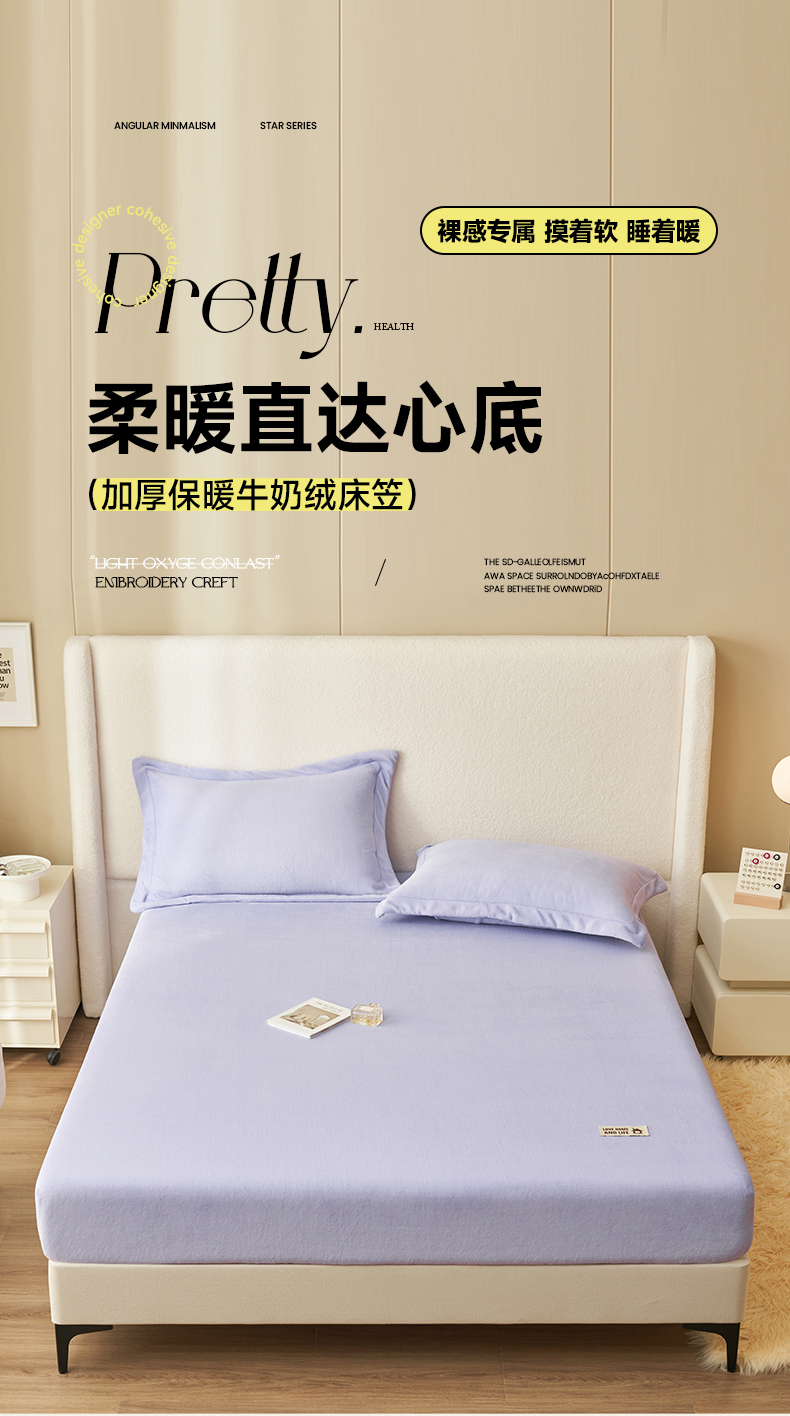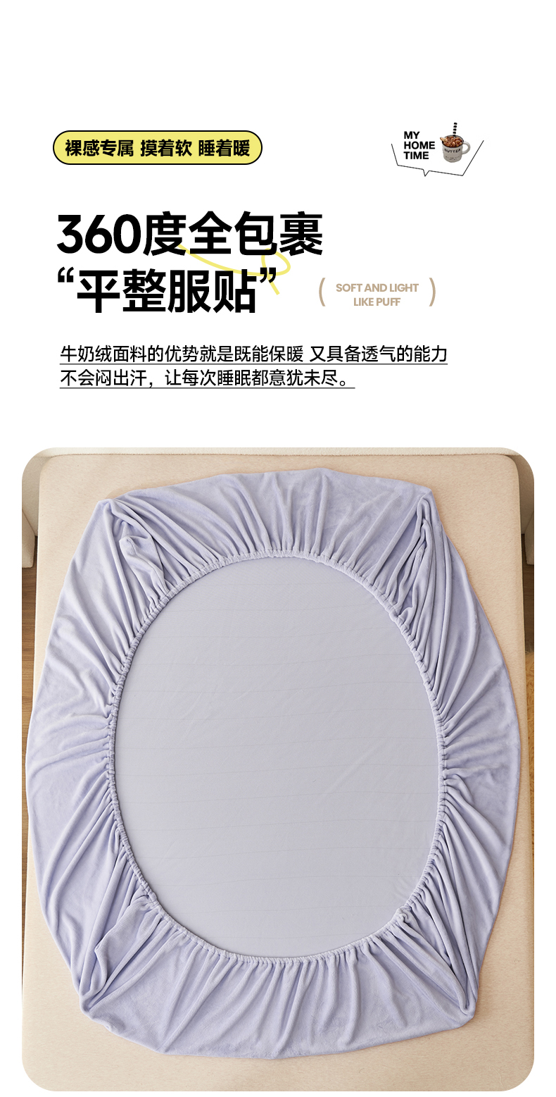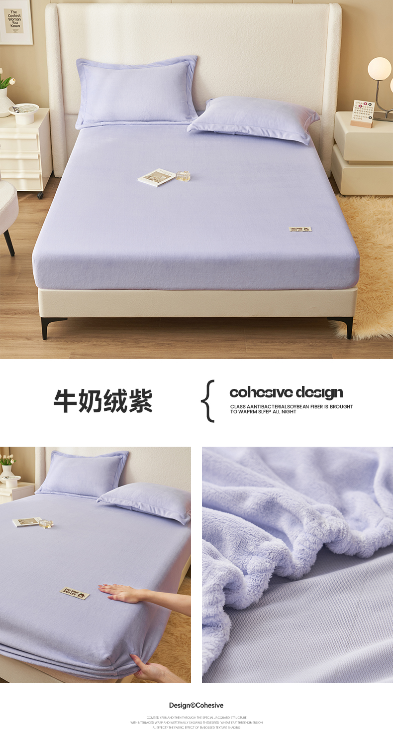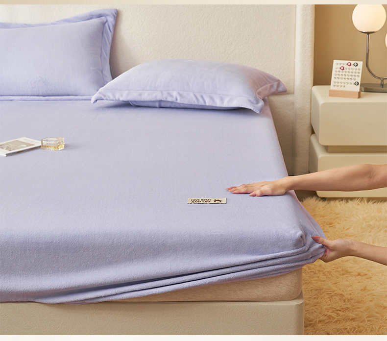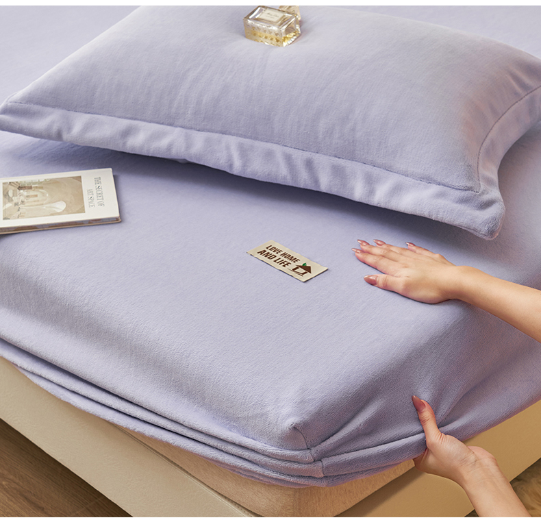 • 91家纺网 家纺一手货源 找家纺 艾佳 2025新款高克重加厚保暖牛奶绒床笠 牛奶绒紫
