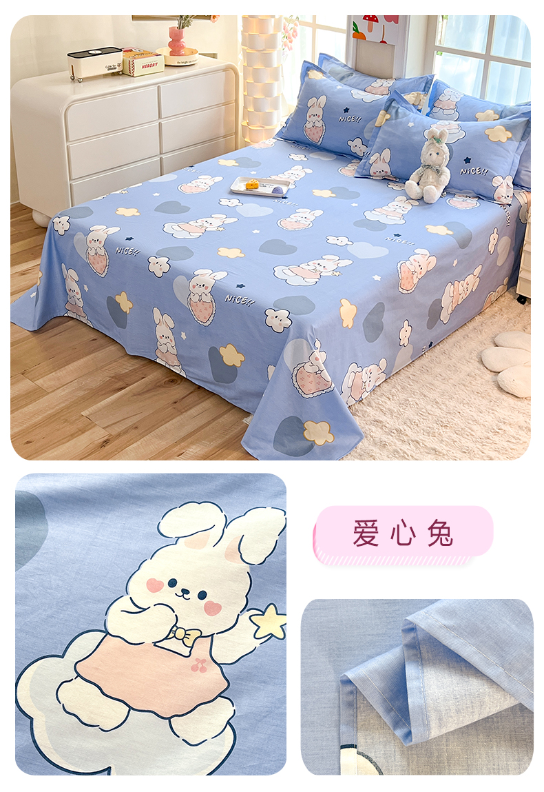 商品名称:八十八家纺2025新款全棉12868系列四件套单品床单爱心兔