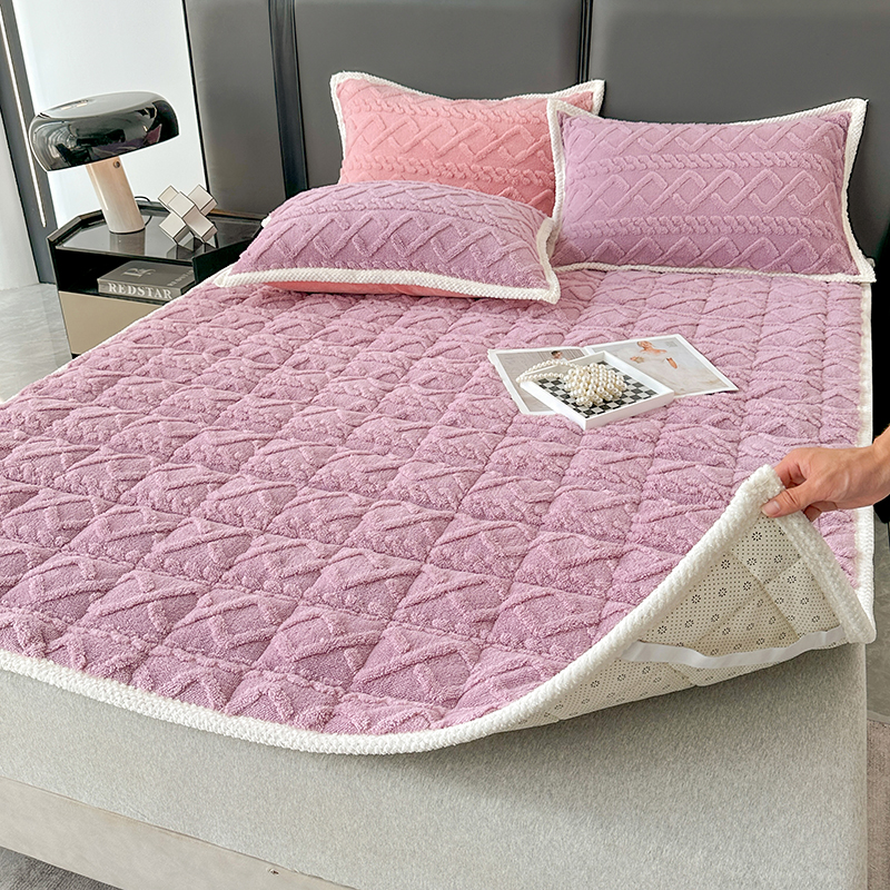 纽缦家纺 2023新款纯色兔兔绒塔芙绒夹棉床垫 古典紫