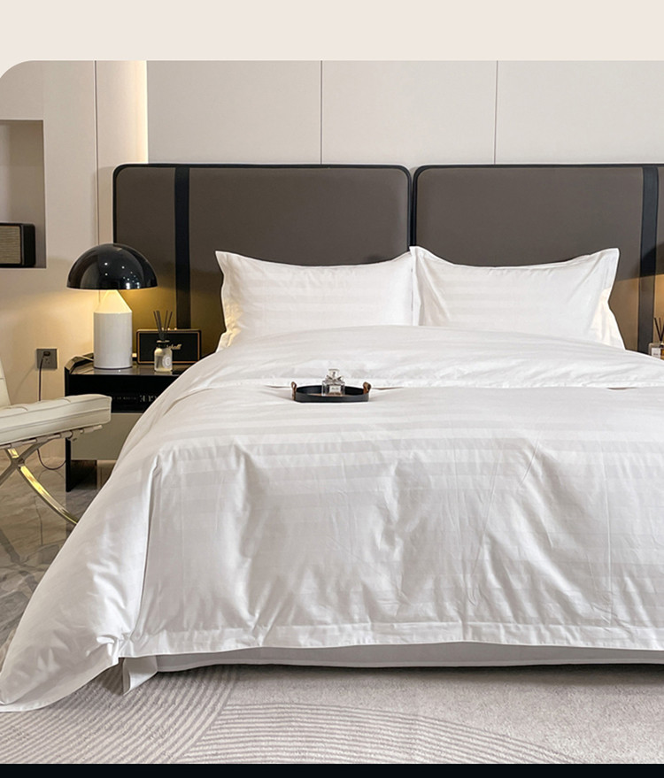 当前位置: 91家纺网 > 商品网购 > 床品套件 > 四件套 > 全棉普通四件套 > 罗菲尼 2025新款星级酒店缎条四件套白色缎条