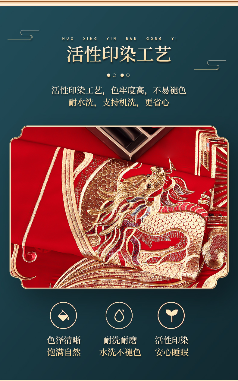 (总)皇潮婚庆馆 新款新疆长绒棉高端婚庆刺绣四件套,龙凤合玺,祥龙禧凤