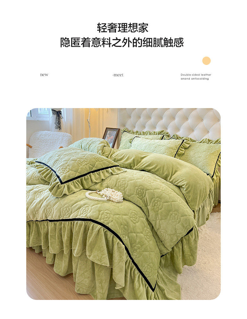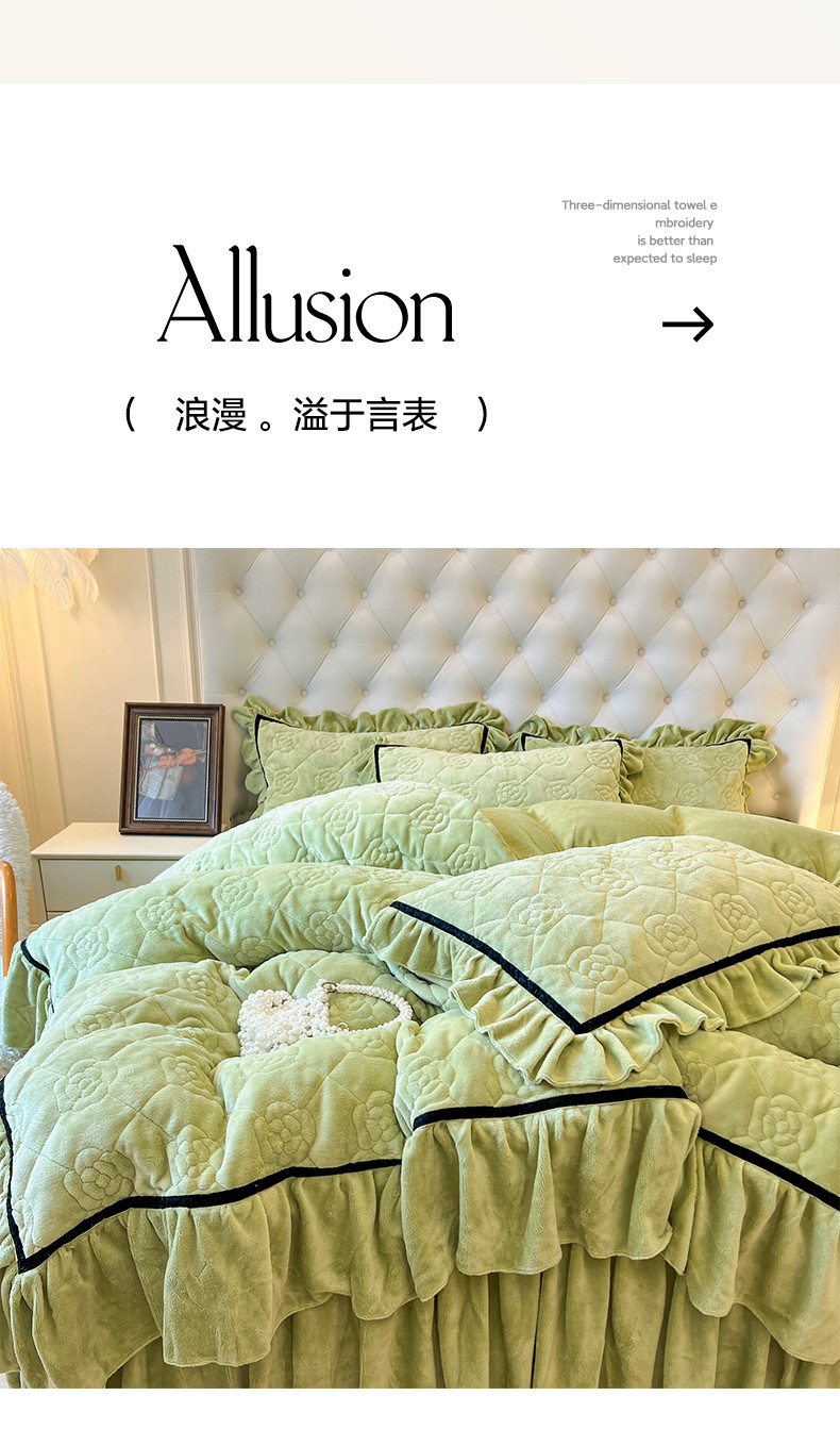 (总)网红馆(ck家纺) 2025新款牛奶绒花边床盖四件套-甜蜜蜜,甜蜜蜜-粉,甜蜜蜜-咖,甜蜜蜜-绿,甜蜜蜜-米,甜蜜蜜-紫