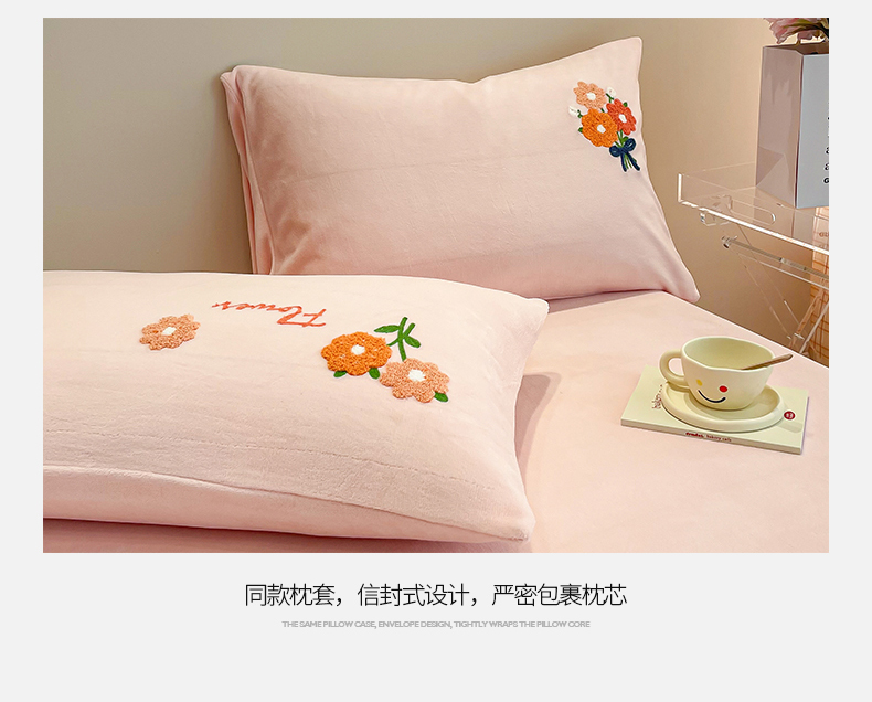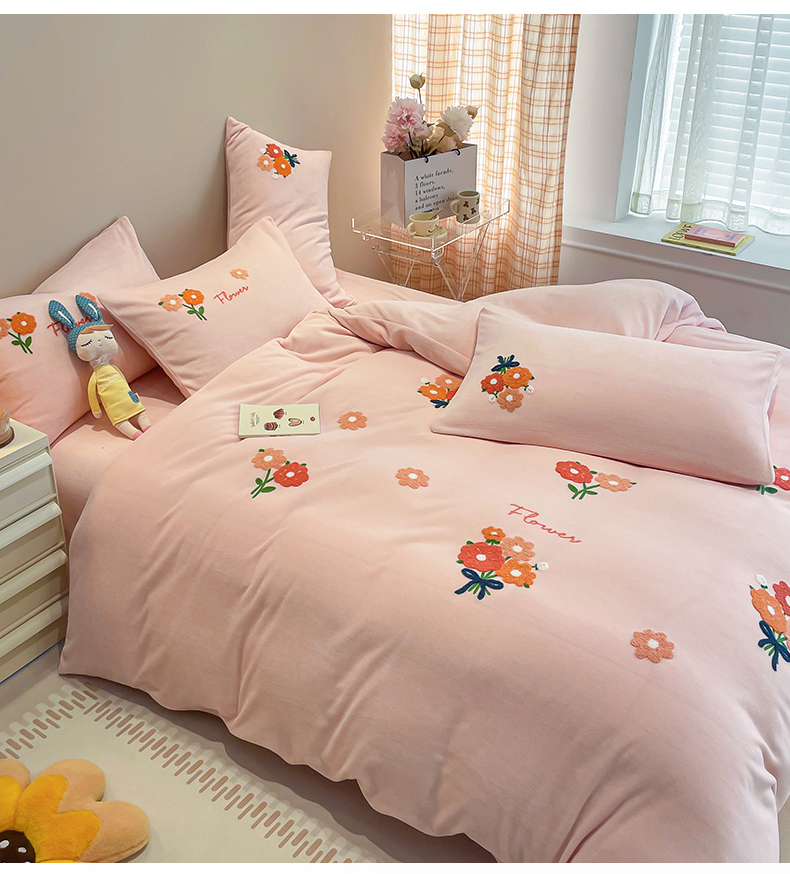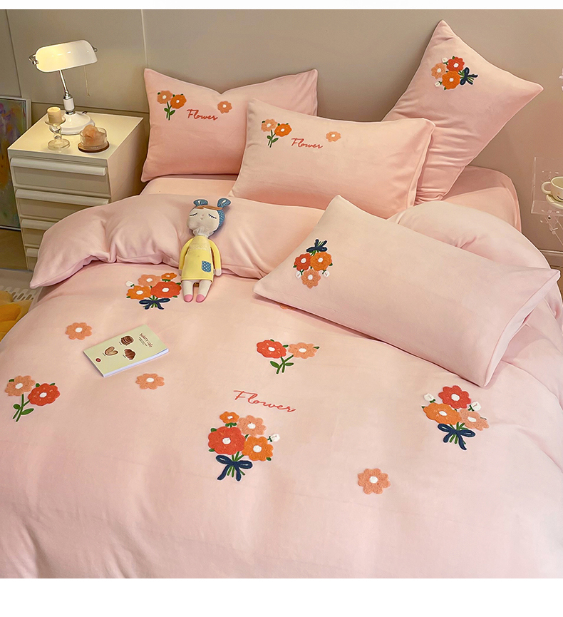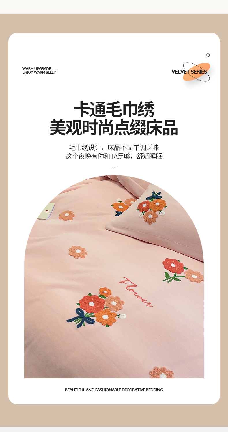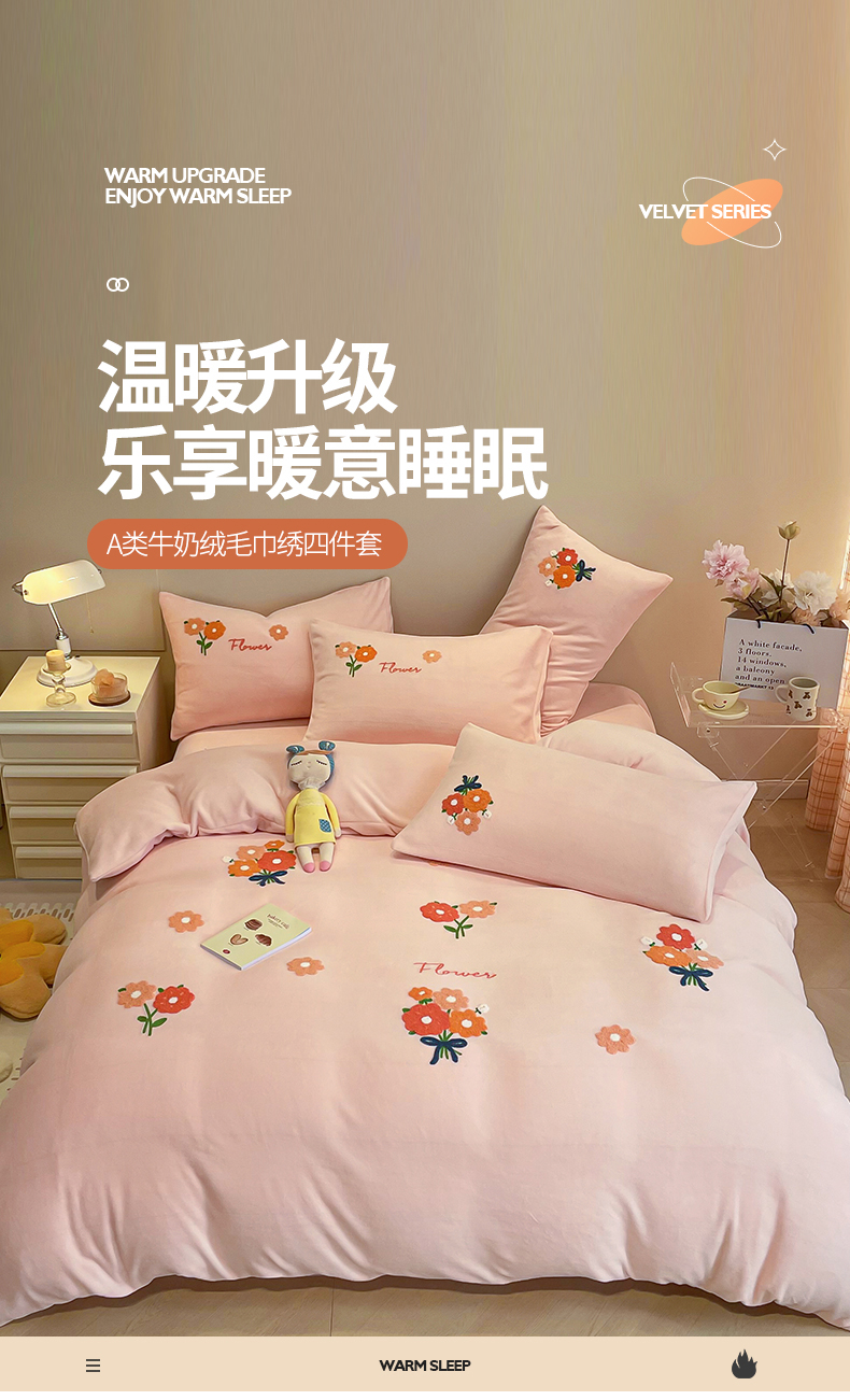 商品名称:懒猫家纺 2024新款牛奶绒毛巾绣四件套 手捧花