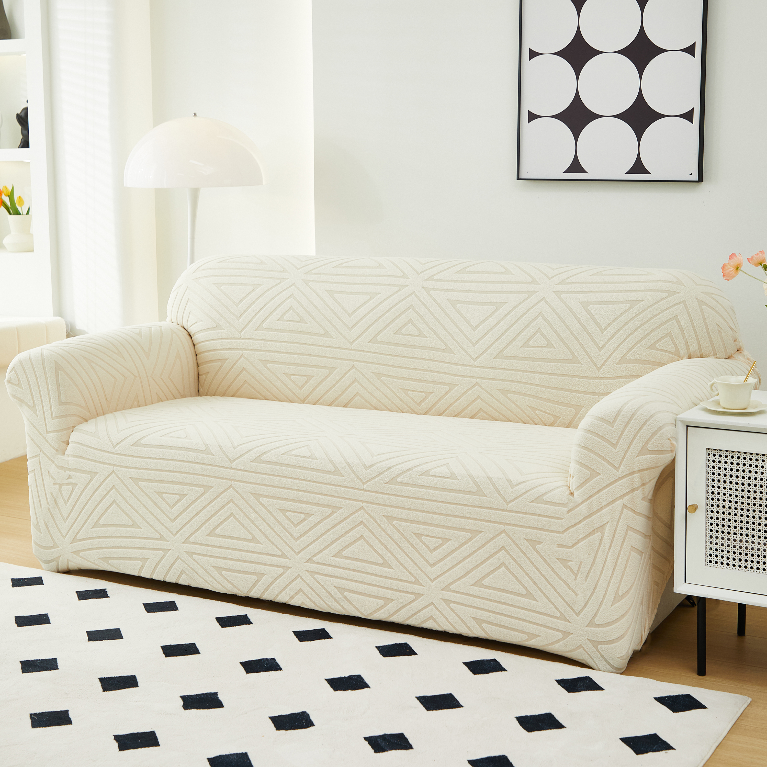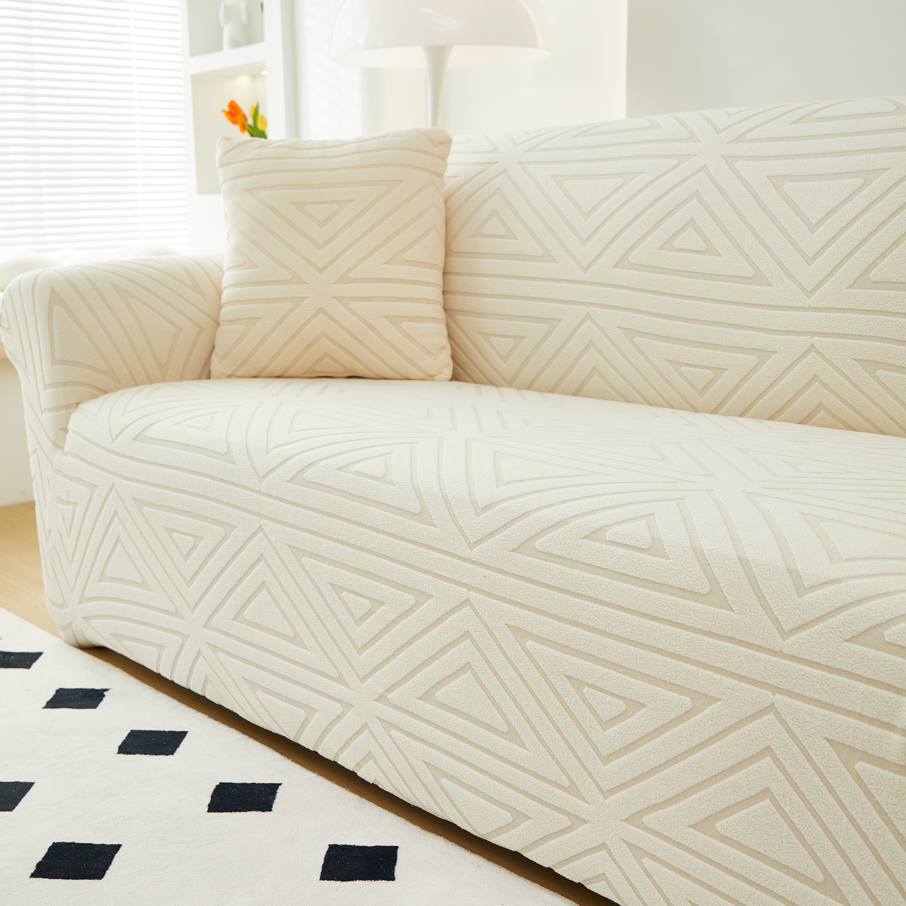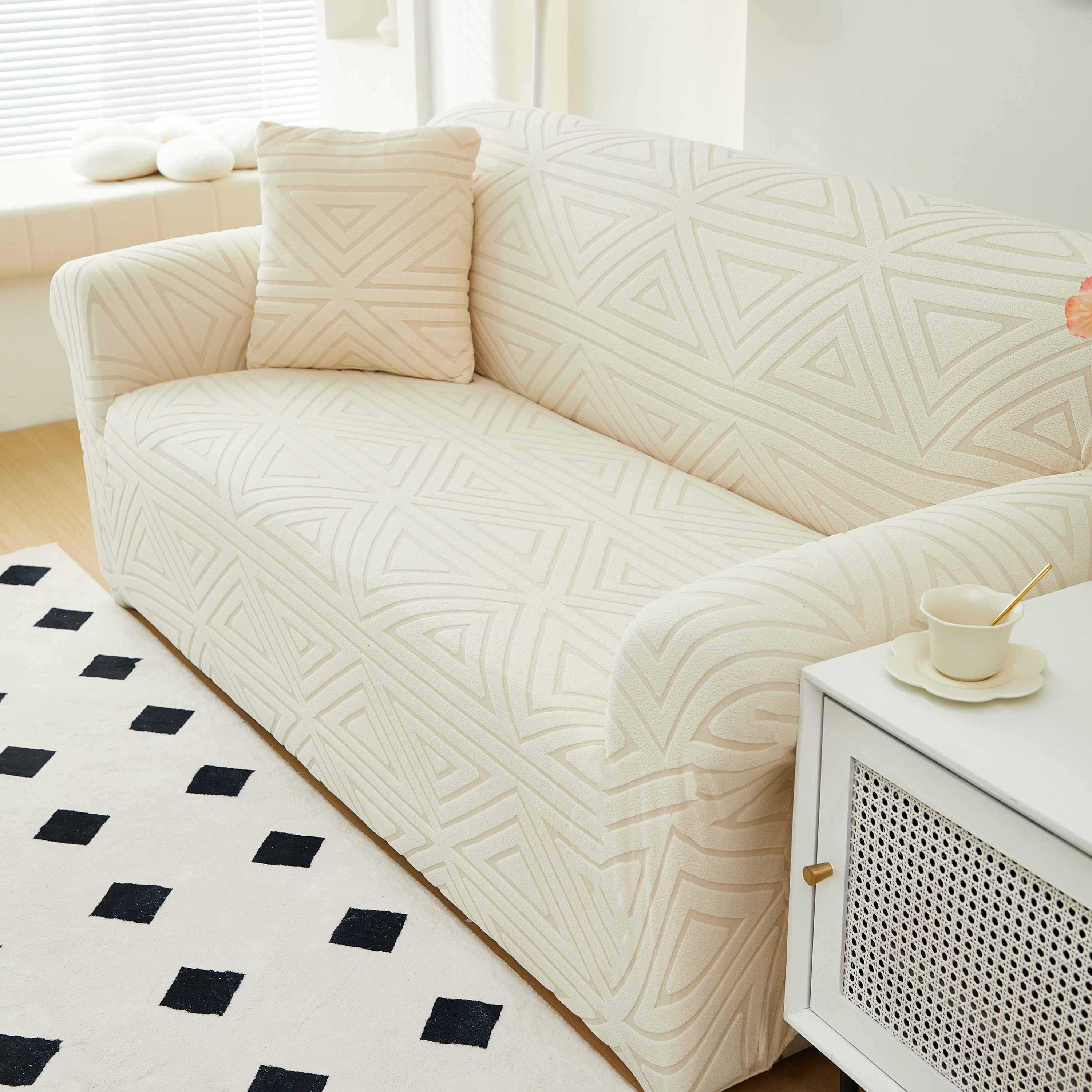 商品名称:逐日沙发套 2023新款提花沙发套-双角 双角-米黄色