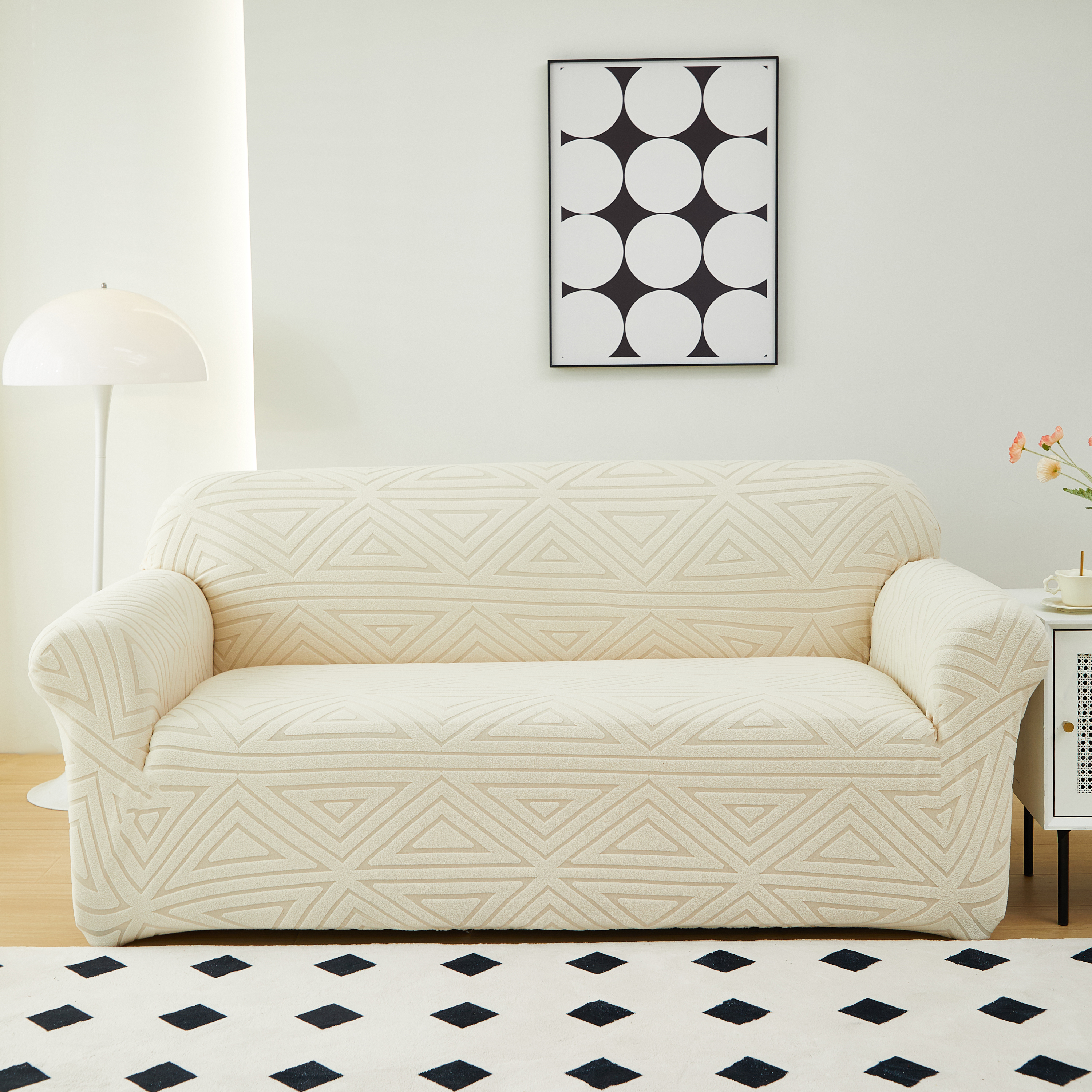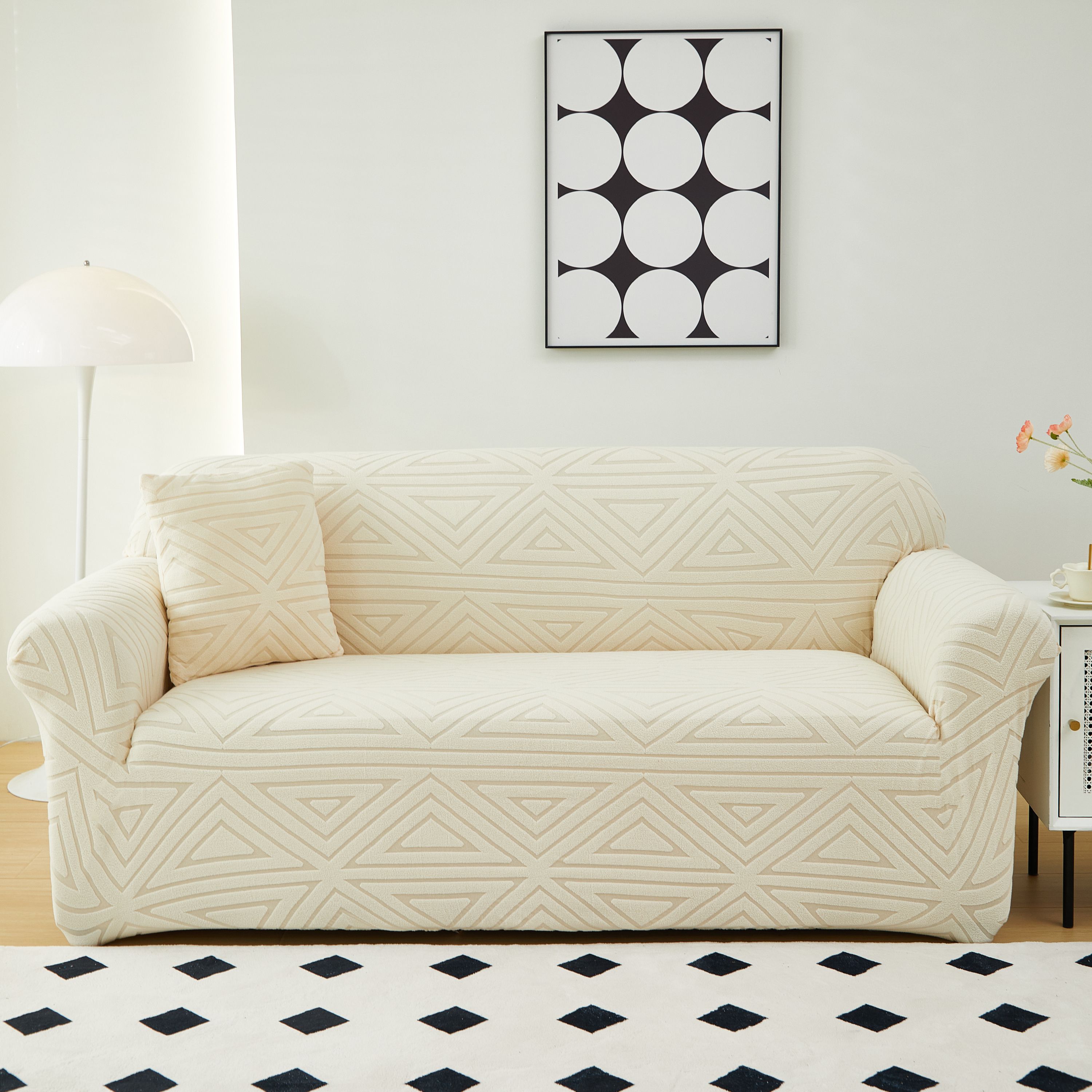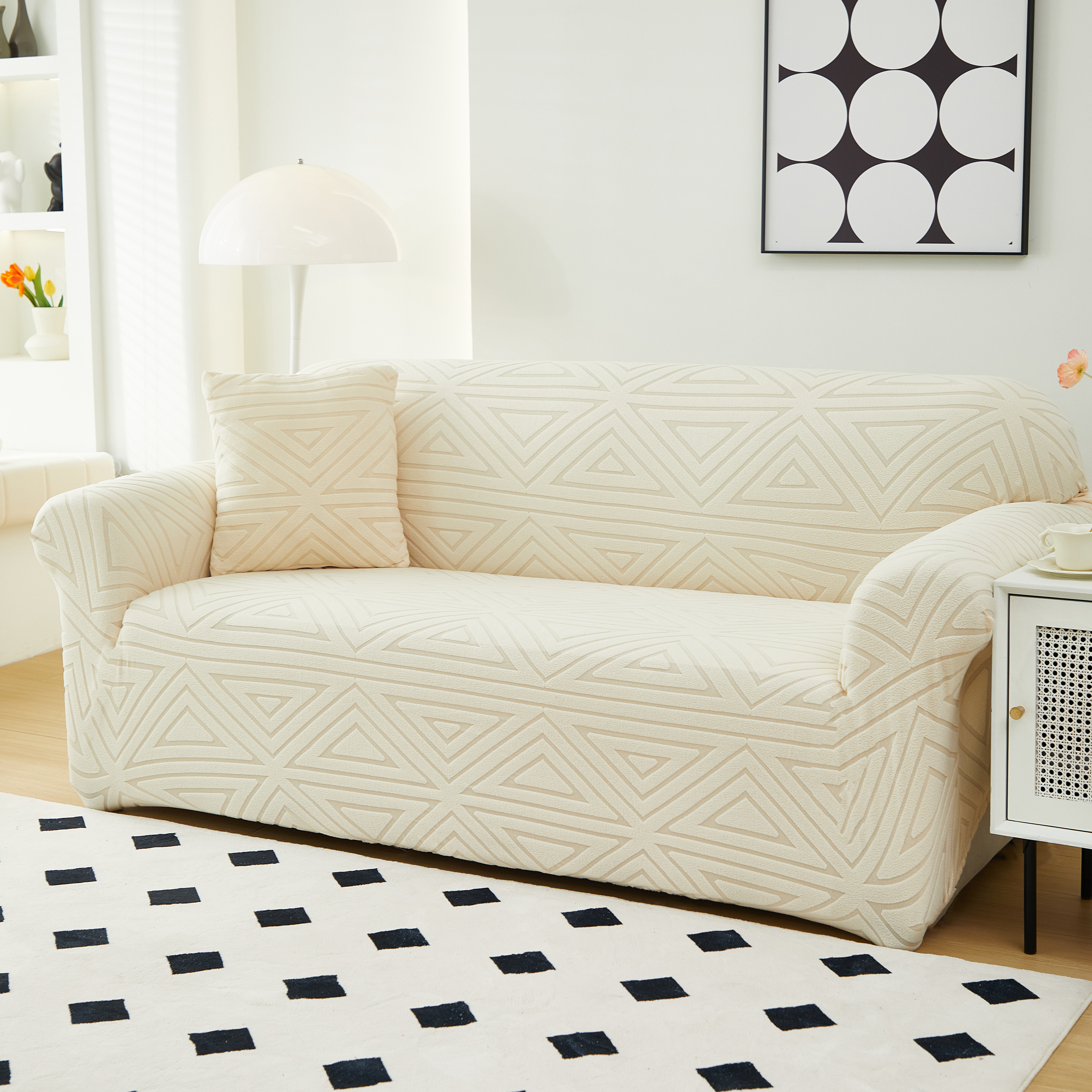 商品名称:逐日沙发套 2023新款提花沙发套-双角 双角-米黄色