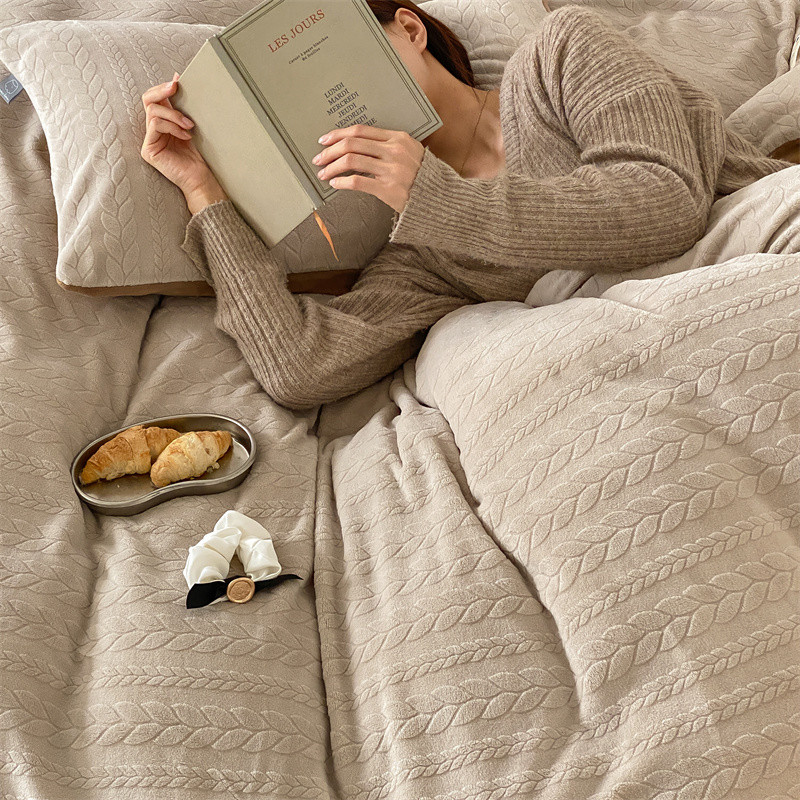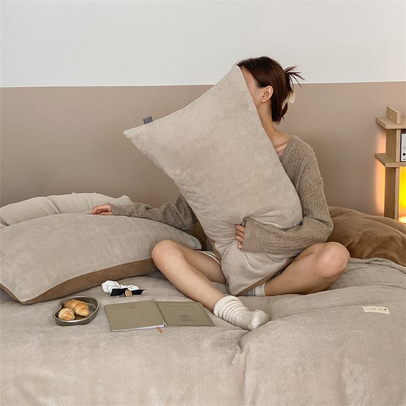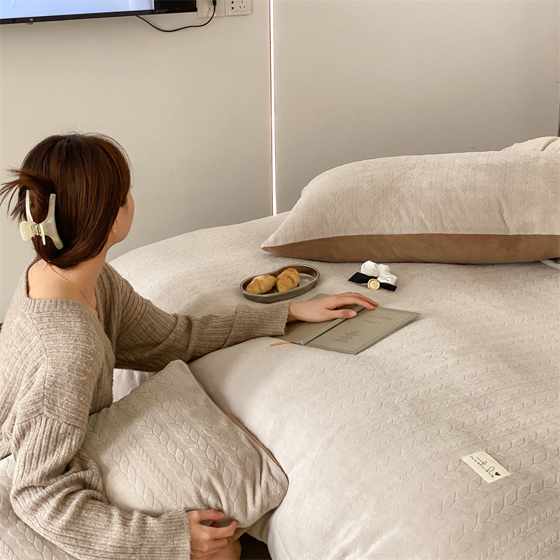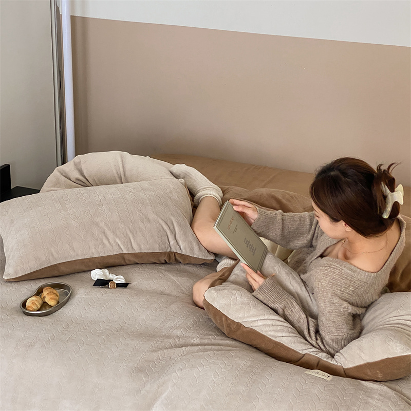 玉宇阁 2023新款日暮高克重牛奶绒四件套 厚乳拿铁