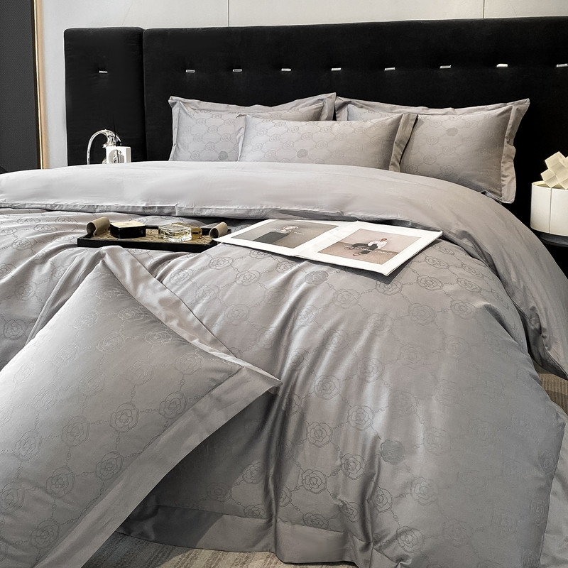 魅都 100s长绒棉提花大拼角四件套 安娜-高级灰