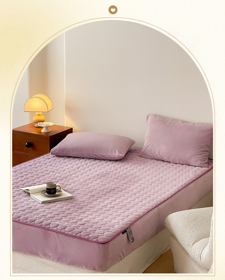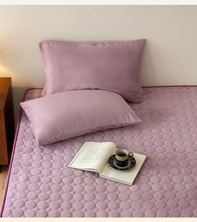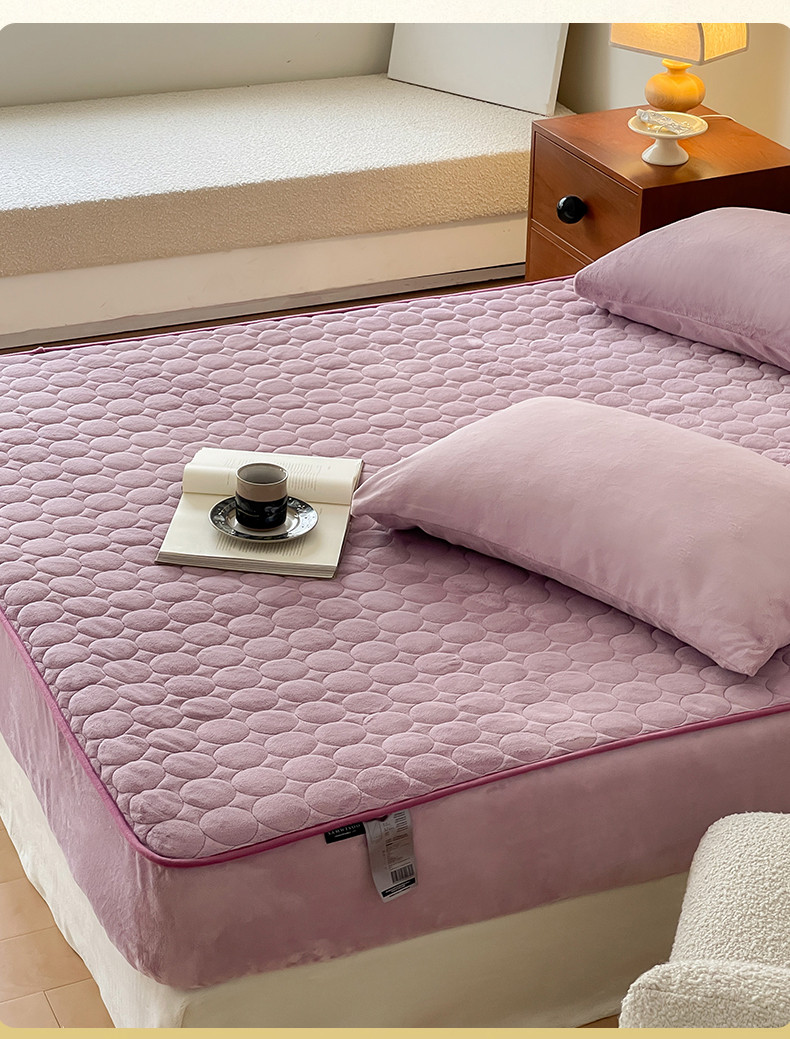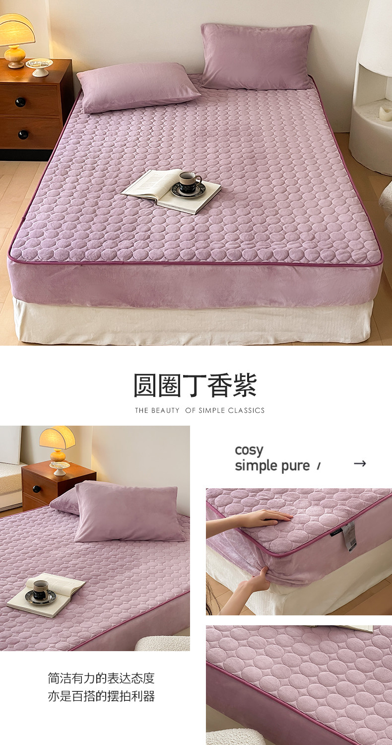 商品名称:三味舒屋 2024新款230g牛奶绒夹棉床笠 圆圈丁香紫