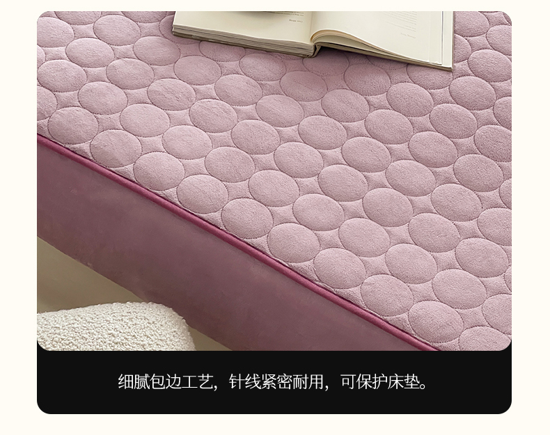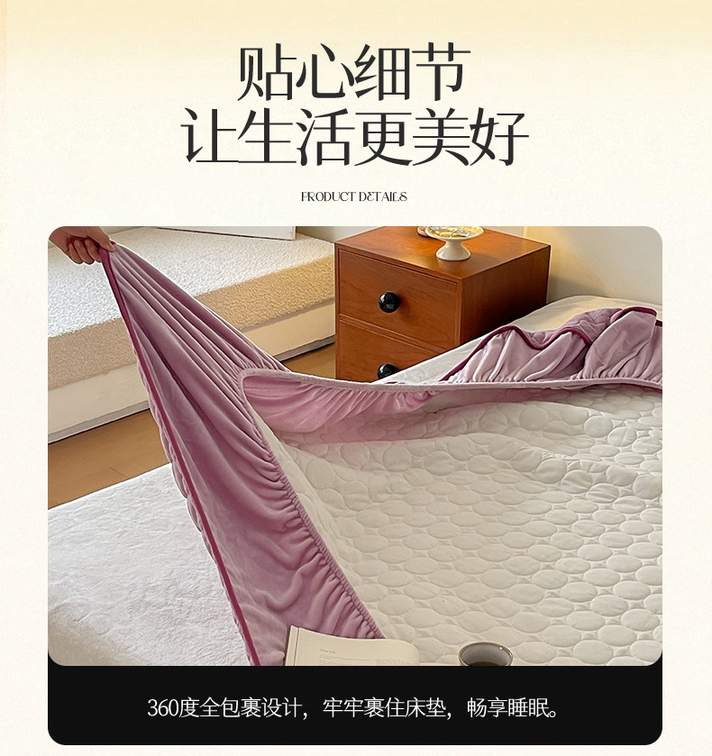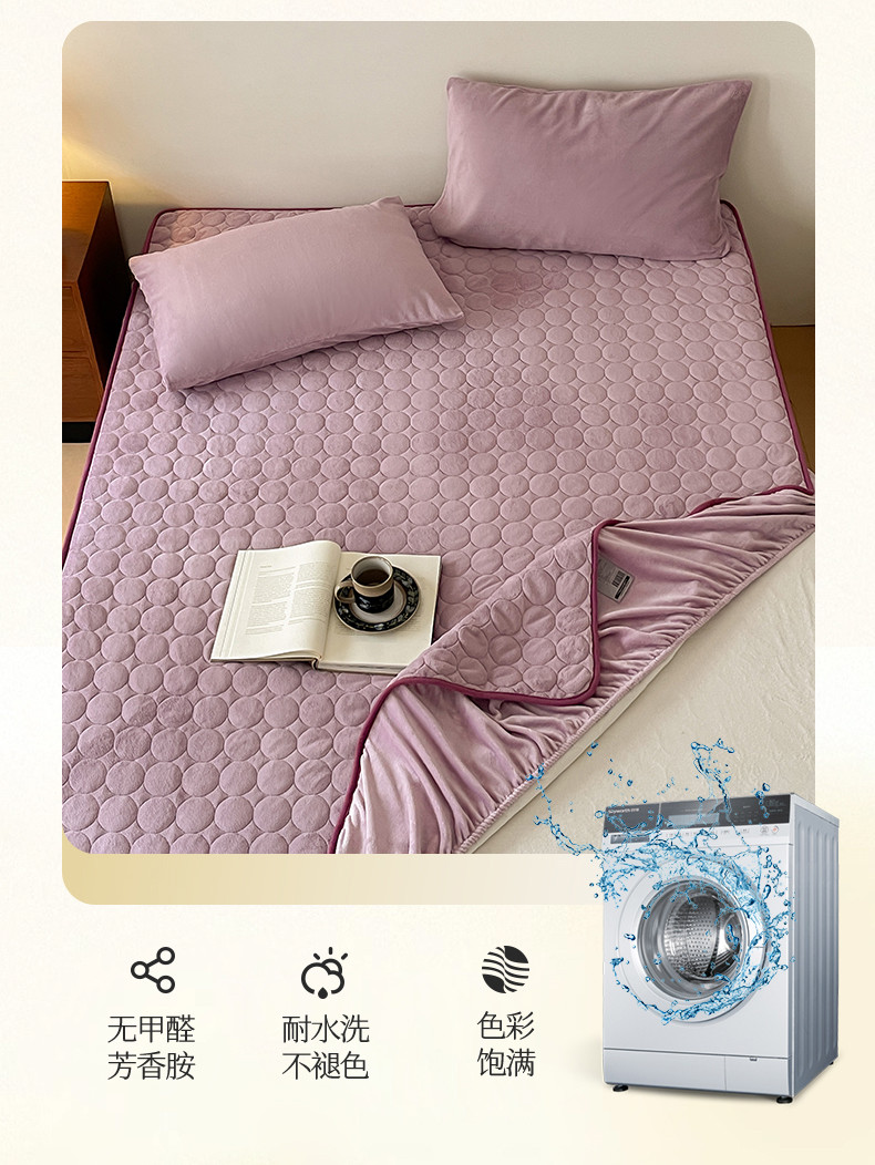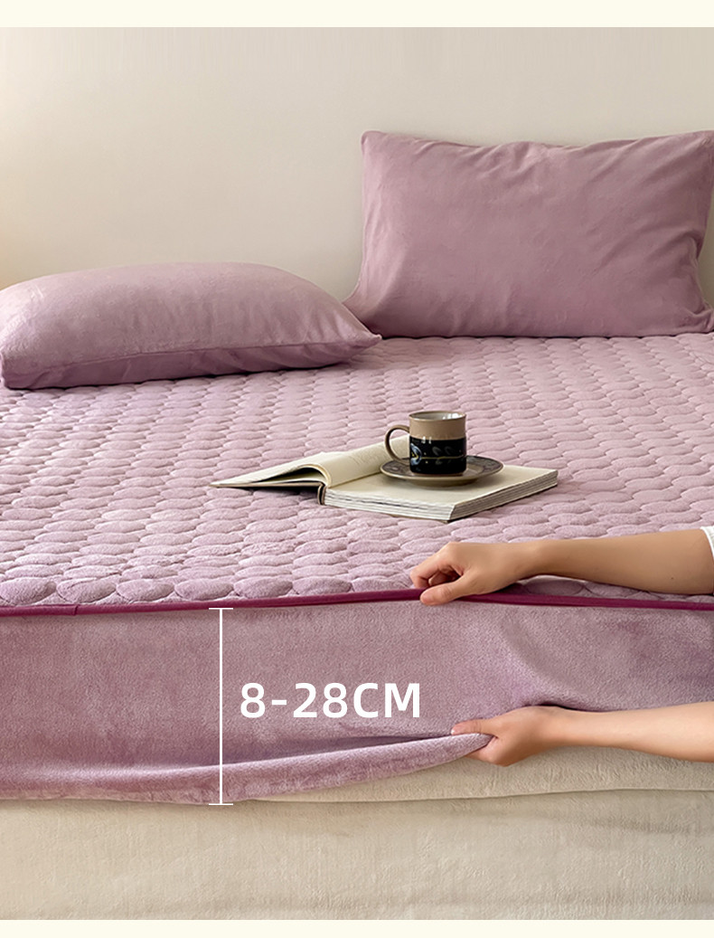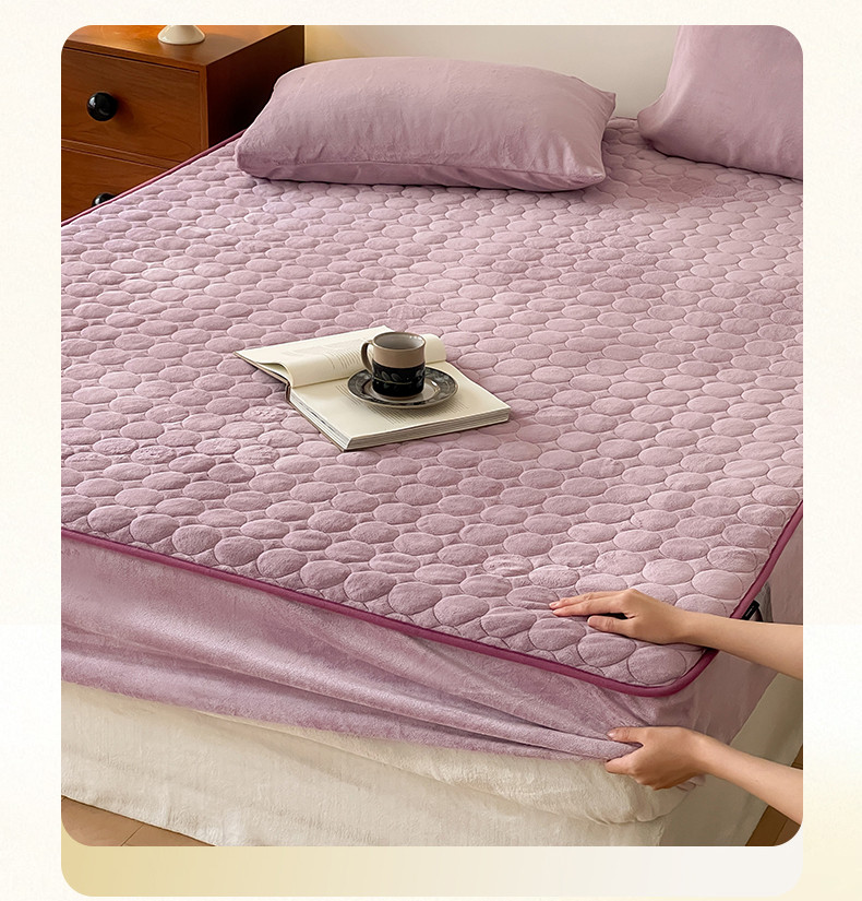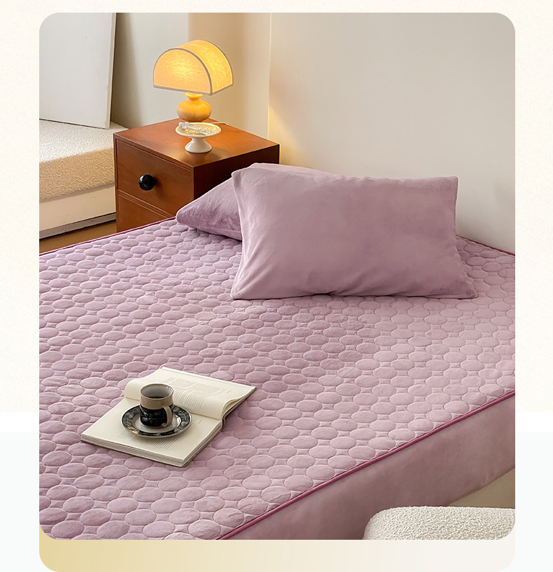 商品名称:三味舒屋 2024新款230g牛奶绒夹棉床笠 圆圈丁香紫