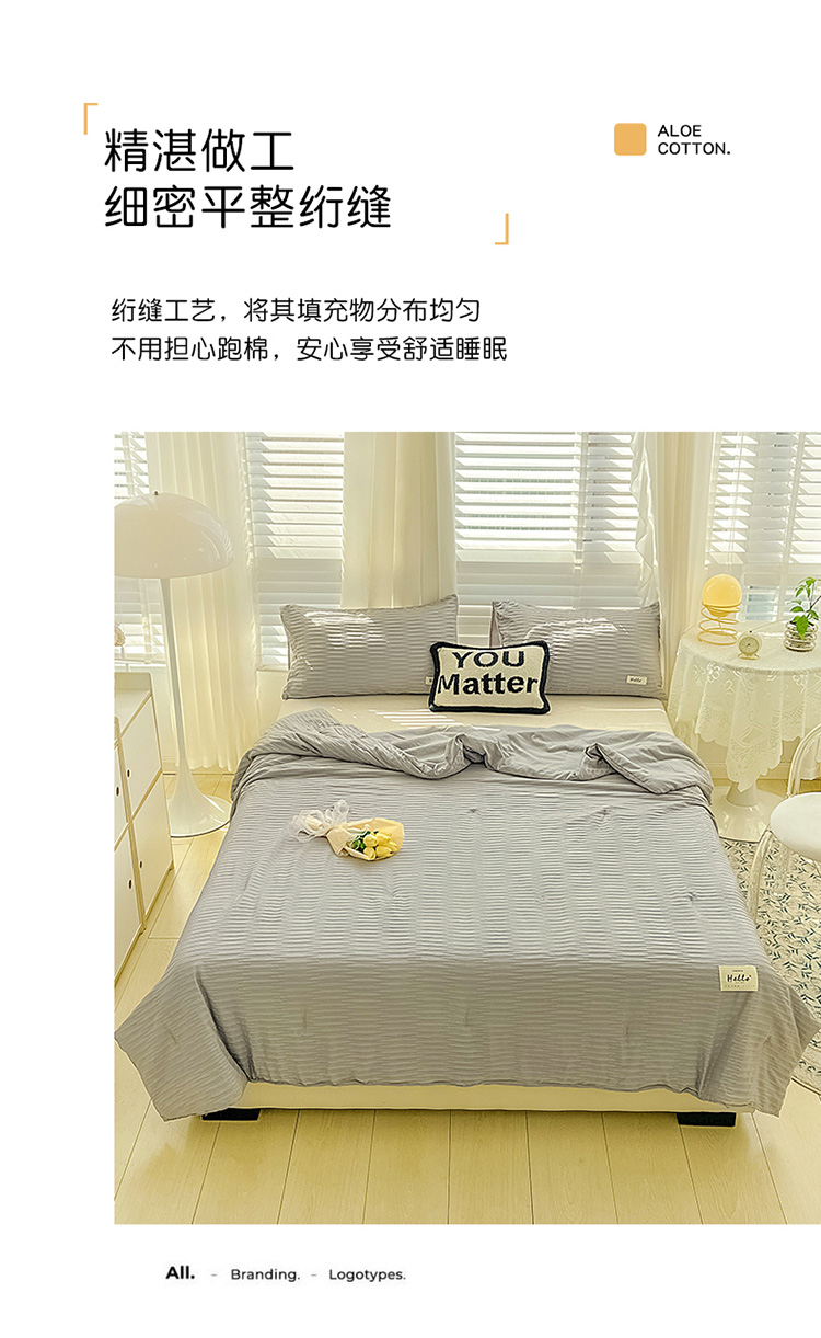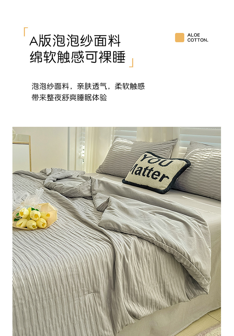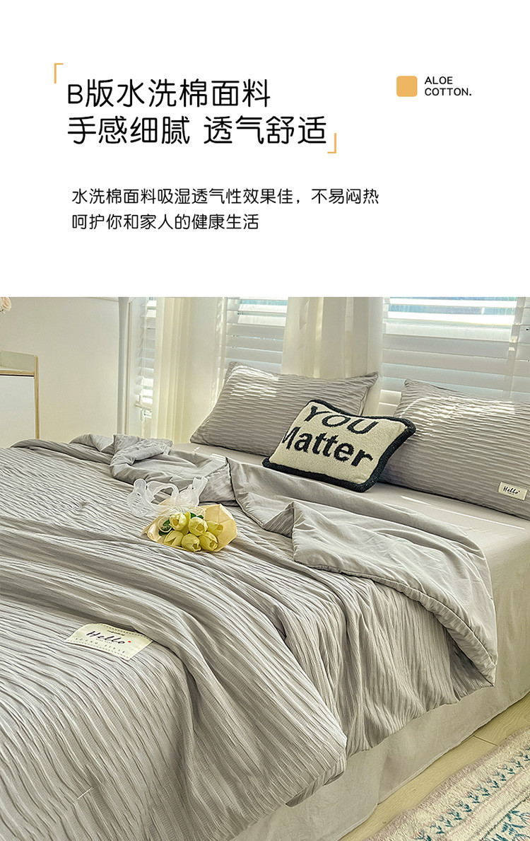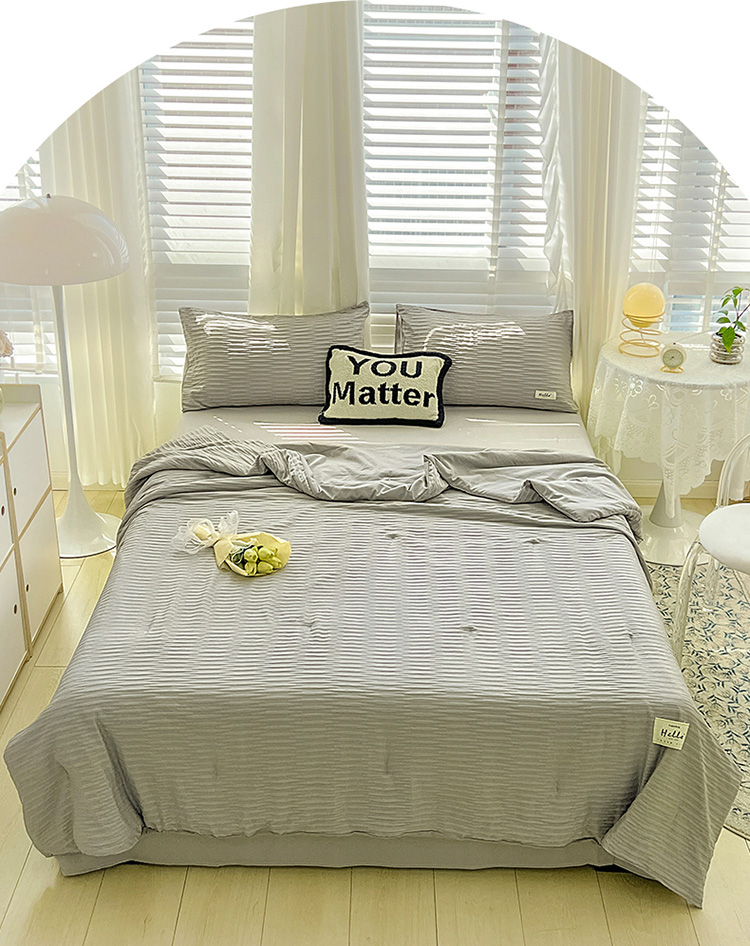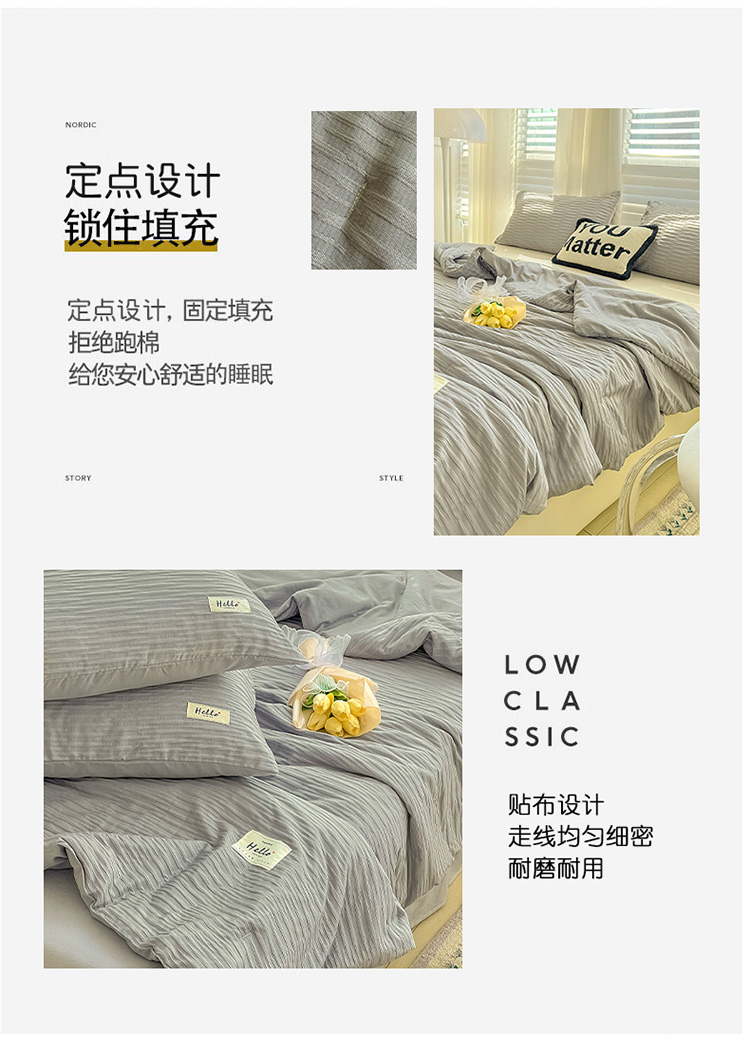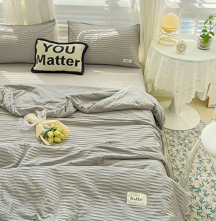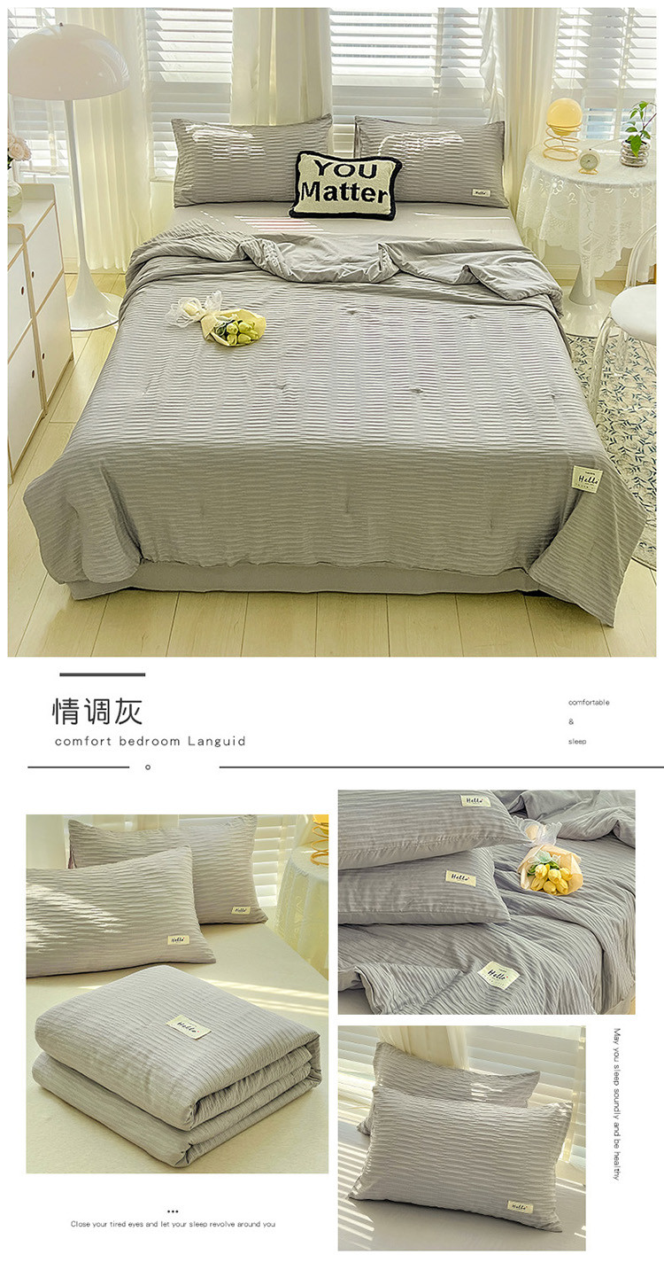 暖芯优选 2023新款韩版泡泡纱水洗棉拼色床单夏被四件套 情调灰