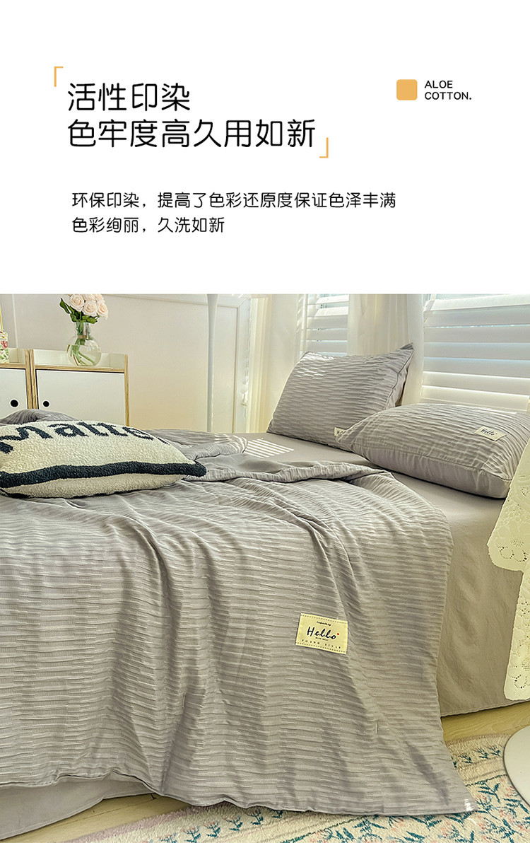 商品名称:暖芯优选 2023新款韩版泡泡纱水洗棉拼色床单夏被四件套 情调灰