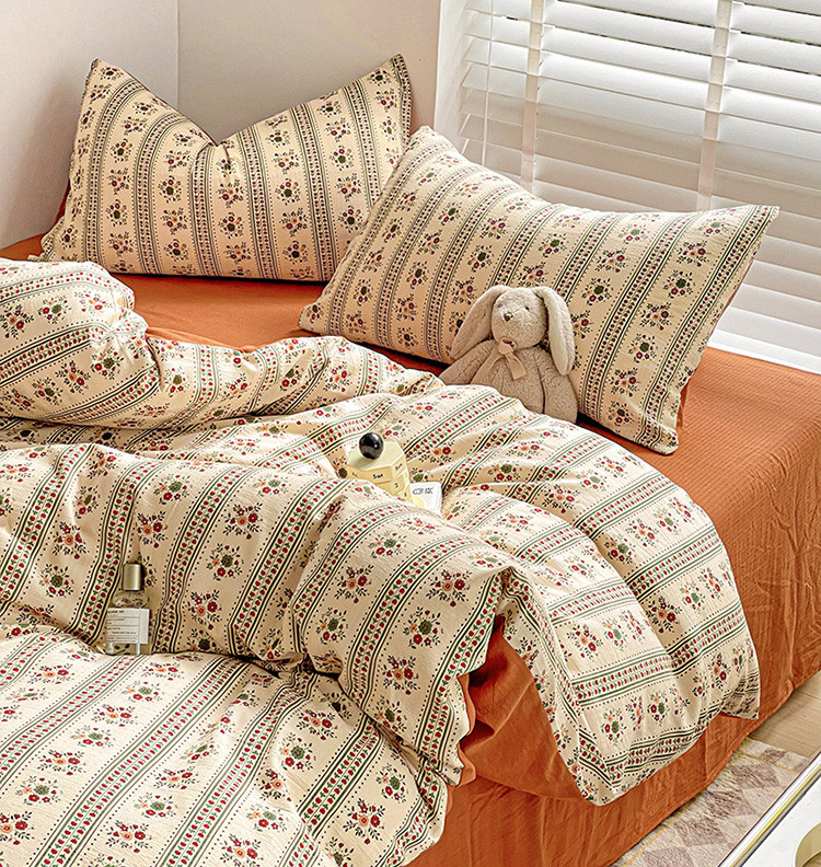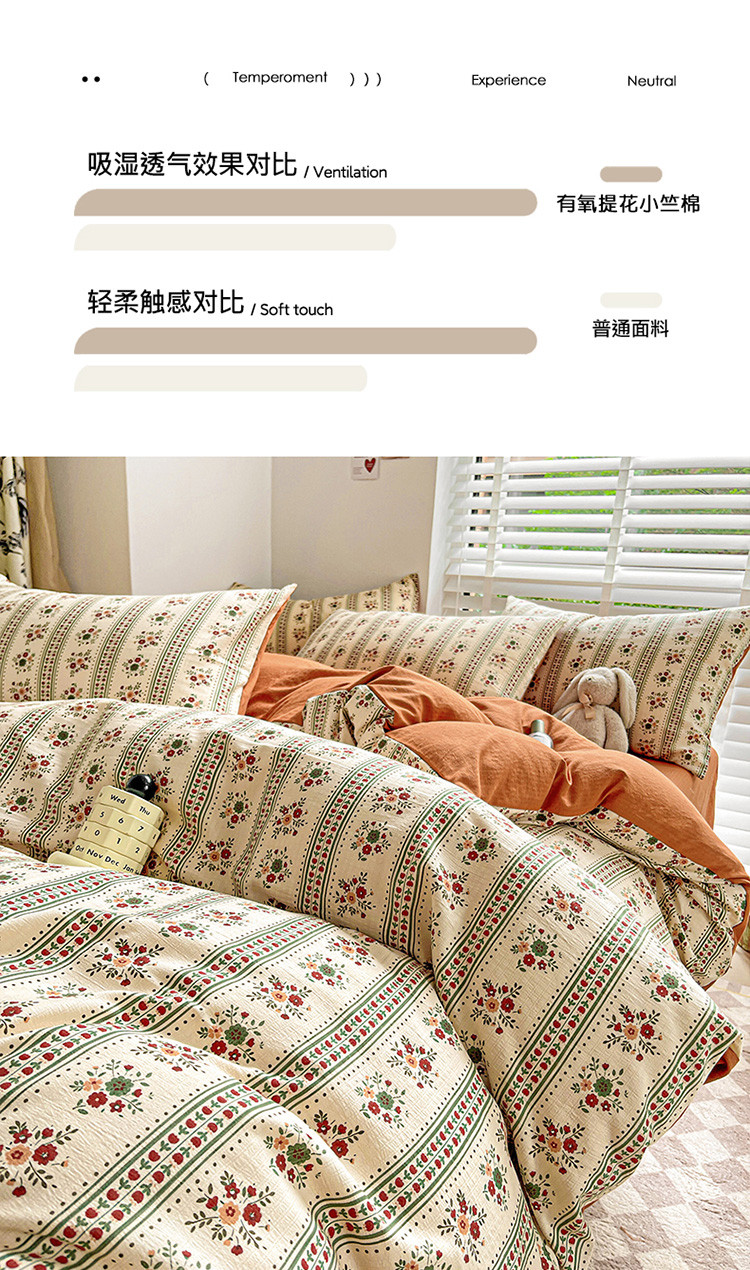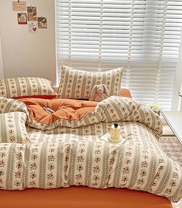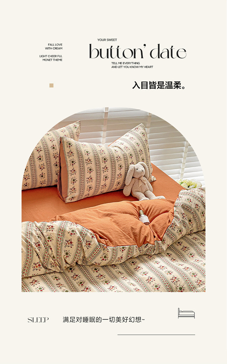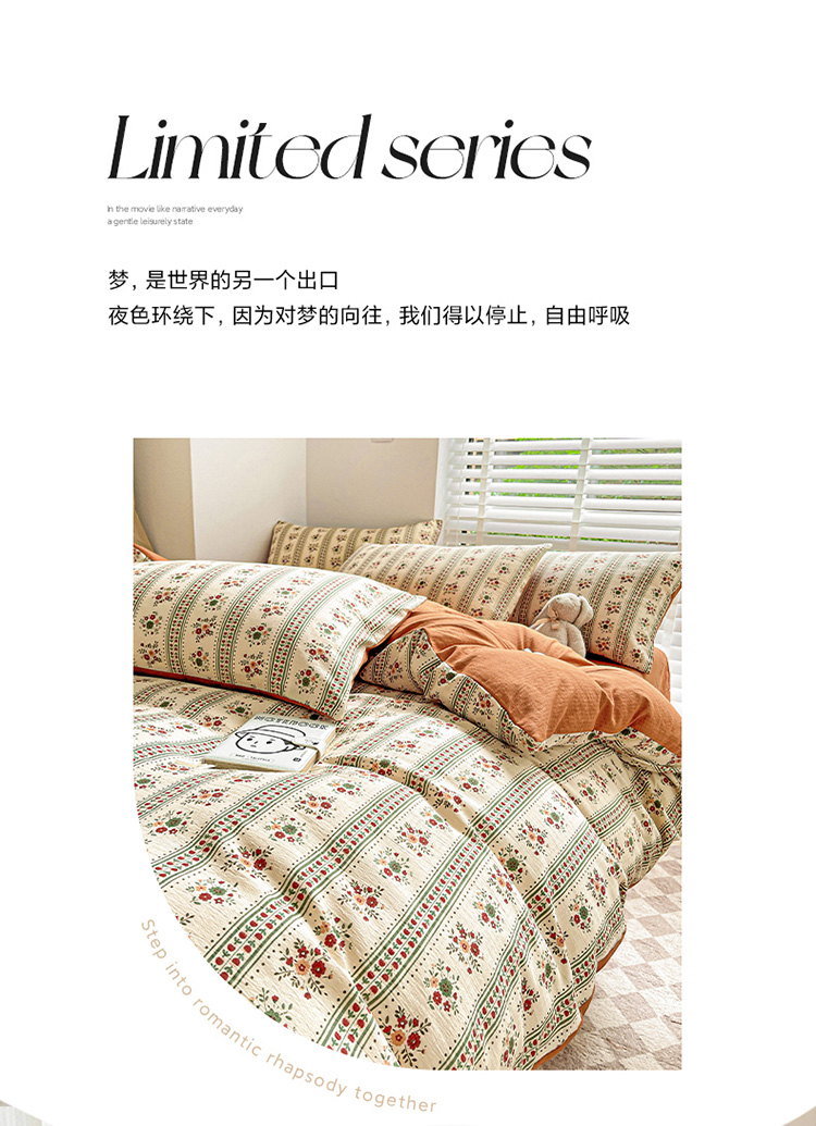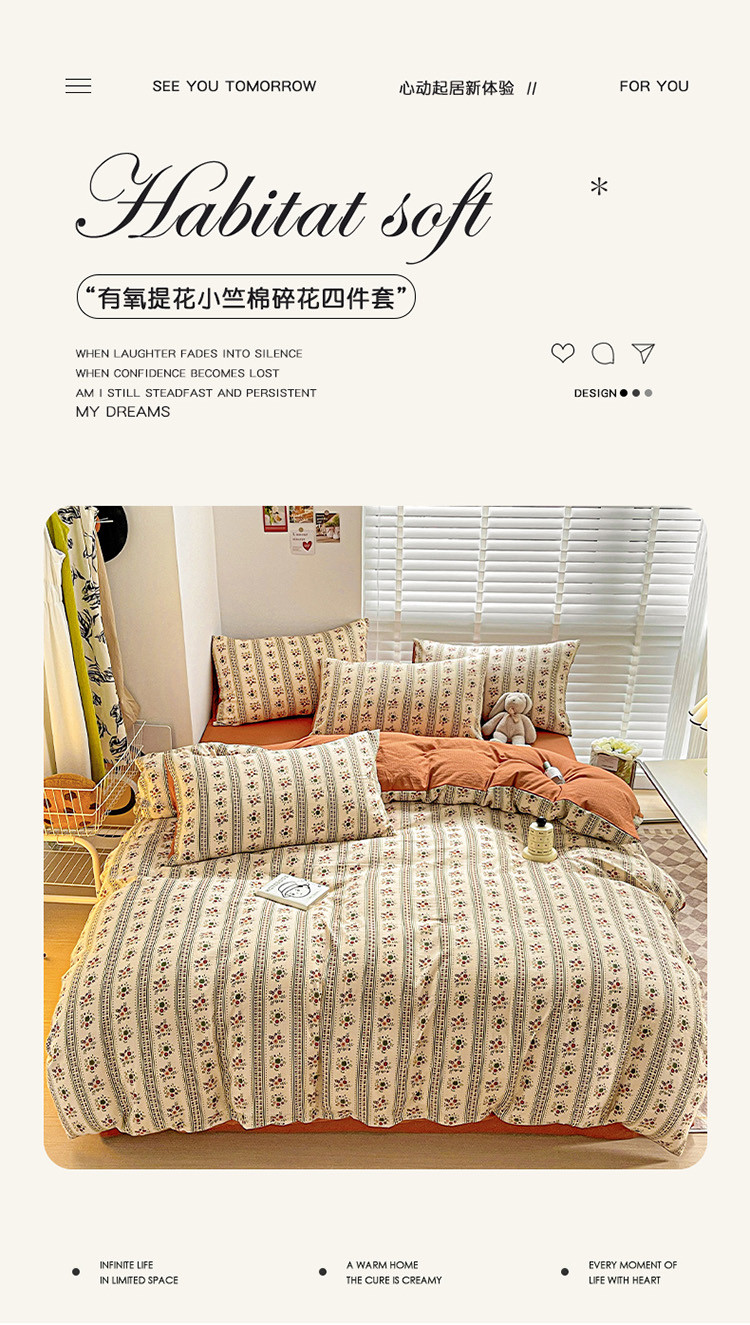 当前位置: 91家纺网 > 商品网购 > 床品套件 > 四件套 > 全棉普通四件套 > 暖芯优选2023新款超柔有氧小竺提花棉双层纱学生四件套 可可庄园