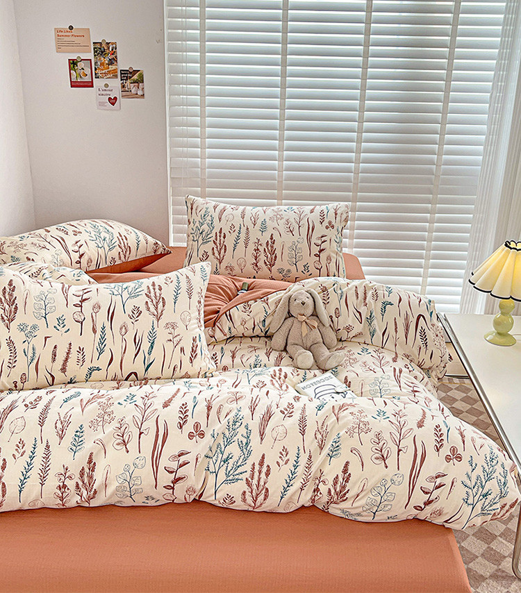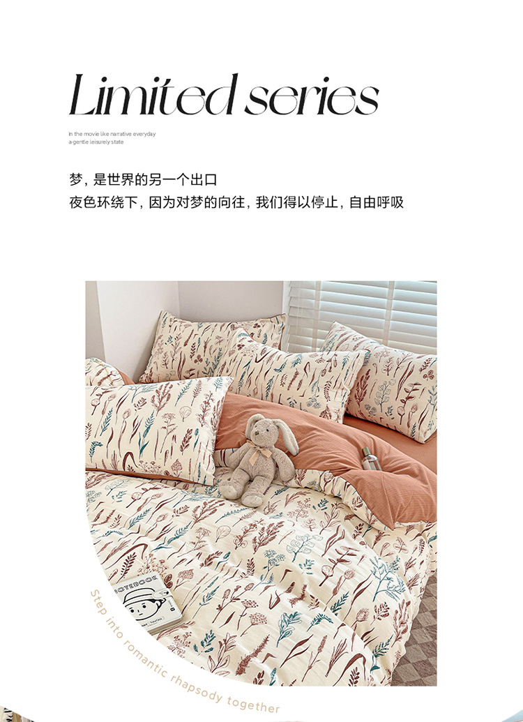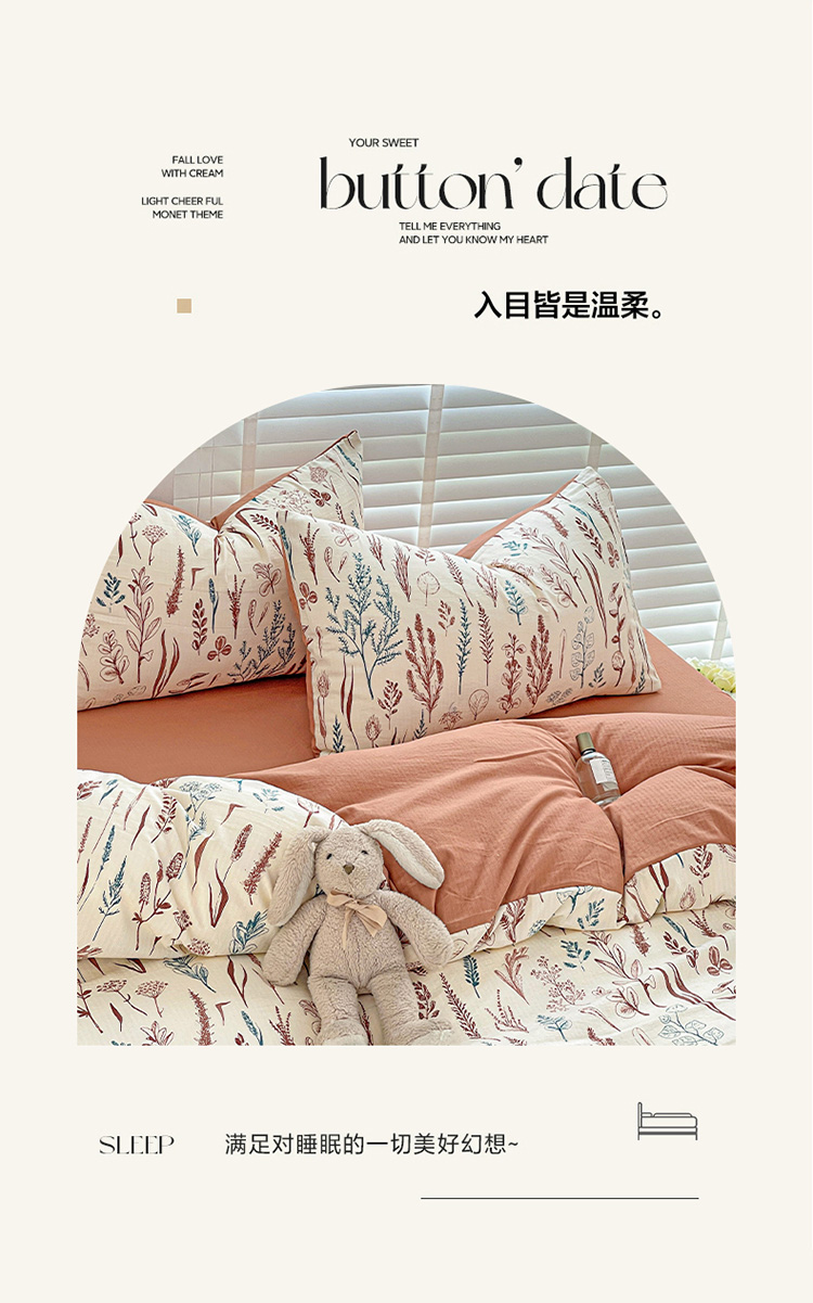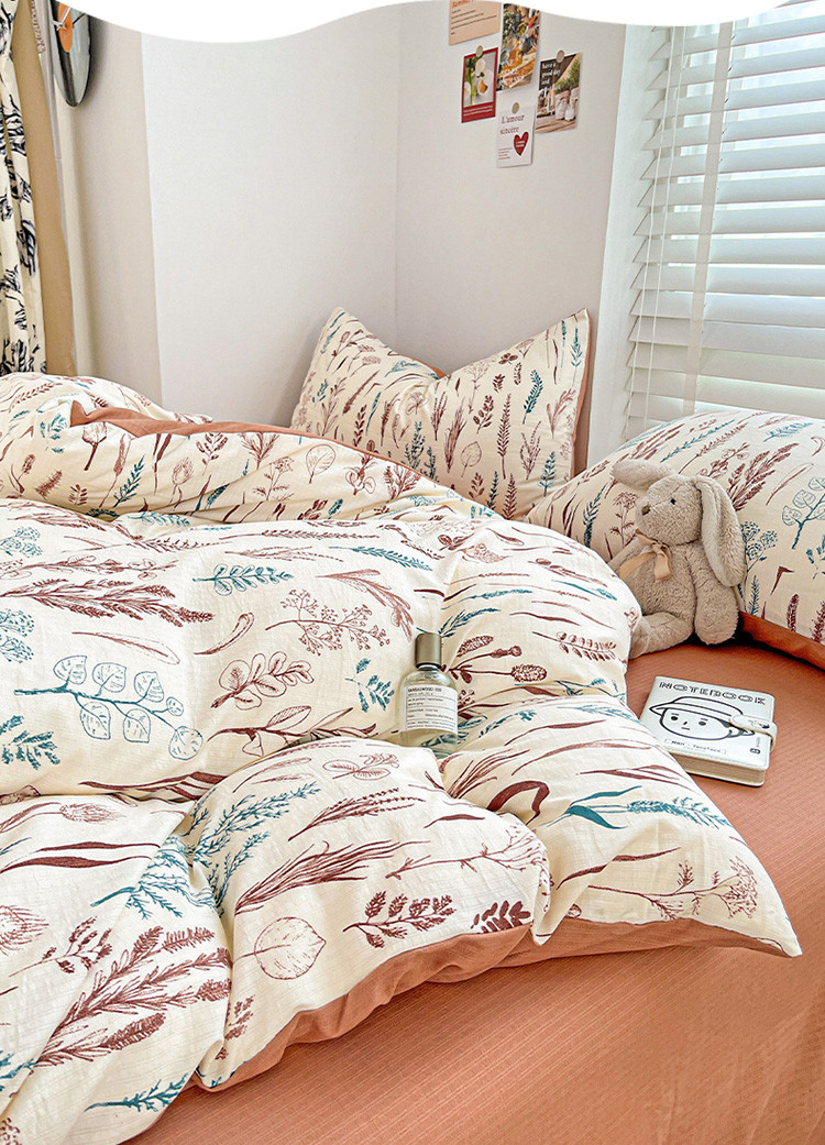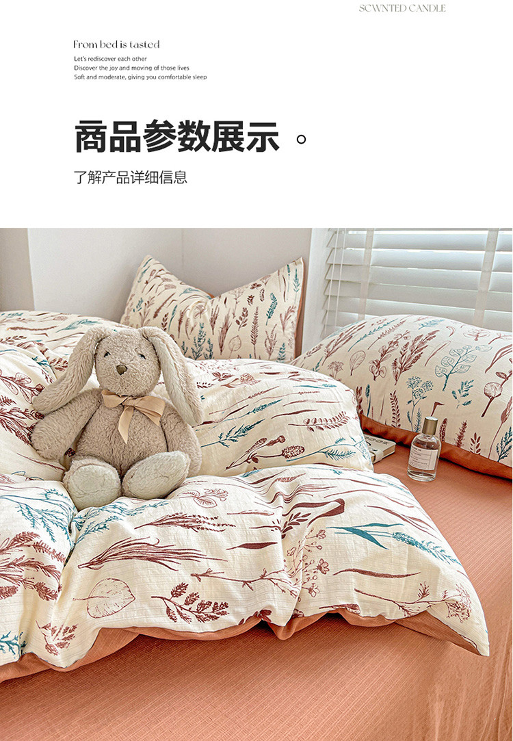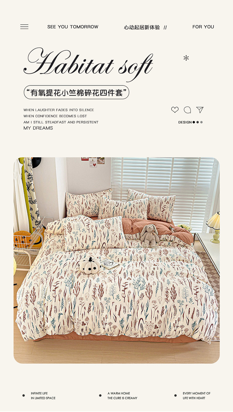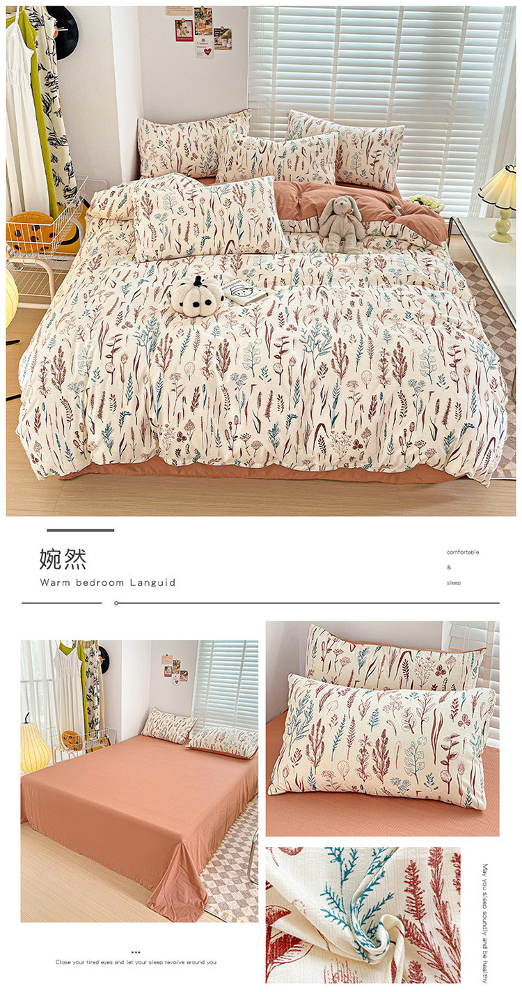 当前位置: 91家纺网 > 商品网购 > 床品套件 > 四件套 > 全棉普通四件套 > 暖芯优选2023新款超柔有氧小竺提花棉双层纱学生四件套 婉然