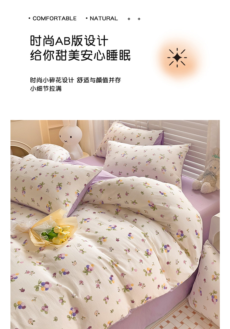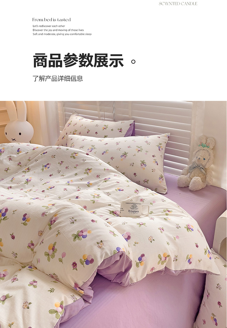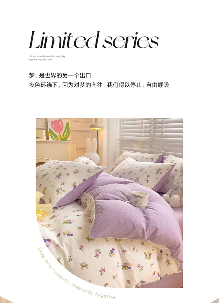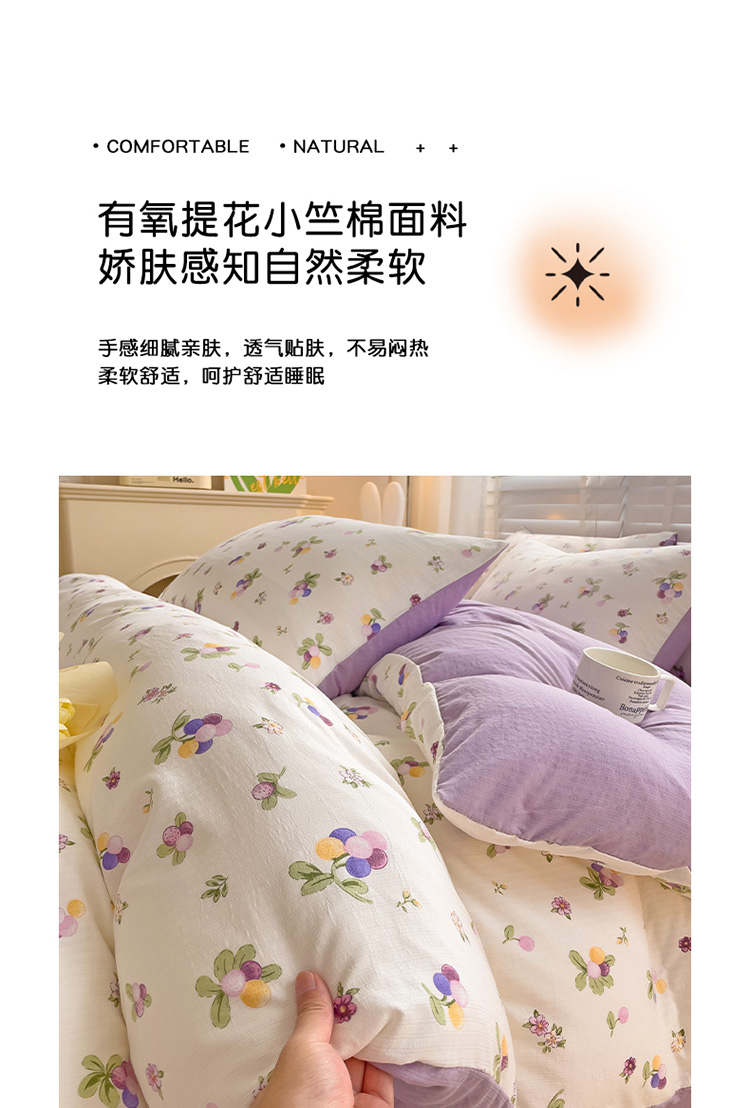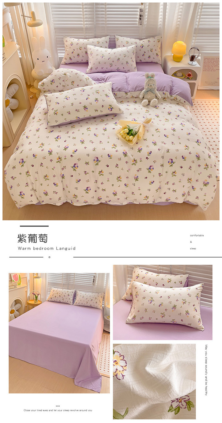 当前位置: 91家纺网 > 商品网购 > 床品套件 > 四件套 > 全棉普通四件套 > 暖芯优选2023新款超柔有氧小竺提花棉双层纱学生四件套 紫葡萄