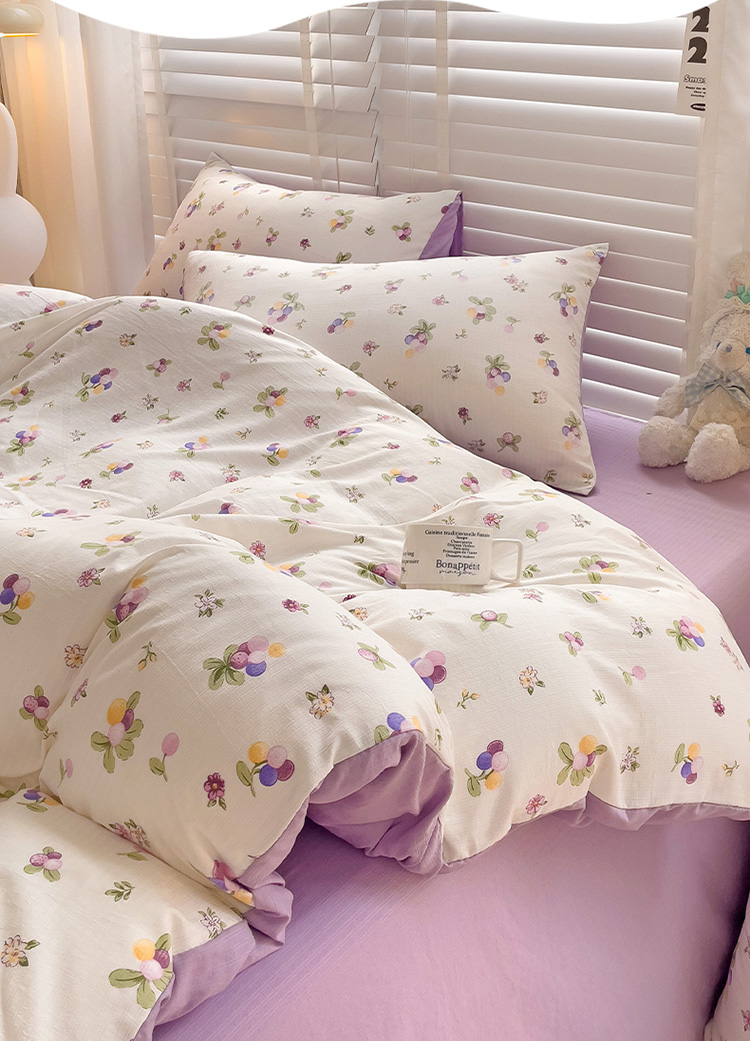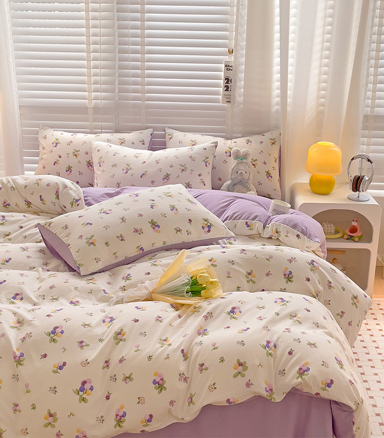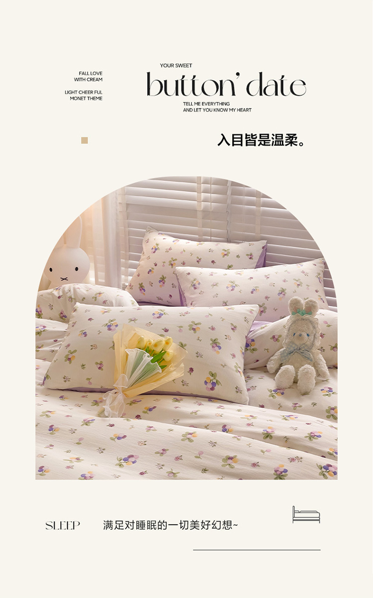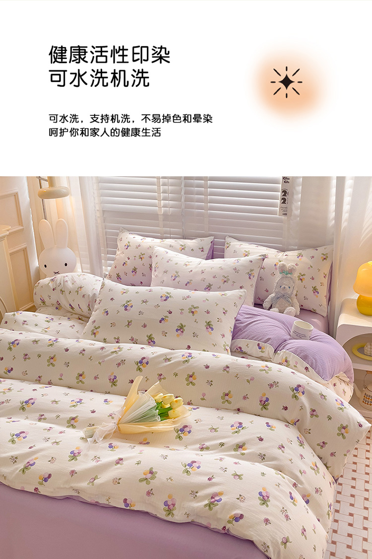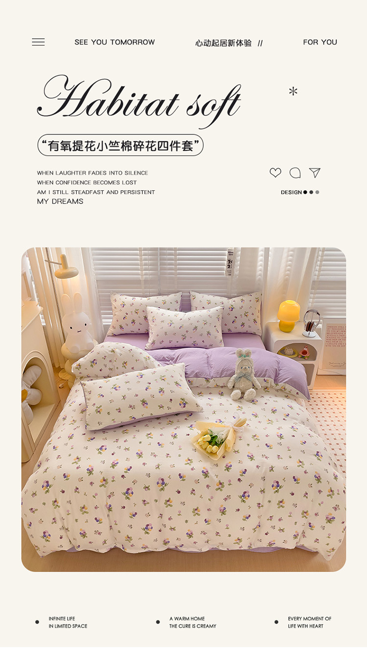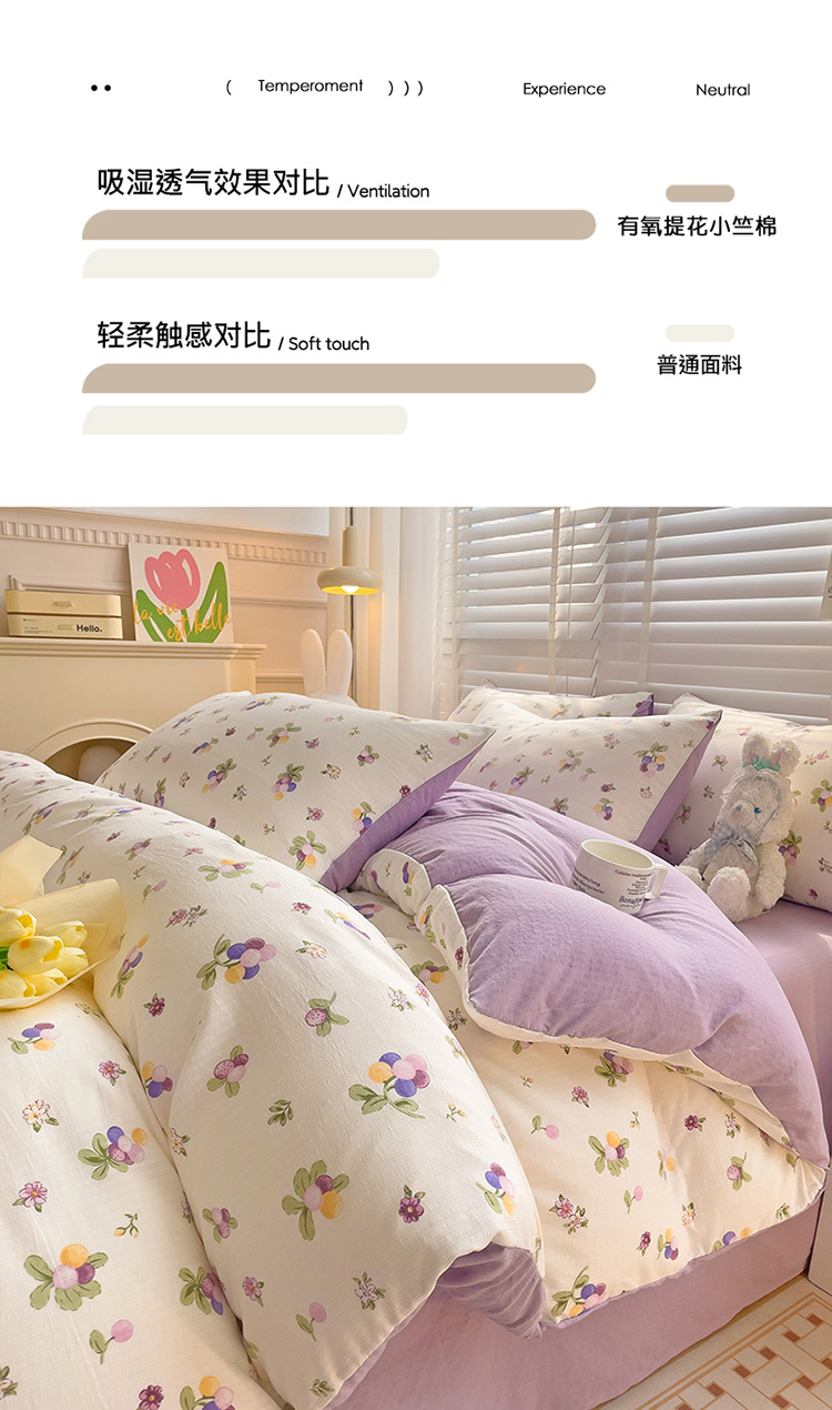 当前位置: 91家纺网 > 商品网购 > 床品套件 > 四件套 > 全棉普通四件套 > 暖芯优选2023新款超柔有氧小竺提花棉双层纱学生四件套 紫葡萄
