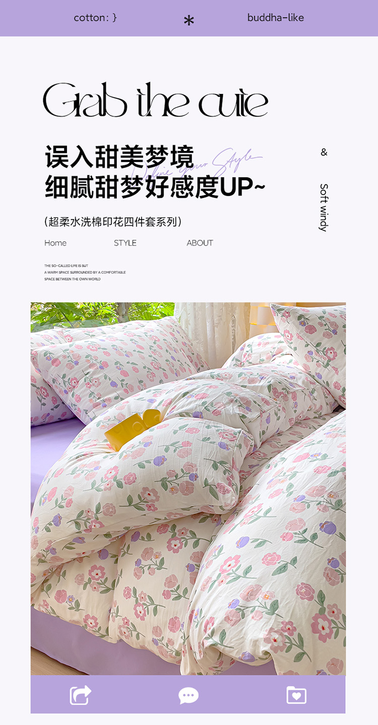 当前位置: 91家纺网 > 商品网购 > 床品套件 > 四件套 > 全棉普通四件套 > 暖芯优选 2023直播热款超柔水洗棉双层纱四件套 芳华