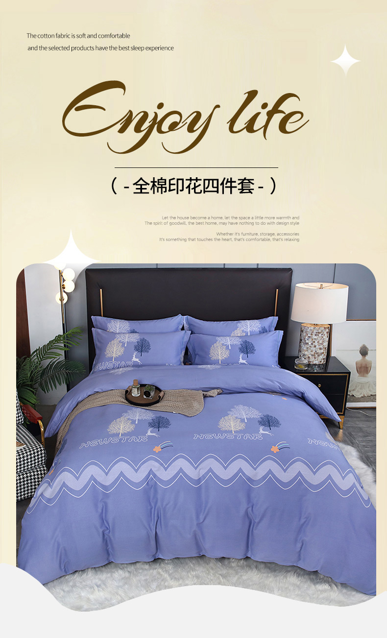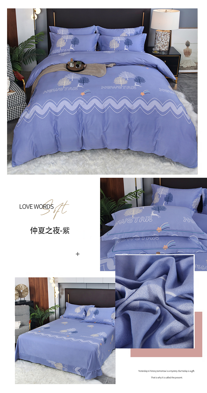 商品名称:金纱玉纺家纺 2023新款纯棉加厚AB版四件套 仲夏之夜-紫