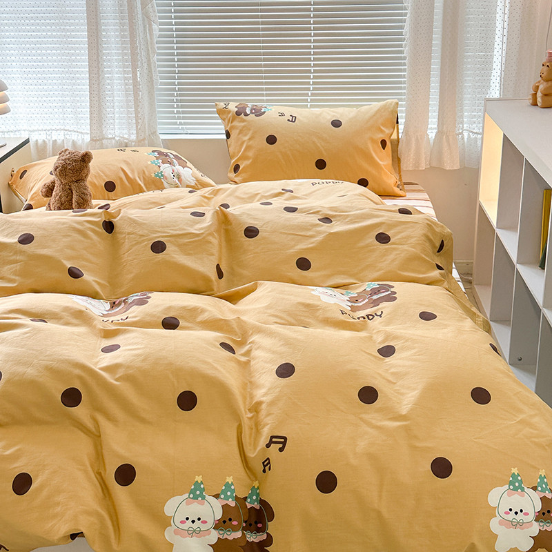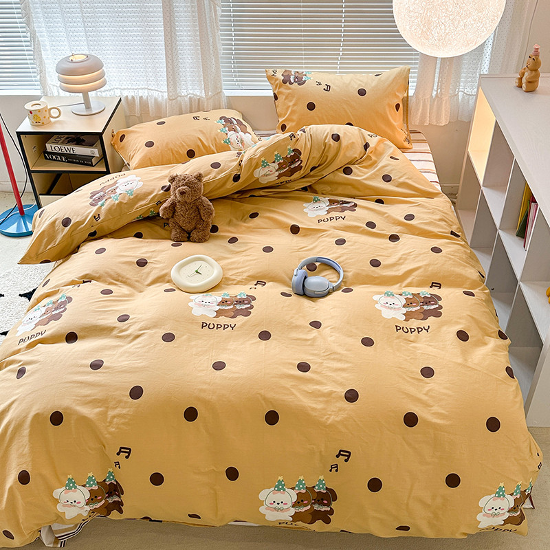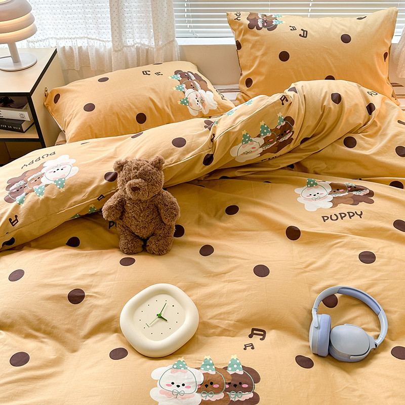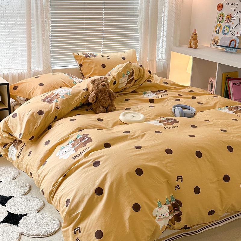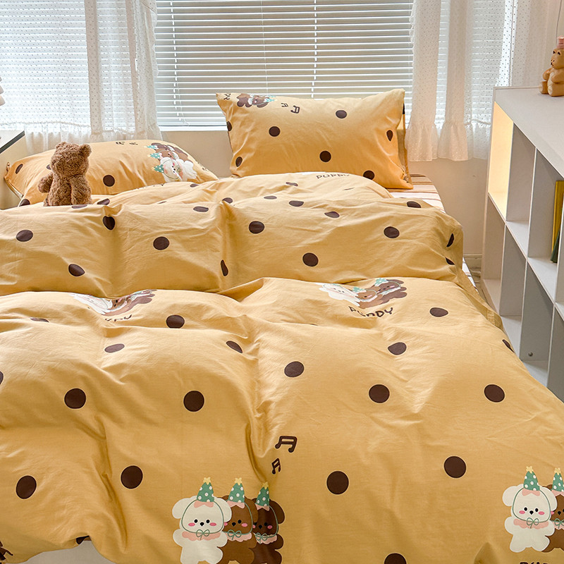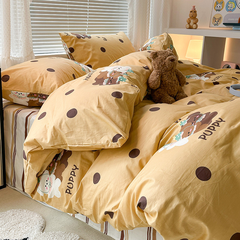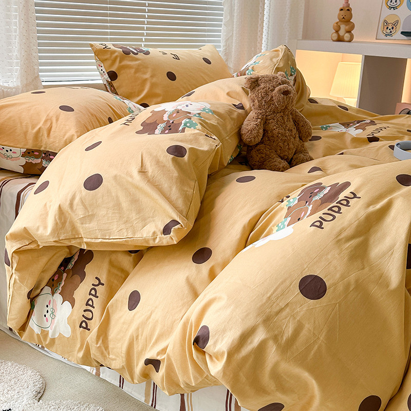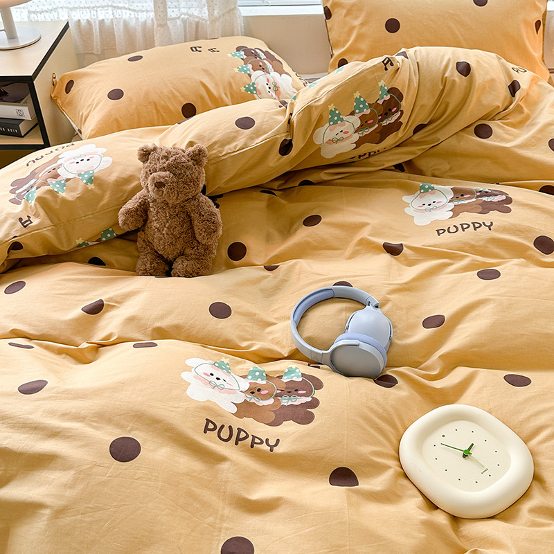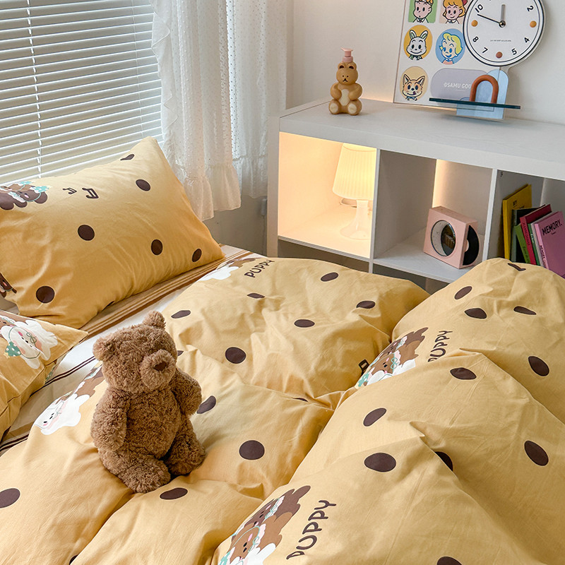 昔可 2023新款全棉萌趣卡通四件套 波点狗狗