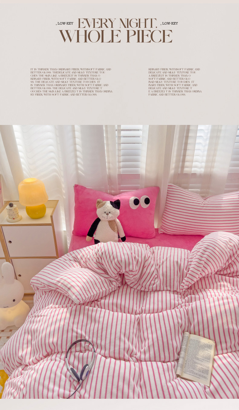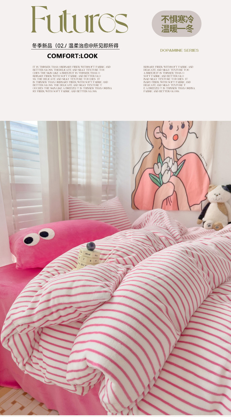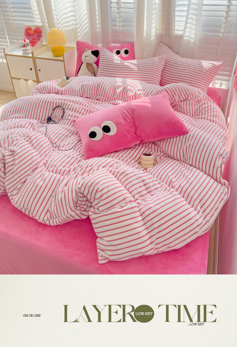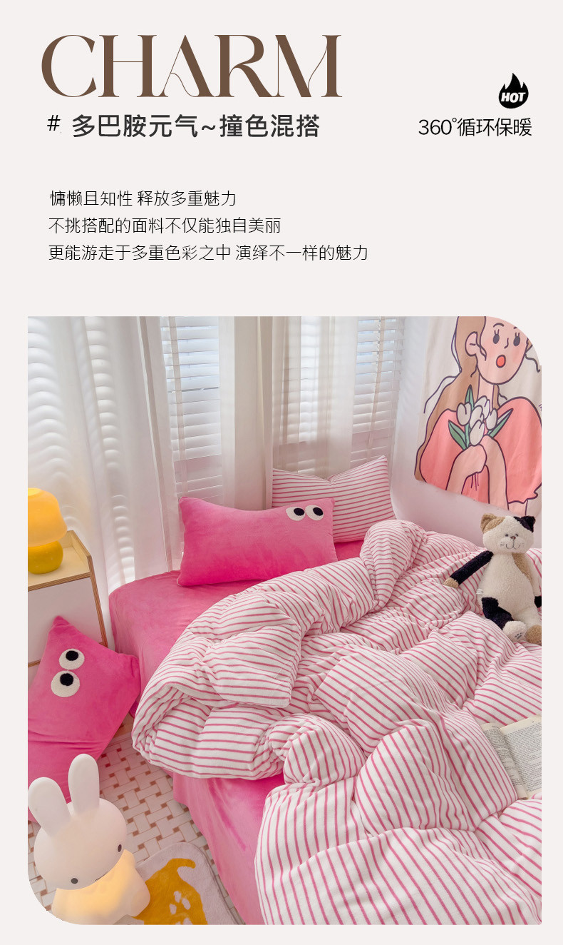 当前位置: 91家纺网 > 商品网购 > 床品套件 > 四件套 > 牛奶绒四件套 > 丽涵 2024秋冬新品牛奶绒博主风多巴胺条纹混搭保暖四件套 芭比粉条-眼睛款