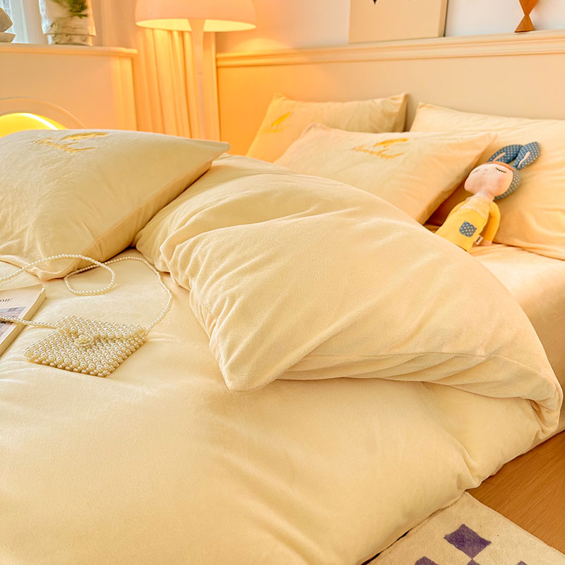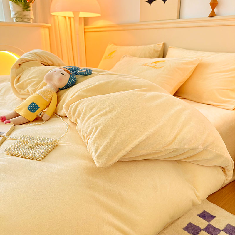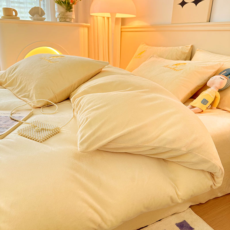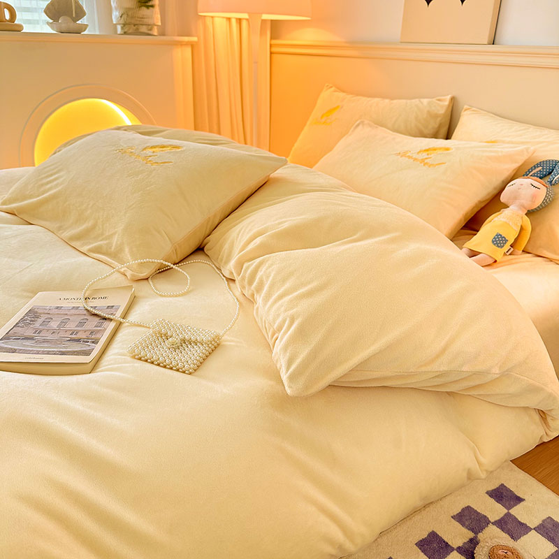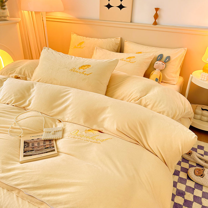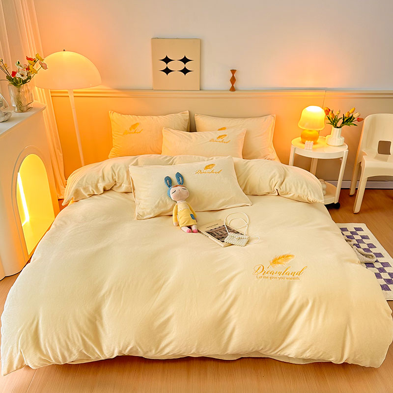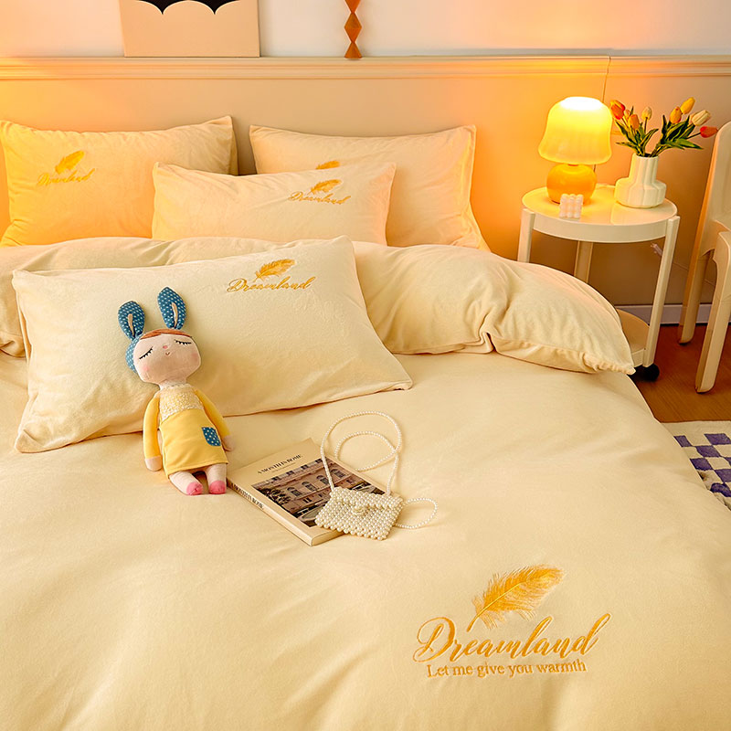 当前位置: 91家纺网 > 商品网购 > 床品套件 > 四件套 > 牛奶绒四件套 > yyds网供 新款牛奶绒羽毛刺绣水晶绒简约床单款床笠款单品套件-场景二 羽毛-浅黄