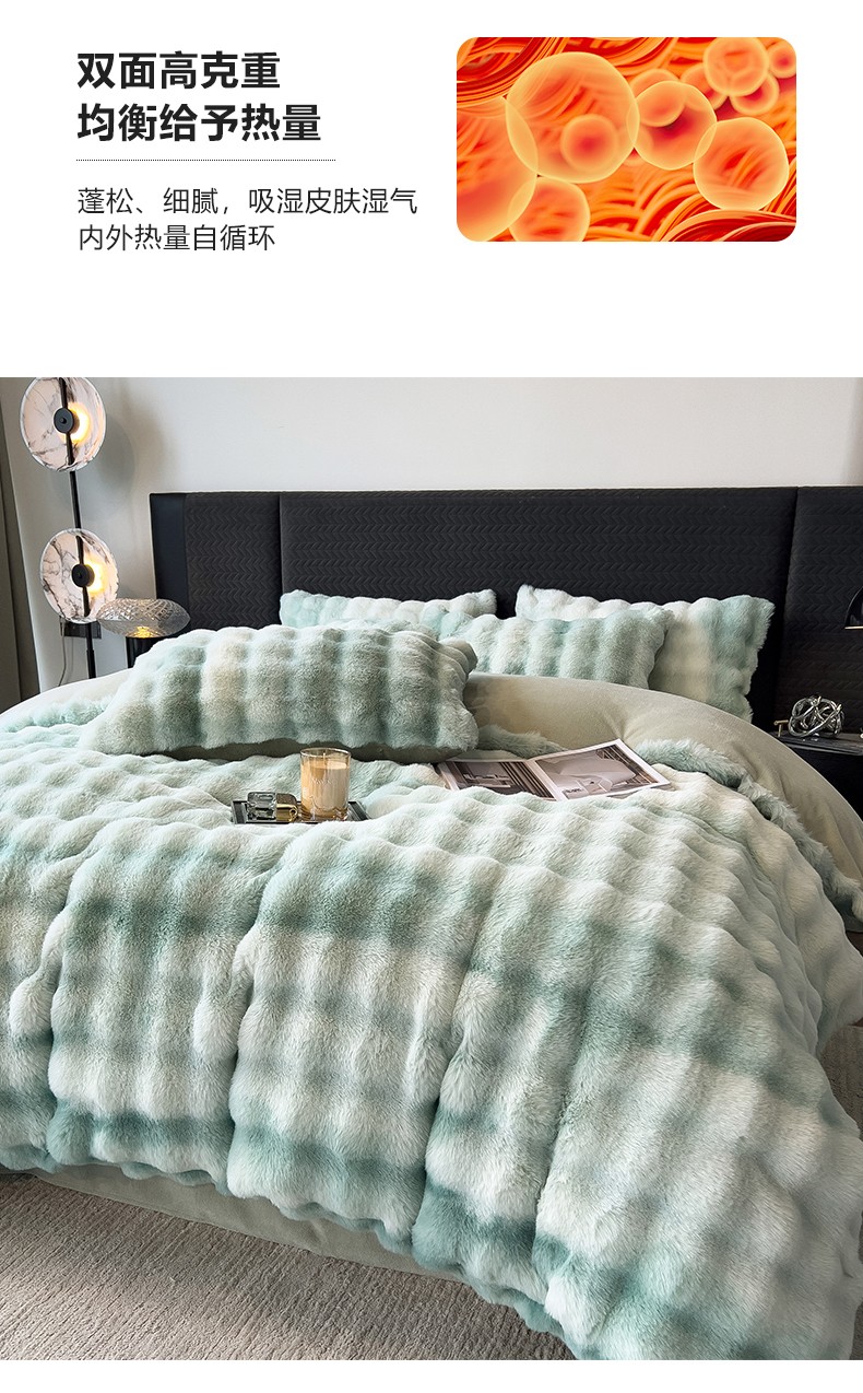 商品名称:宜代光年 2023新款兔毛绒小泡泡四件套-七彩系列 七彩-绿