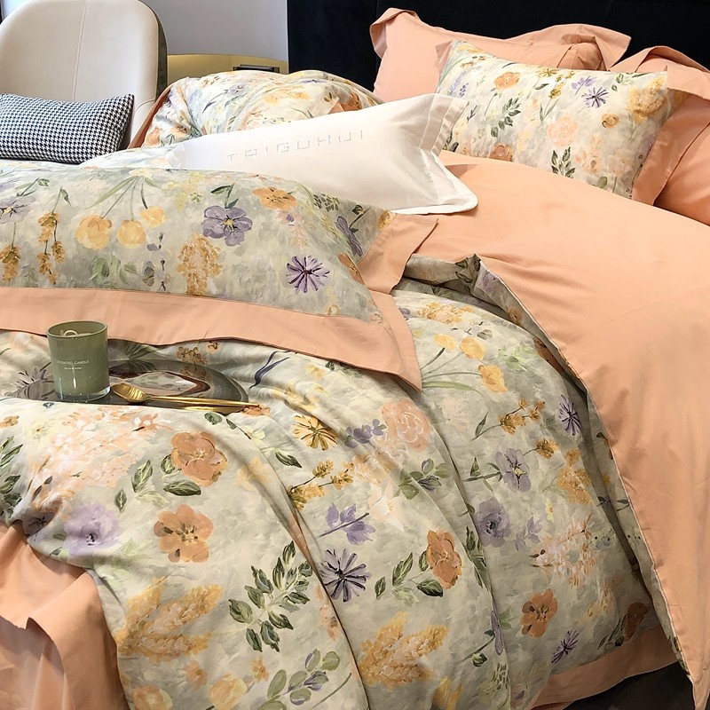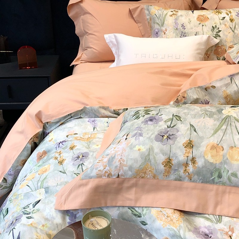 (总)太古汇家居 2025新款活性数码印花四件套,丽奥娜-松石绿,丽奥娜-杏子灰,丽奥娜-樱落紫,莉安娜-粉,莉安娜-卡其,莉安娜-绿,西莉娅-淡紫,西莉娅-粉色