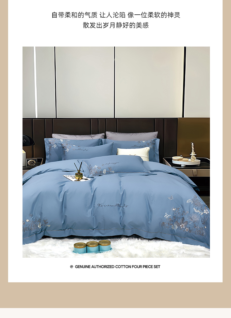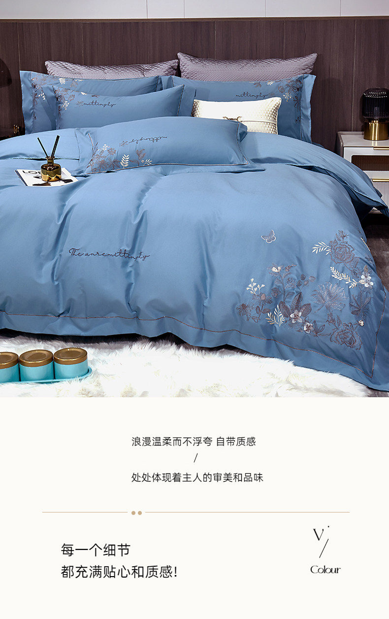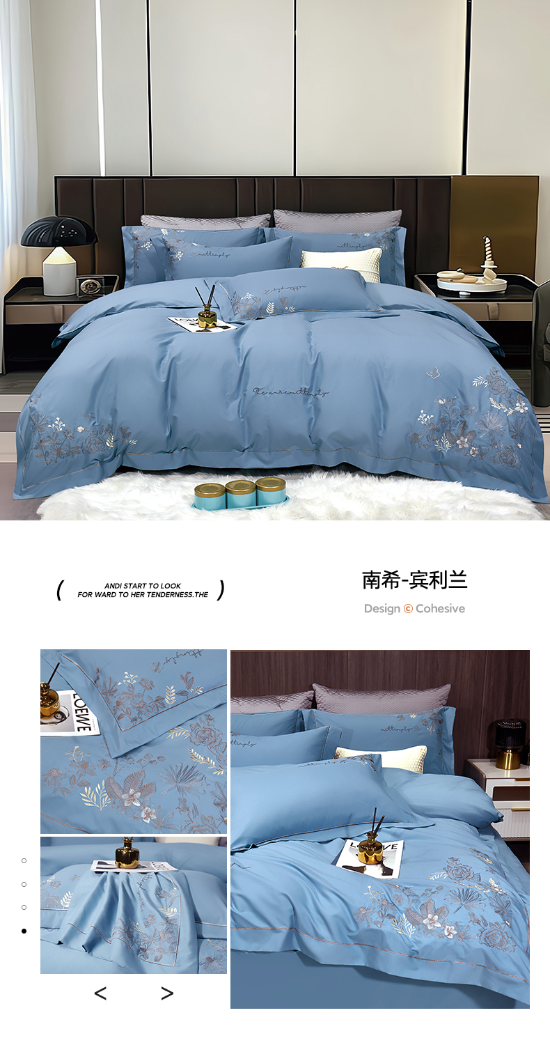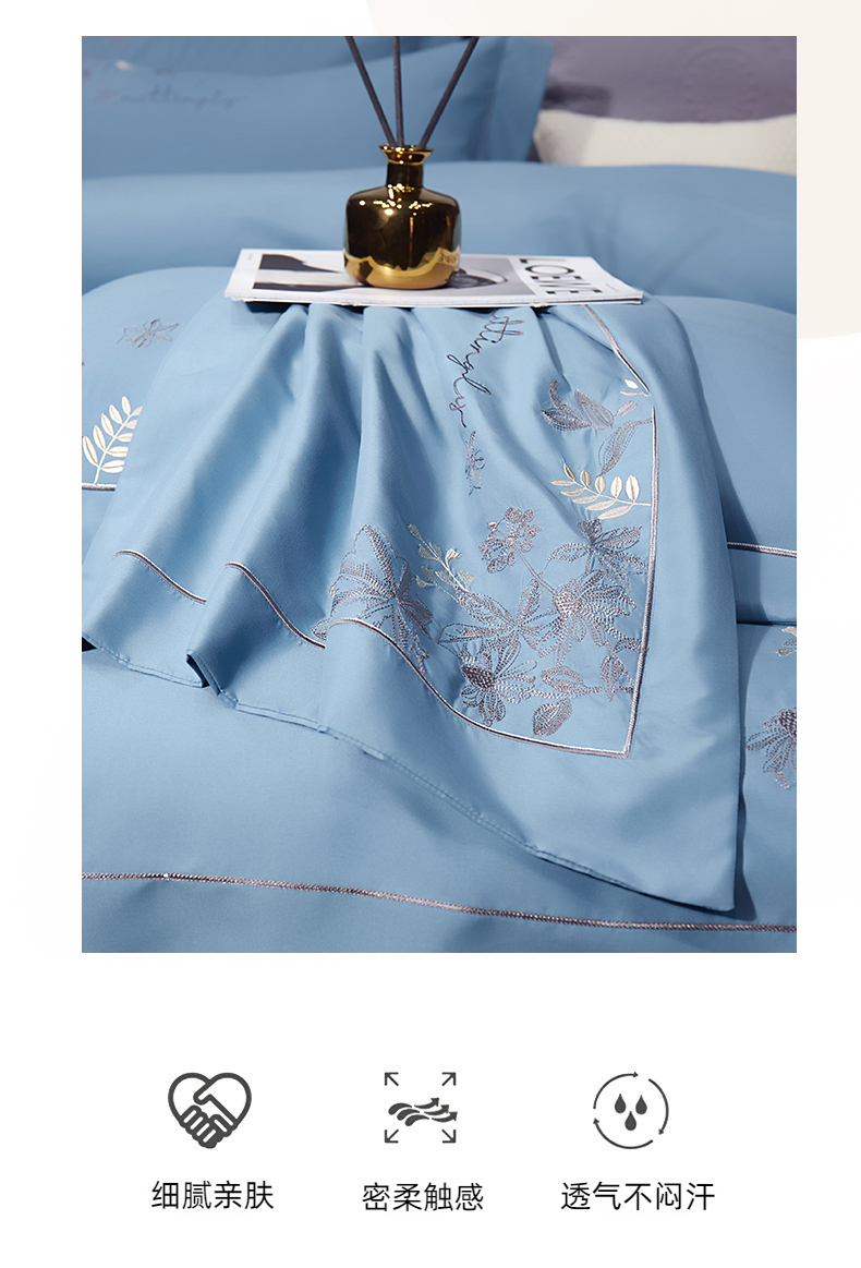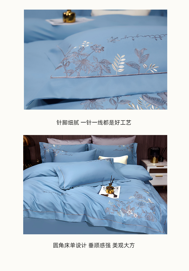 商品名称:云锦家居 2024春夏新品云柔棉刺绣四件套-南希 南希-宾利兰