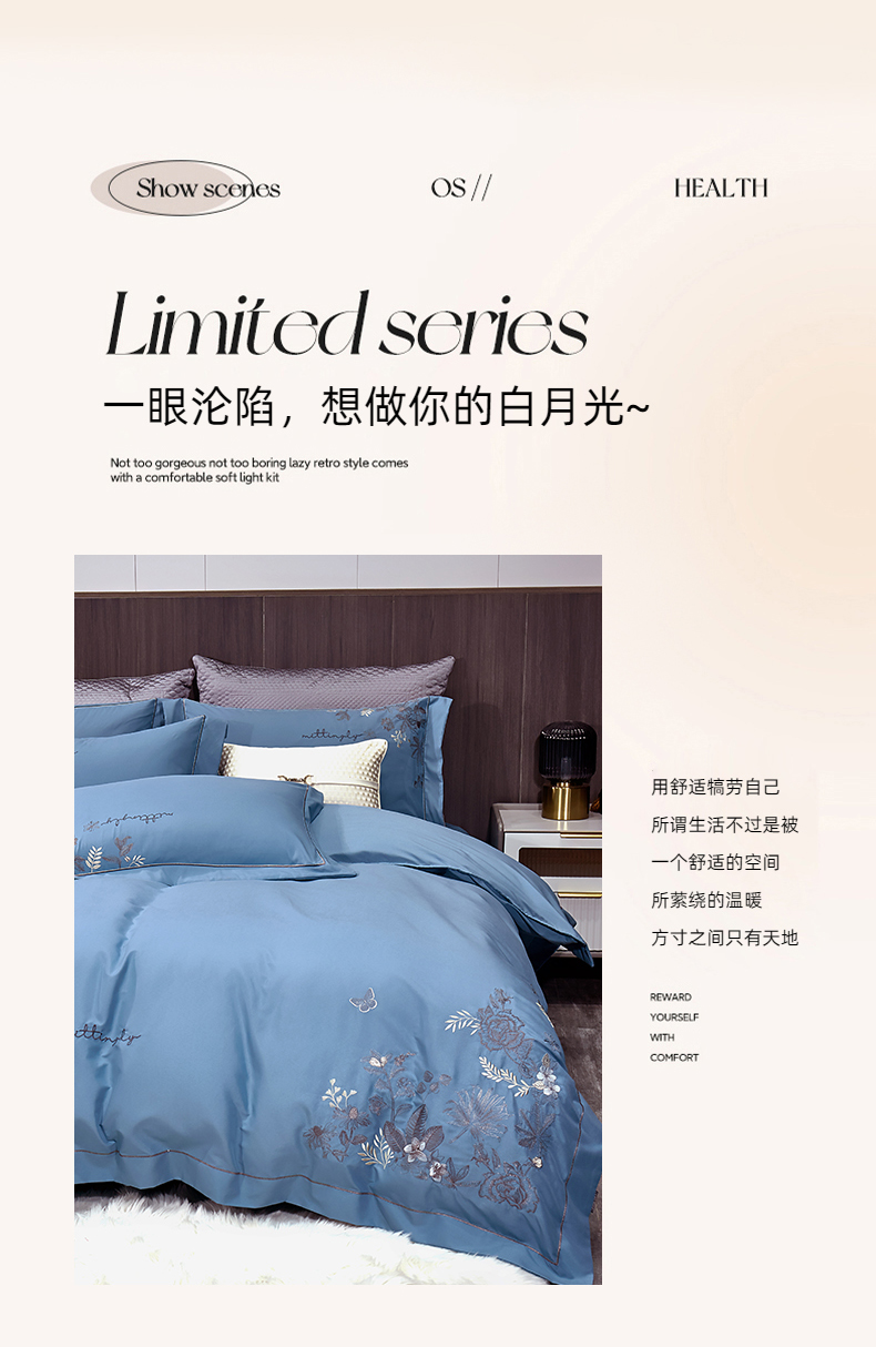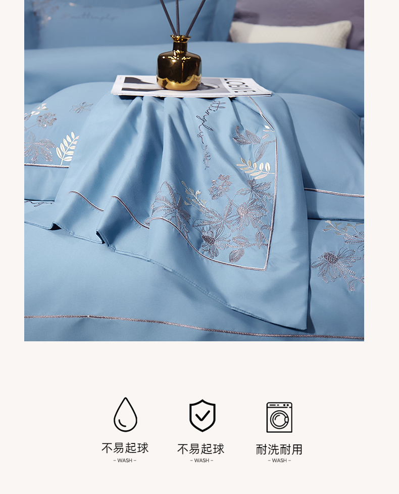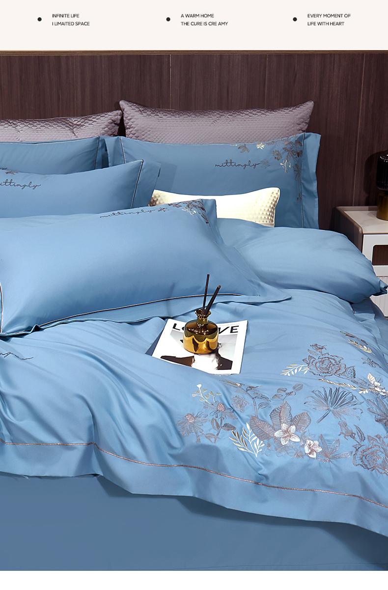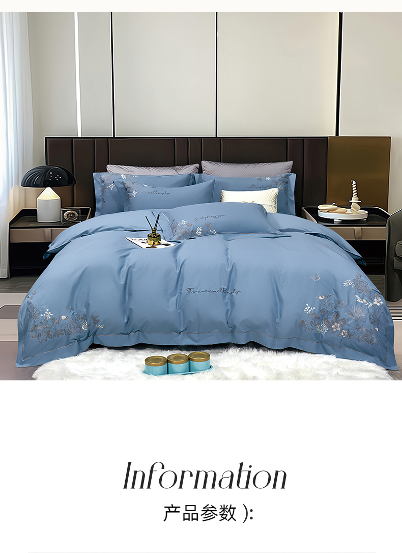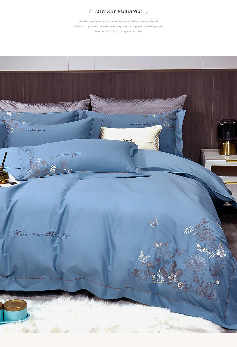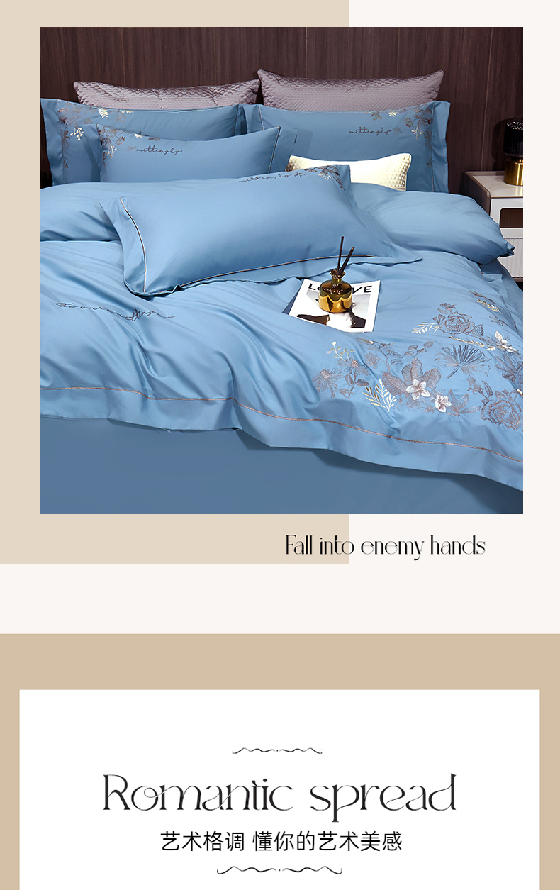 商品名称:云锦家居 2024春夏新品云柔棉刺绣四件套-南希 南希-宾利兰