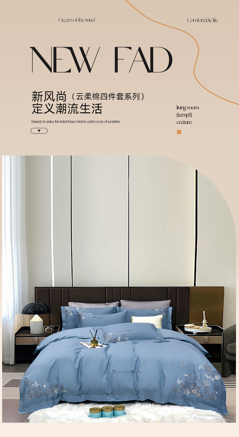 云锦家居 2024春夏新品云柔棉刺绣四件套-南希 南希-宾利兰