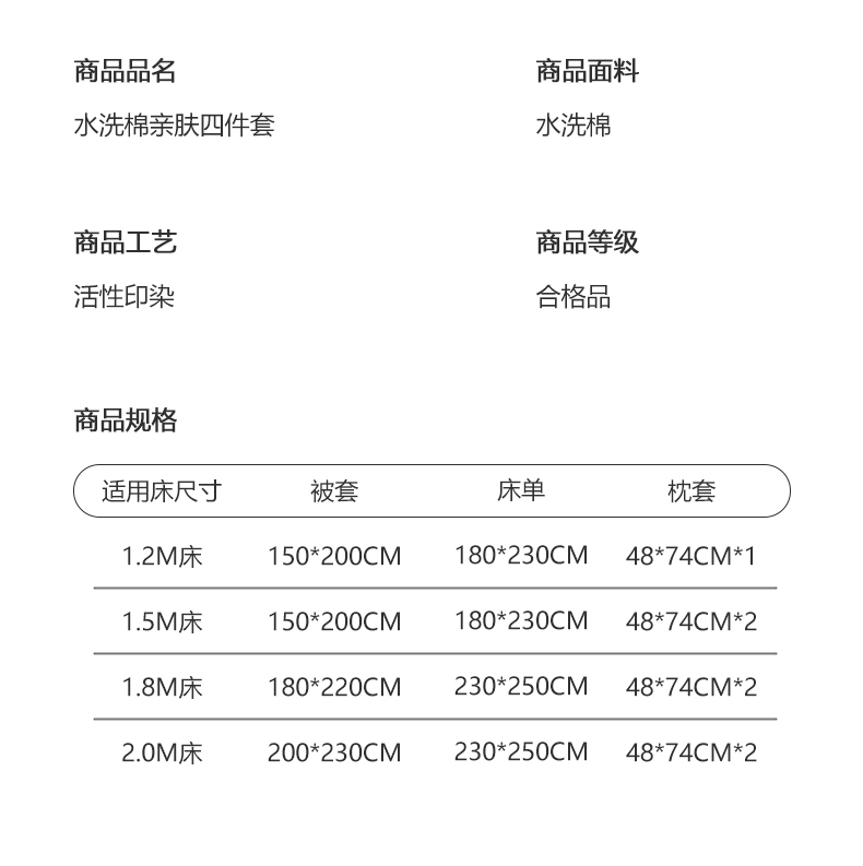 1.5m床笠款四件套(被套150*200) | ¥55.00 |
