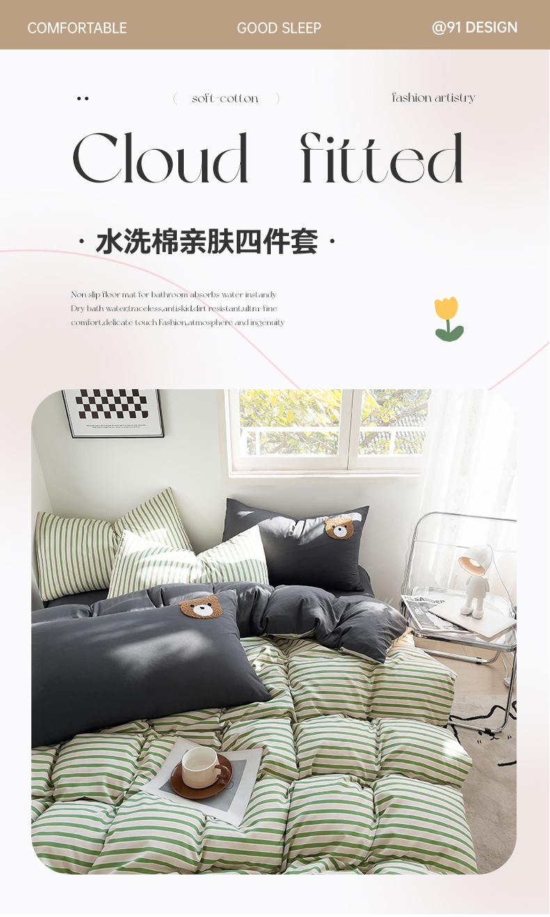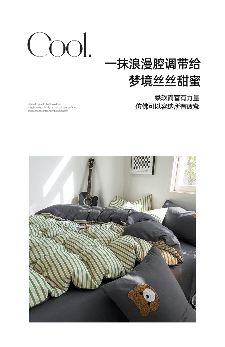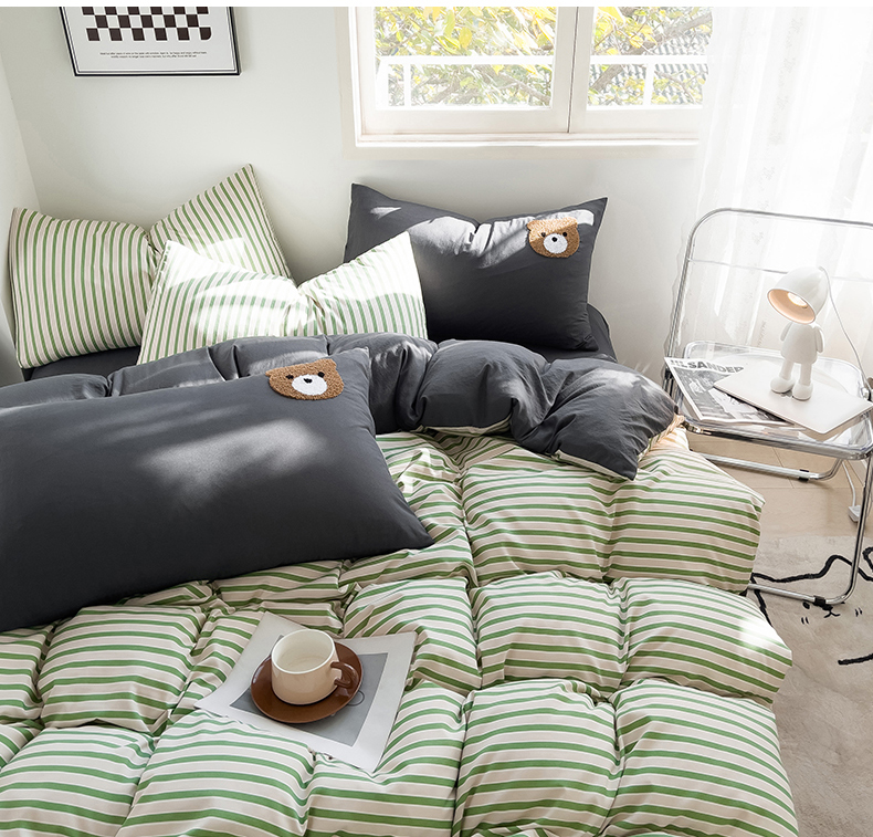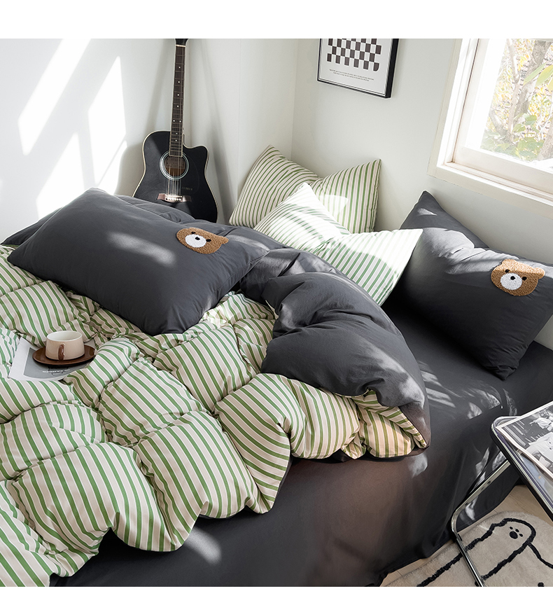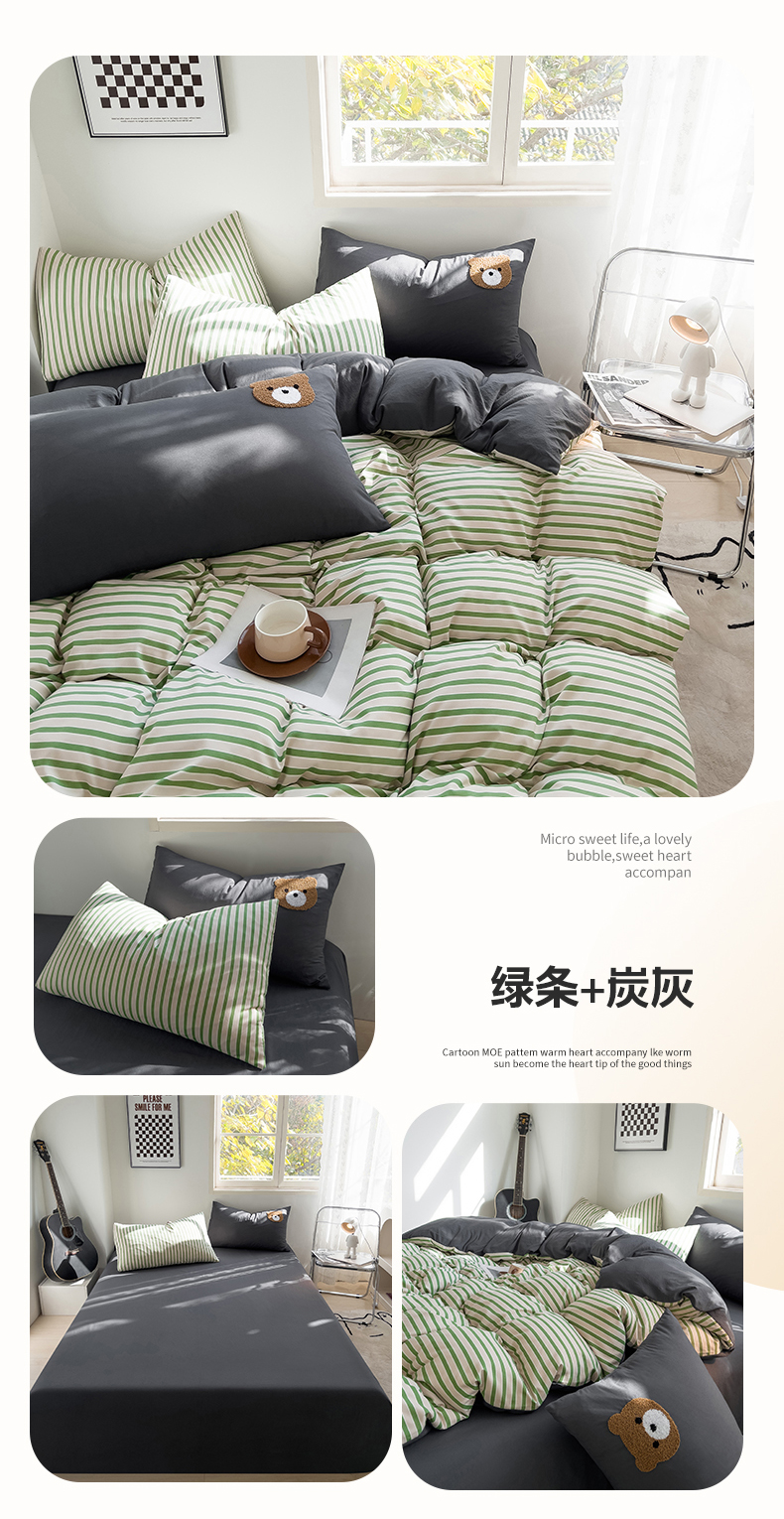 当前位置: 91家纺网 > 商品网购 > 床品套件 > 四件套 > 水洗棉四件套 > 梦嘉居 2024新款 直播热款A类ins风超柔亲肤磨毛水洗棉条纹毛巾绣被套,床笠,三件套四件套 绿条+炭灰
