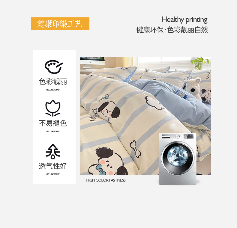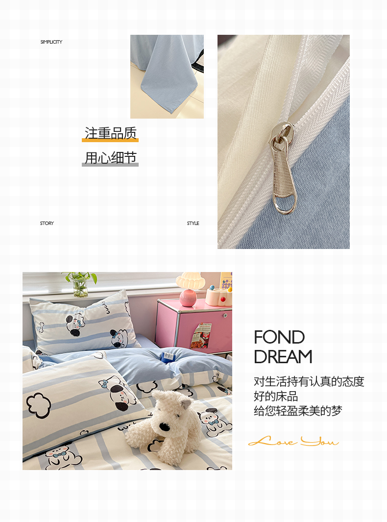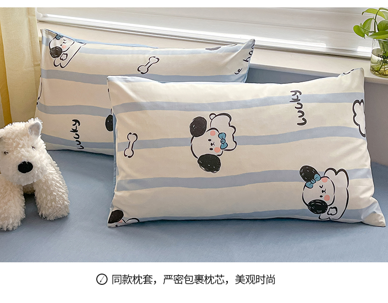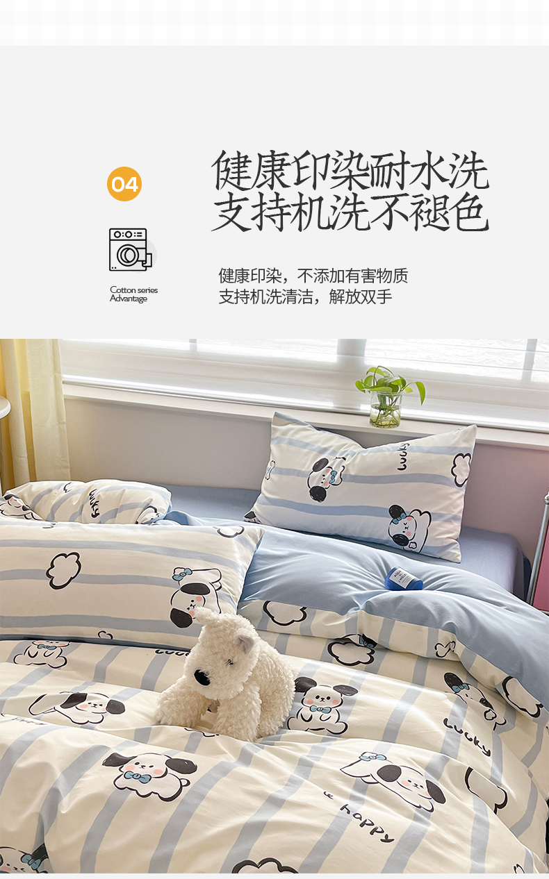 商品名称:桃子 2024新款纯棉13372萌趣少女小清新卡通四件套第二批 棉-蓝色云朵狗