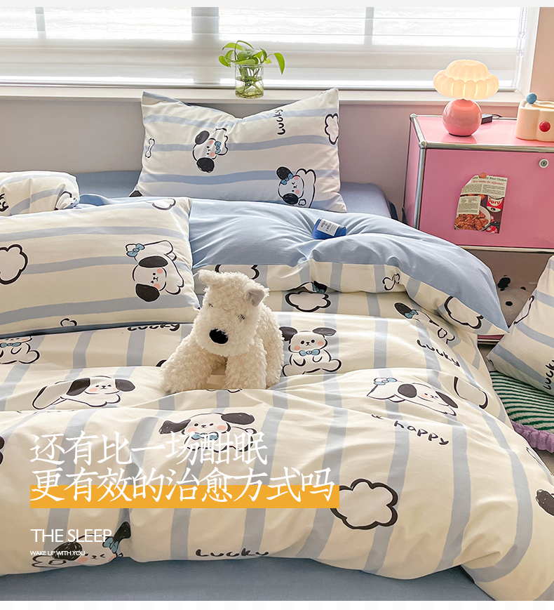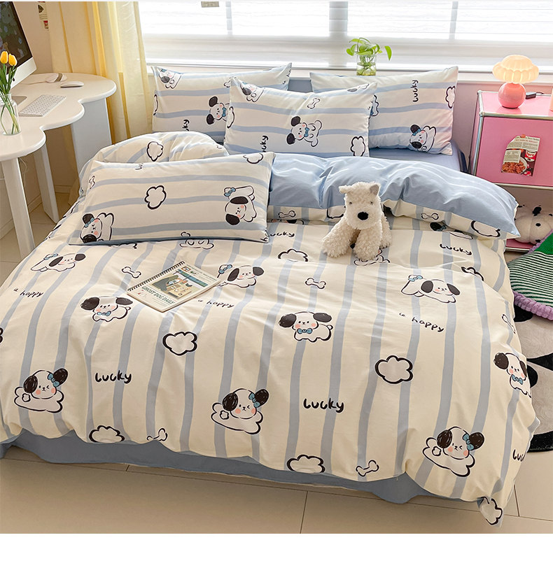 桃子 2024新款纯棉13372萌趣少女小清新卡通四件套第二批 棉-蓝色云朵狗