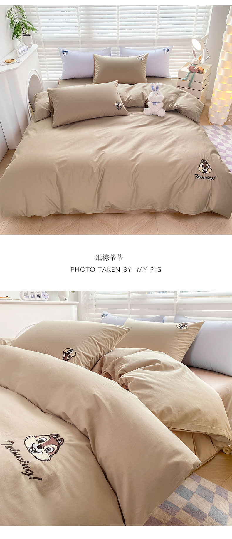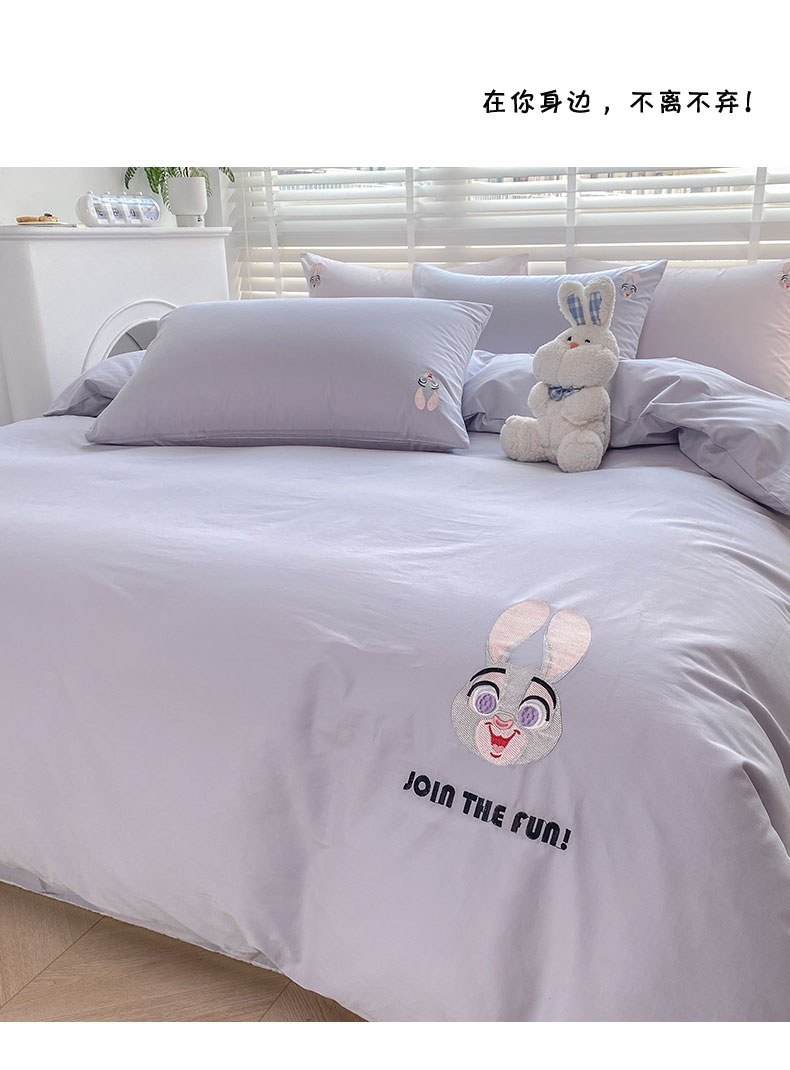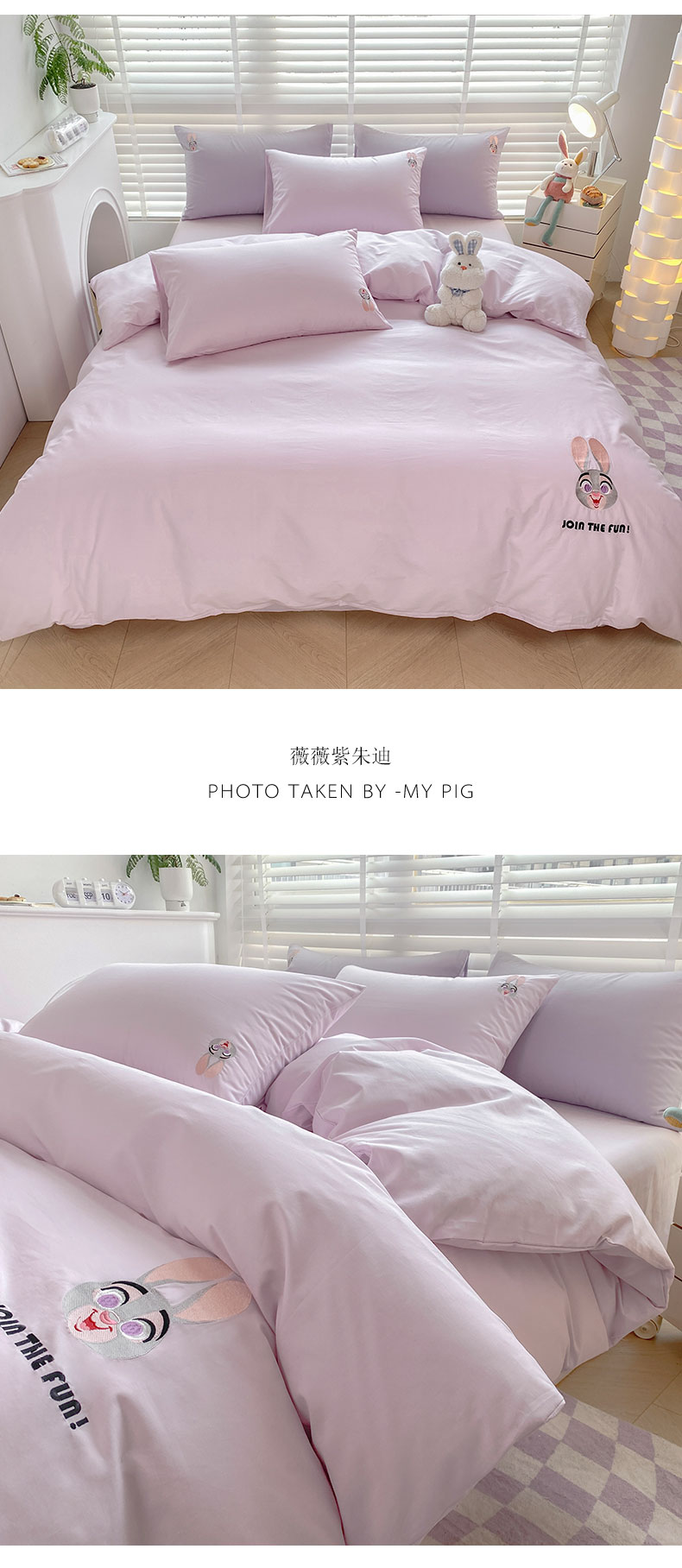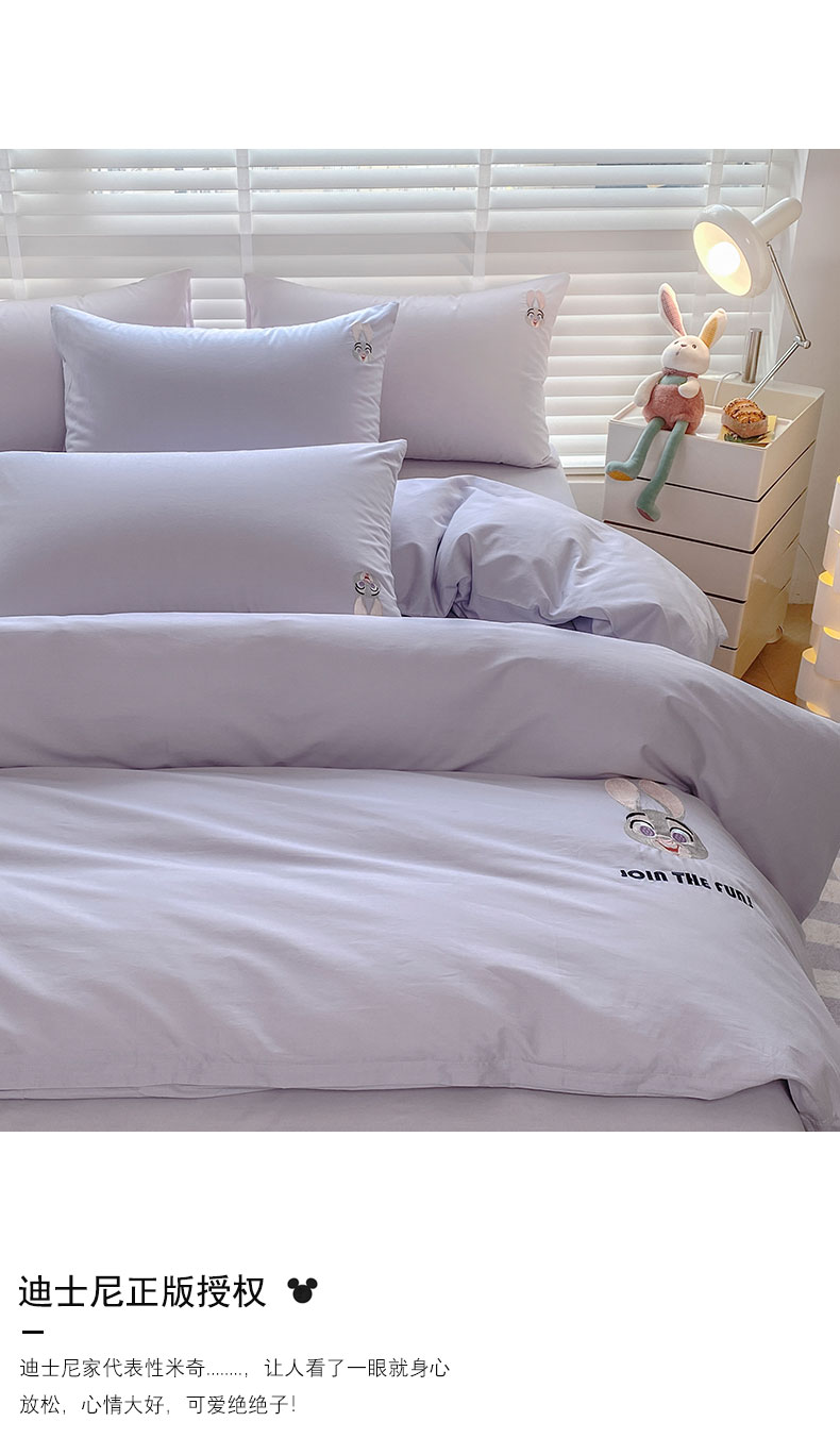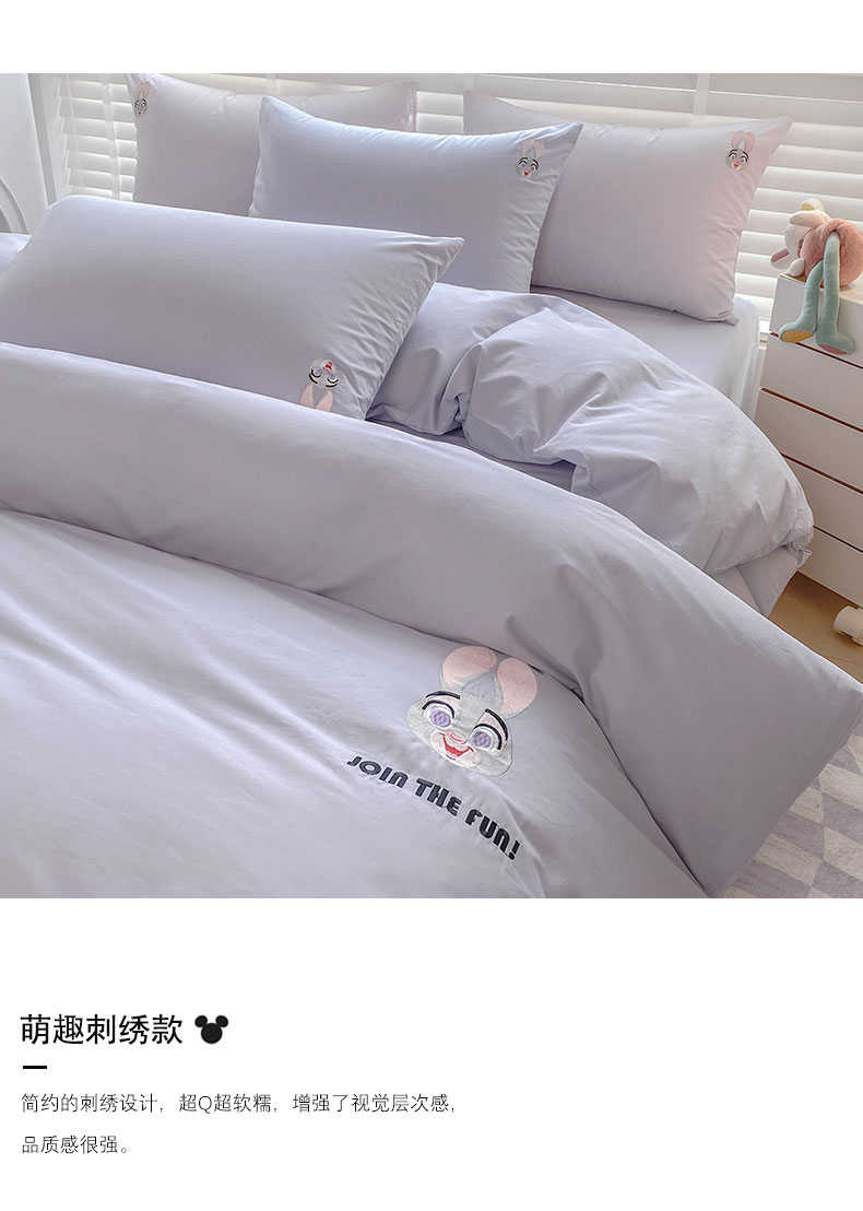 商品名称:猪先生 2024新款迪士尼全棉40支水洗棉绣花四件套 千夏紫朱迪