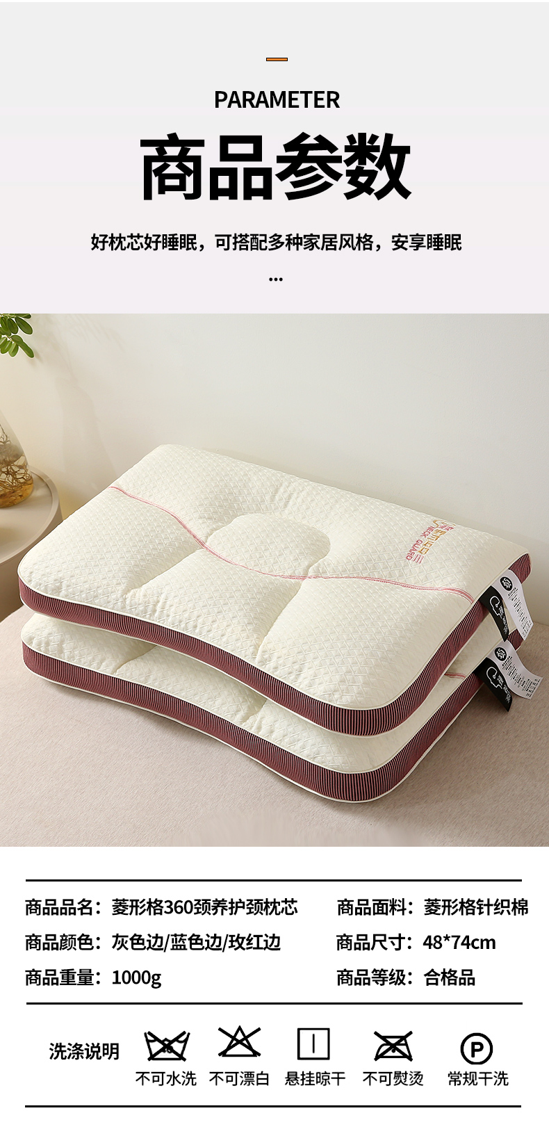 当前位置: 91家纺网 > 商品网购 > 枕头/枕芯/保健枕/颈椎枕 > 普通枕芯 > 梦叶草 2024新款菱形格360颈养护颈枕芯 360颈养护颈枕-蓝色边/只