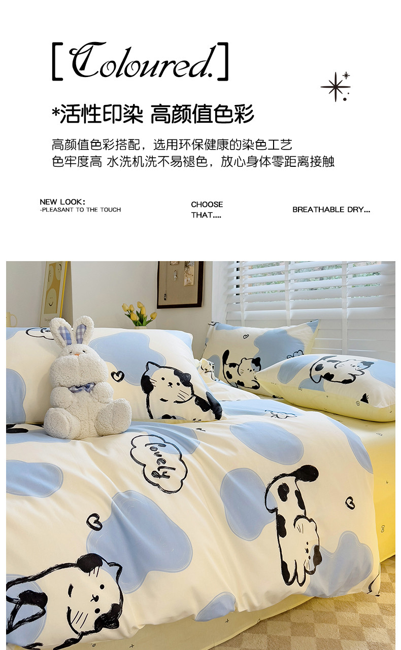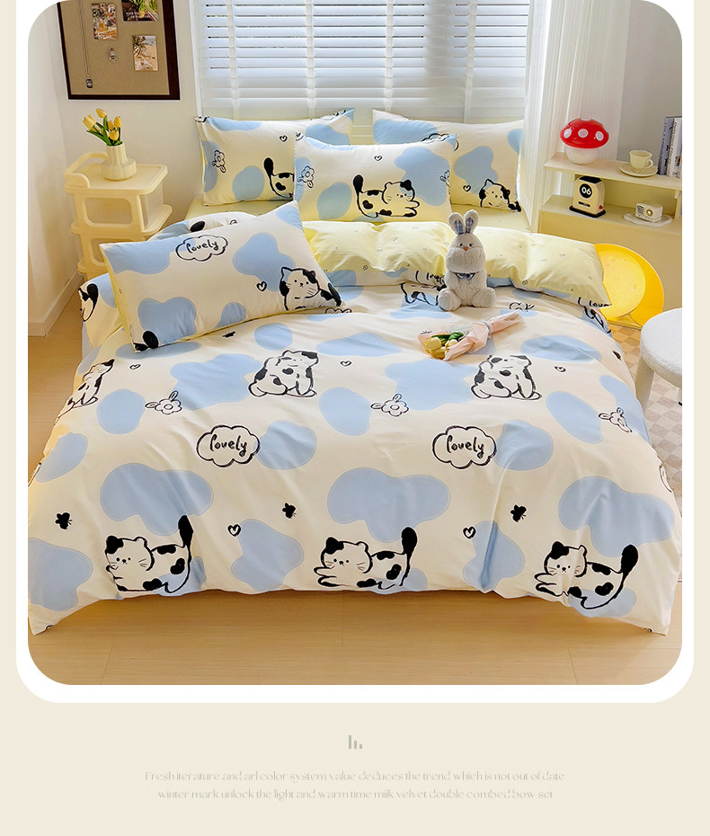 当前位置: 91家纺网 > 商品网购 > 床品套件 > 四件套 > 全棉普通四件套 > 西引力 2024新款全棉卡通印花四件套 奶牛猫