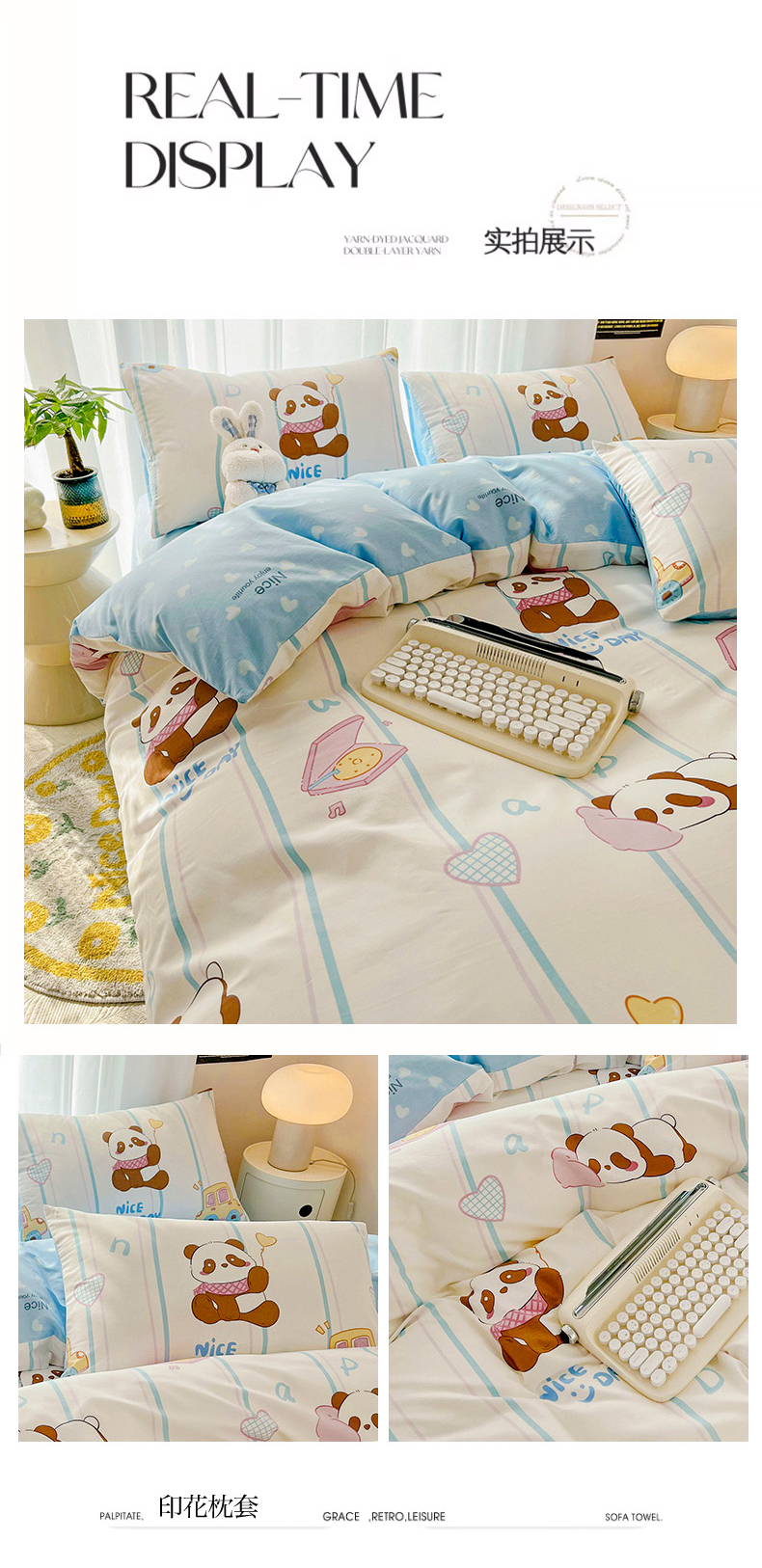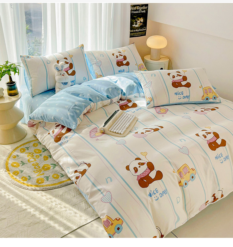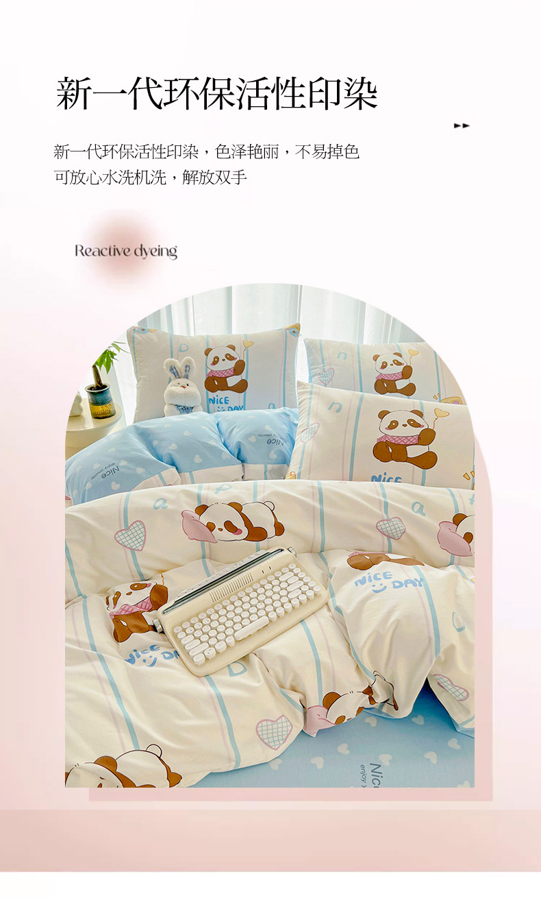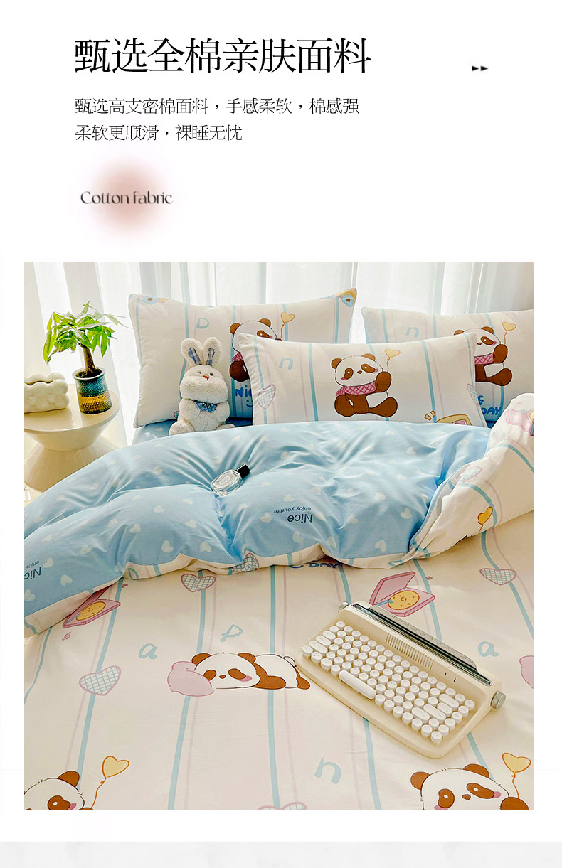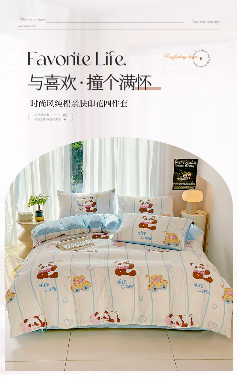 商品名称:倾慕家纺 2024新款时尚风全棉13070亲肤印花系列四件套 蛋仔萌猫