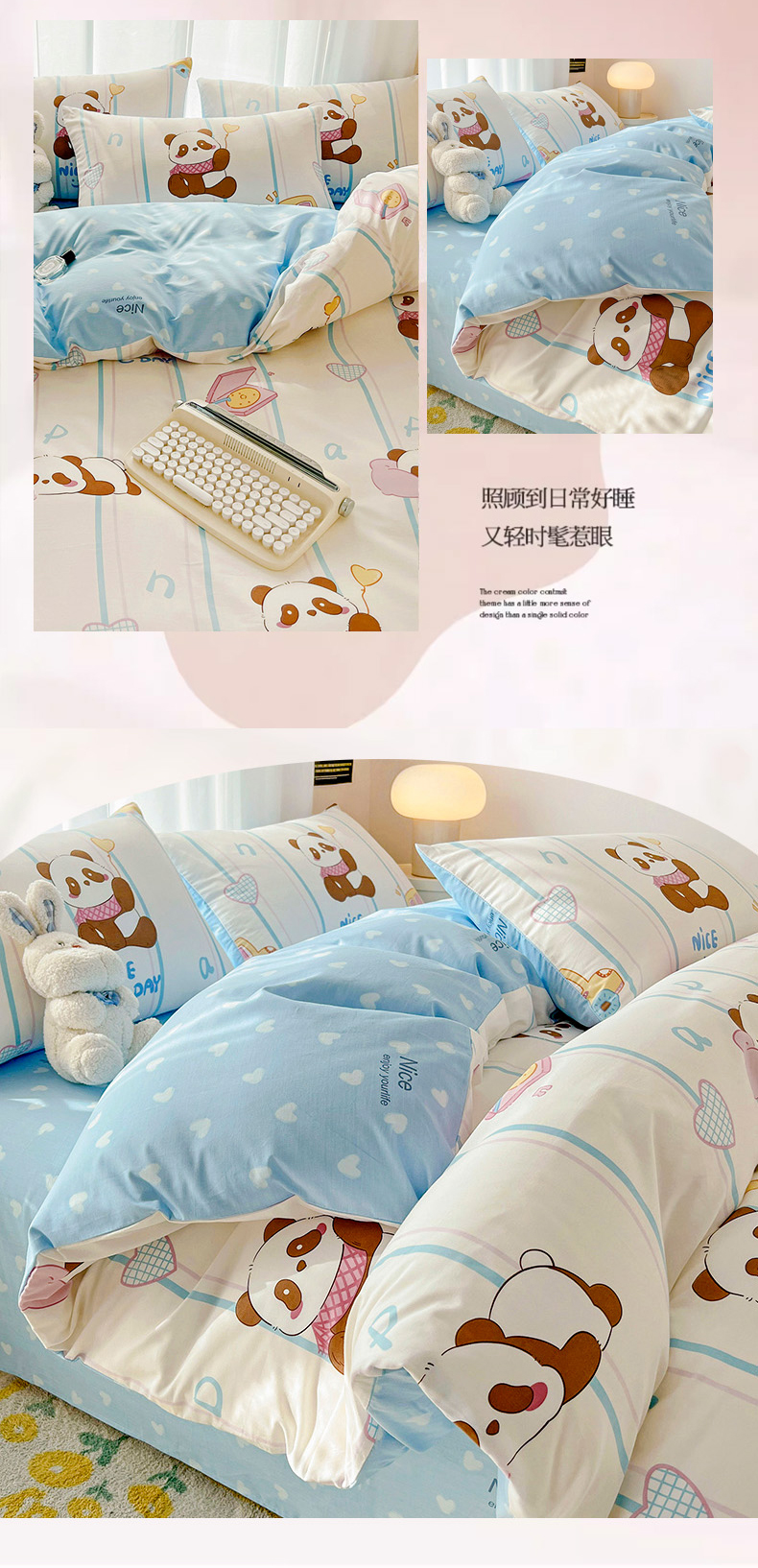 倾慕家纺 2024新款时尚风全棉13070亲肤印花系列四件套 蛋仔萌猫