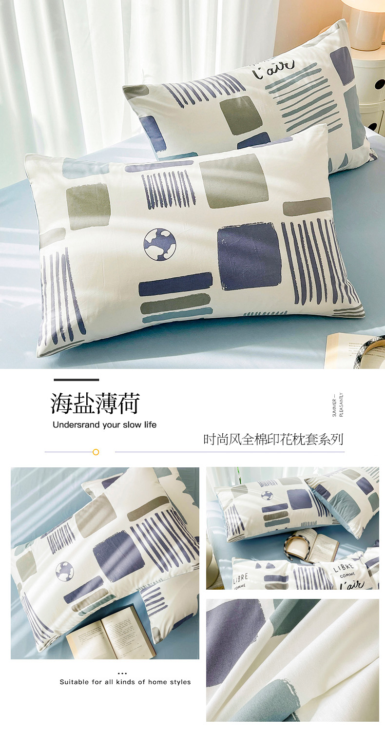 商品名称:倾慕家纺 2024新款时尚风全棉13070亲肤印花系列单枕套 海盐薄荷