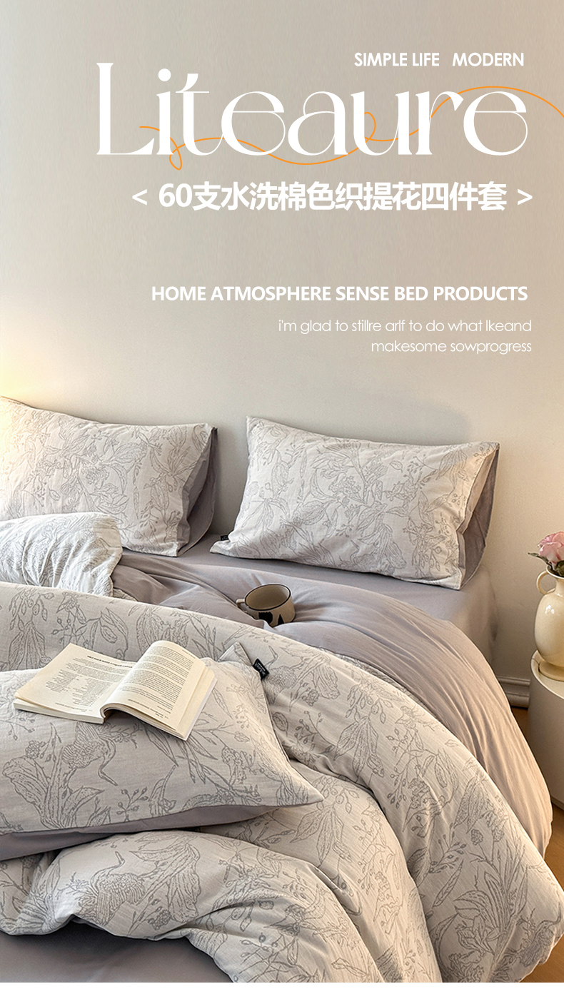 (总)宜代光年 2024新款开学季60支全棉水洗棉色织提花四件套,岸提-蓝灰,岸提-米,繁花-粉,繁花-绿,牡丹-粉,牡丹-咖,温差-灰,温差-米,雪花片-灰,雪片花-暖橘,枝繁叶茂-橘