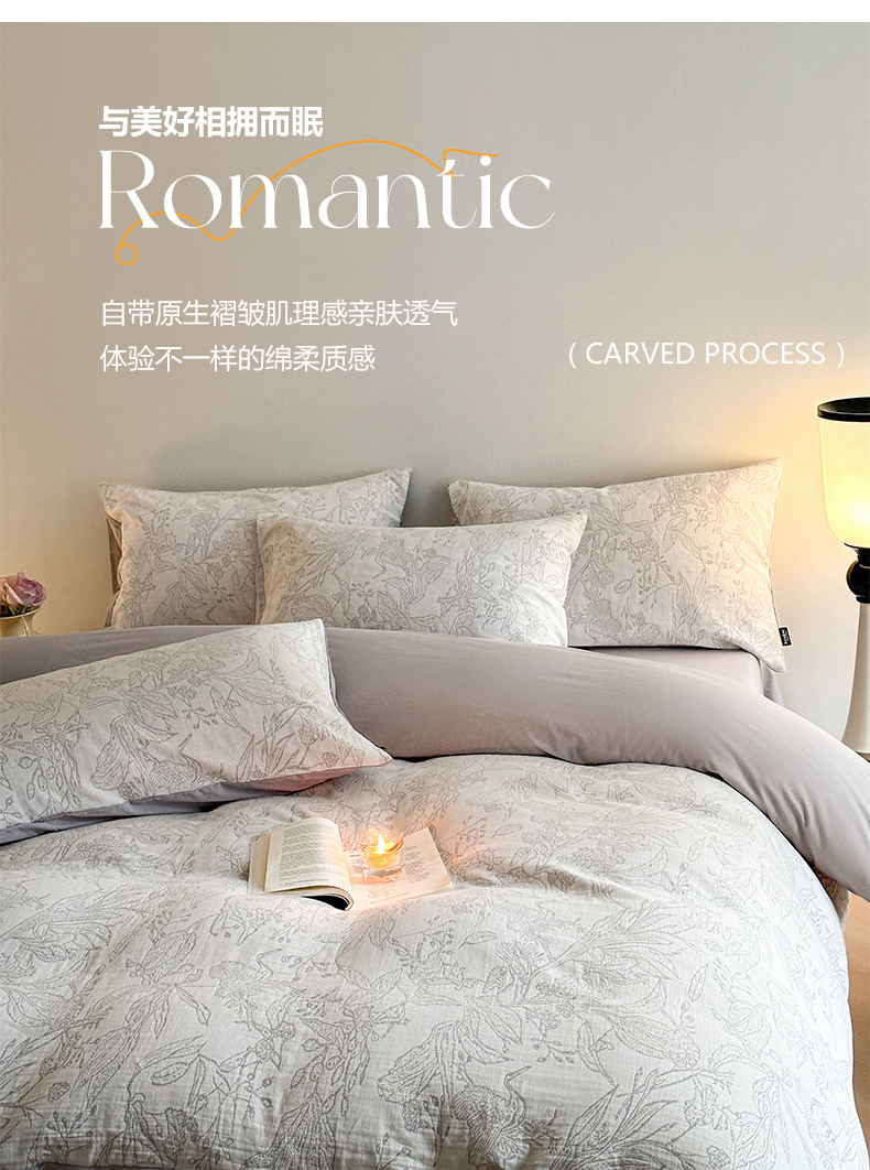 (总)宜代光年 2025新款小米貂法式中古风印花四件套,墨染花簇,蝶语,粉雾渐染,灰韵层叠,墨韵花影,秋华,心上玫瑰,棕影绘花