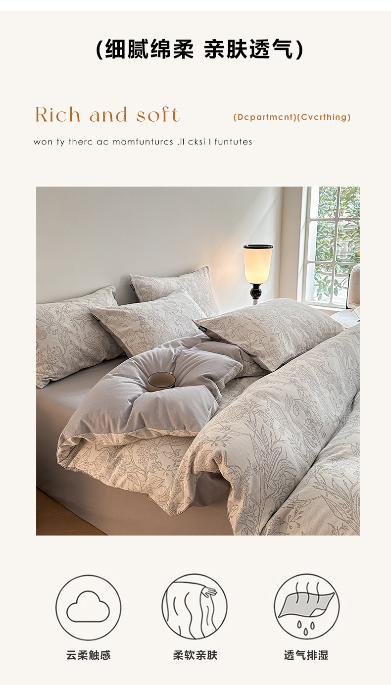 (总)宜代光年 2025新款60s全棉水洗色织提花磨毛四件套,执笔水墨-灰,红木林-深灰,言柒-暖橘,云树-灰,执笔水墨-咖,红木林-森林绿,云树-森林绿
